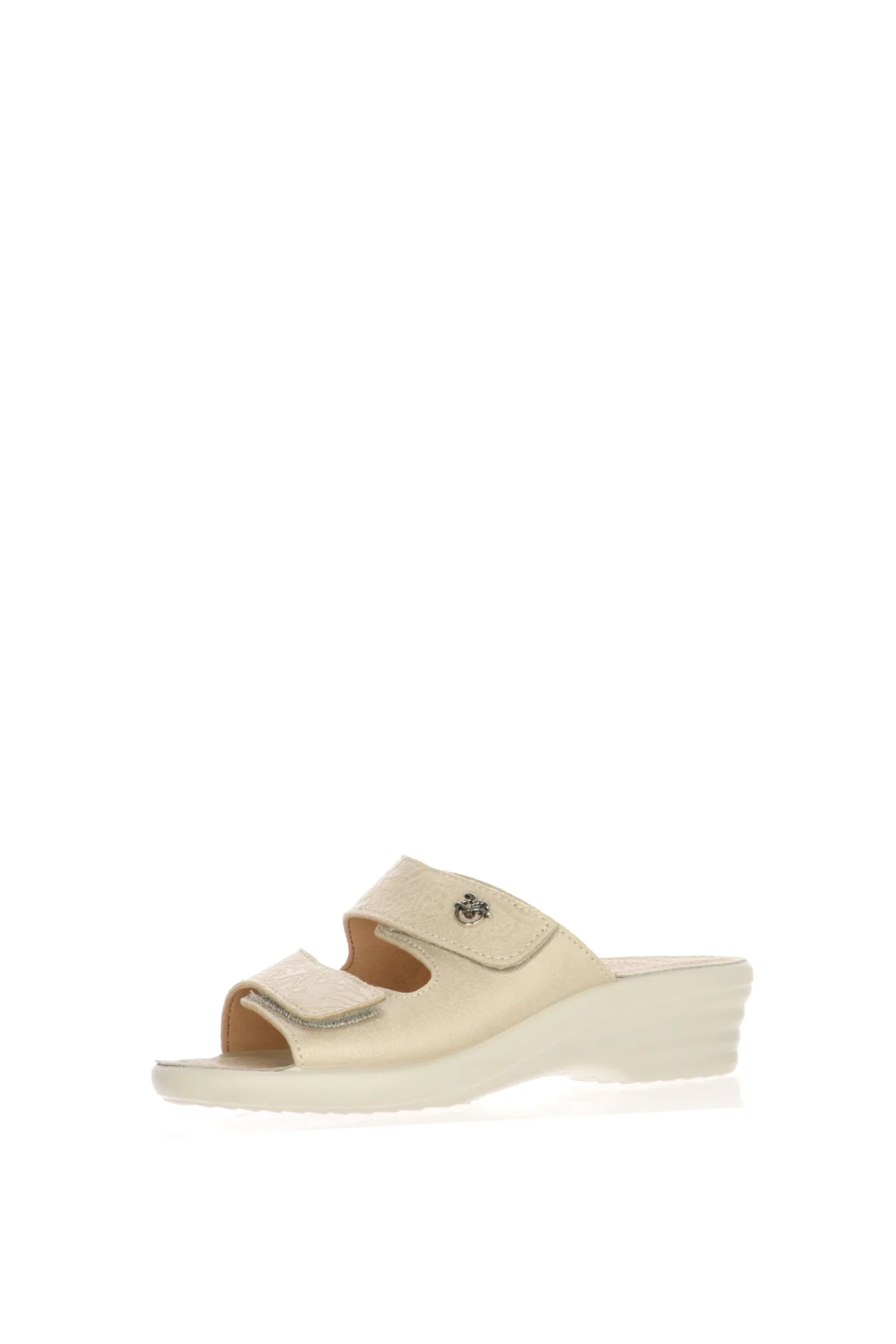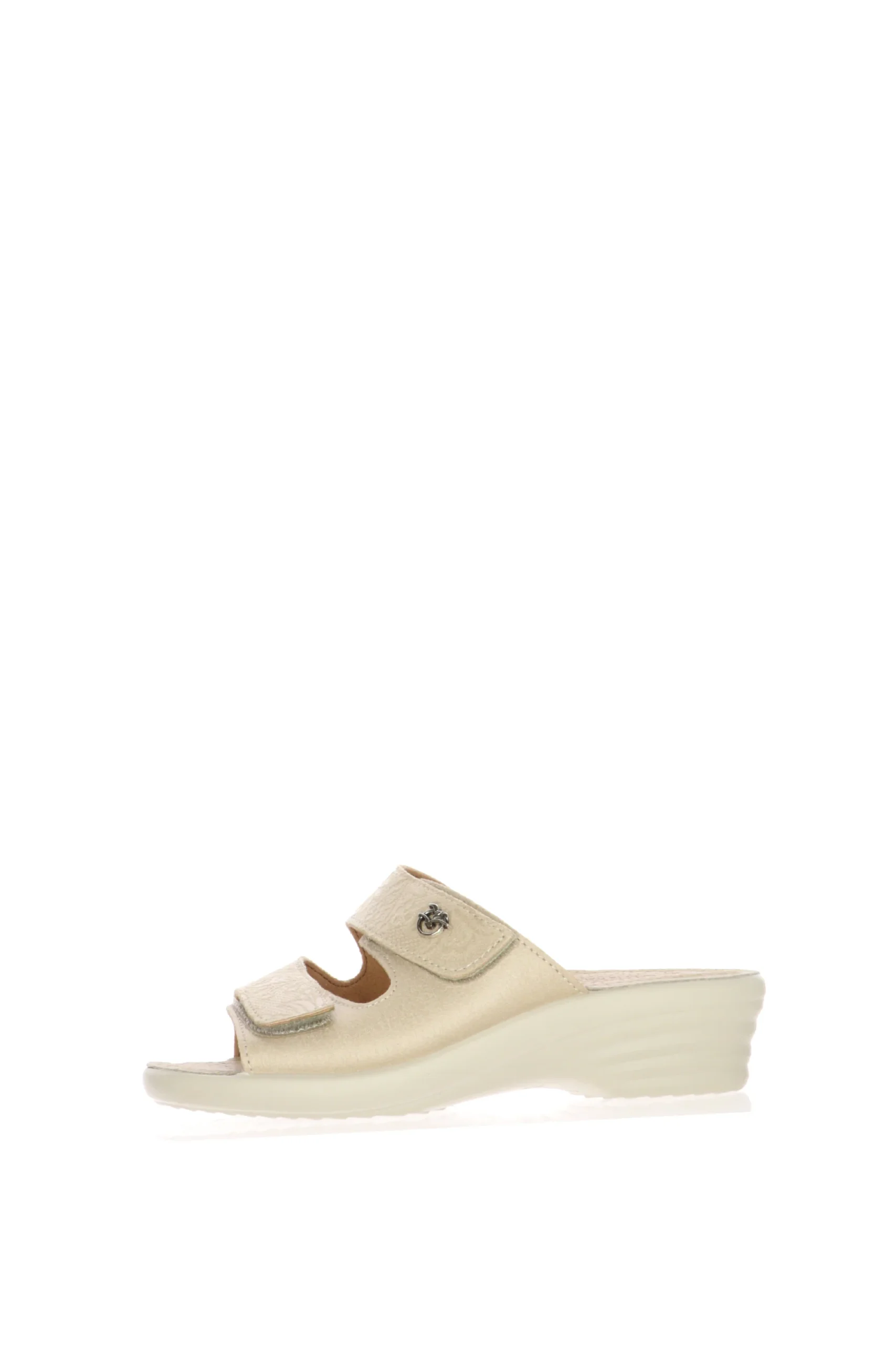 Scopri la pantofola Fly Flot, il connubio perfetto tra stile e benessere. Realizzata in un elegante beige, questa pantofola รจ dotata di una suola ergonomica con tecnologia anti-shock e plantare anatomico per garantire il massimo comfort durante l’intera giornata. I pratici cinturini regolabili con chiusura a strappo assicurano una calzata su misura, mentre il piccolo ornamento metallico aggiunge un tocco raffinato al design.