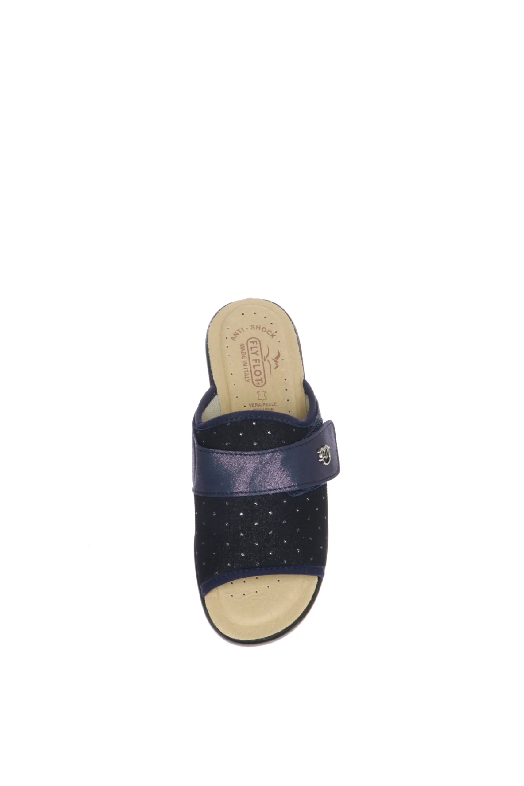 Scopri il comfort assoluto con la pantofola Fly Flot, progettata per offrire leggerezza e supporto in ogni passo. Realizzata in Italia, questa pantofola presenta una fascia larga decorata con piccoli punti bianchi e un elegante logo metallico. La suola antishock garantisce un’ammortizzazione ottimale, rendendola ideale per l’uso quotidiano, sia in casa che all’aperto.