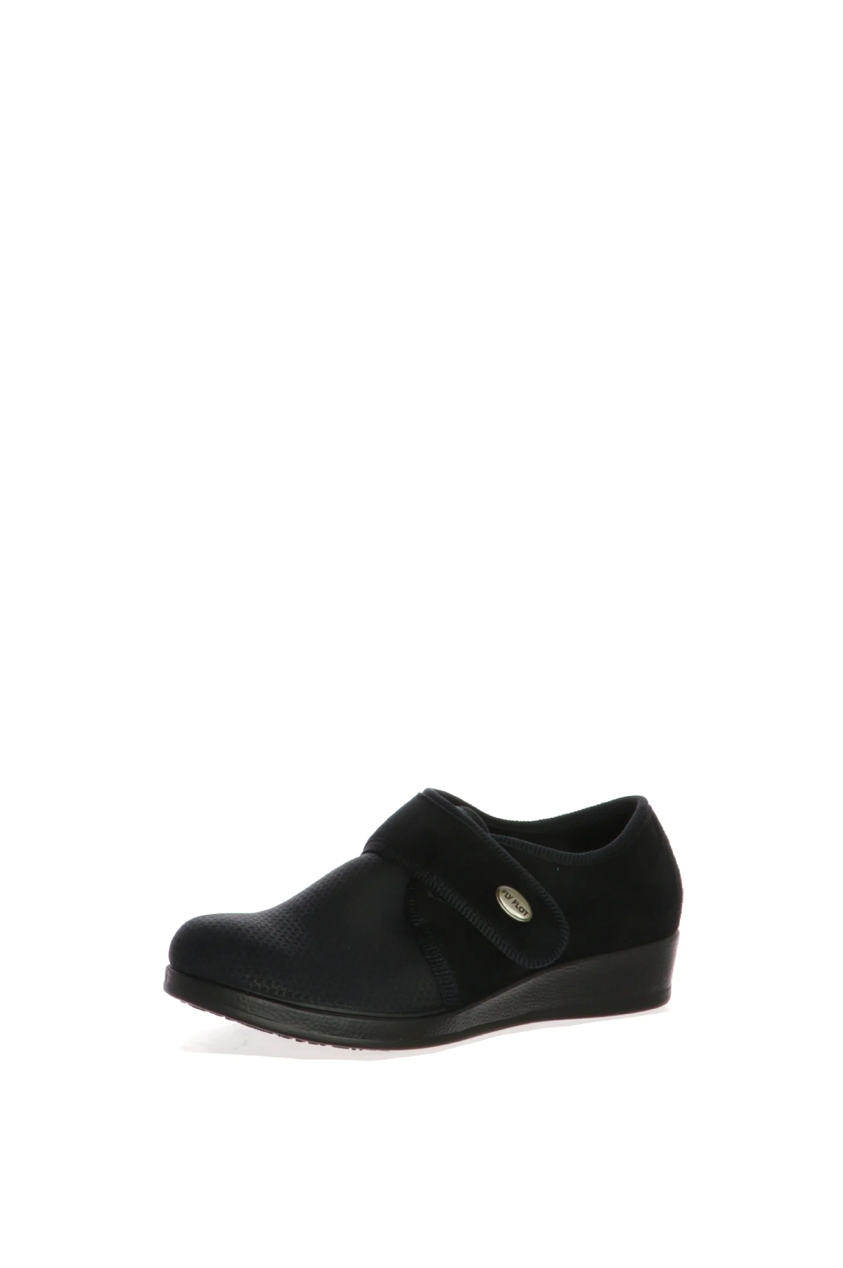 Pantofola chiusa utilizzabile anche come scarpa, con plantare estraibile.In morbido panno e tessuto elasticizzato, ideale per chi ha problemi di alluce valgo e/o dita accavallate. Consigliata per riabilitazione. Fly Flot, benessere italiano