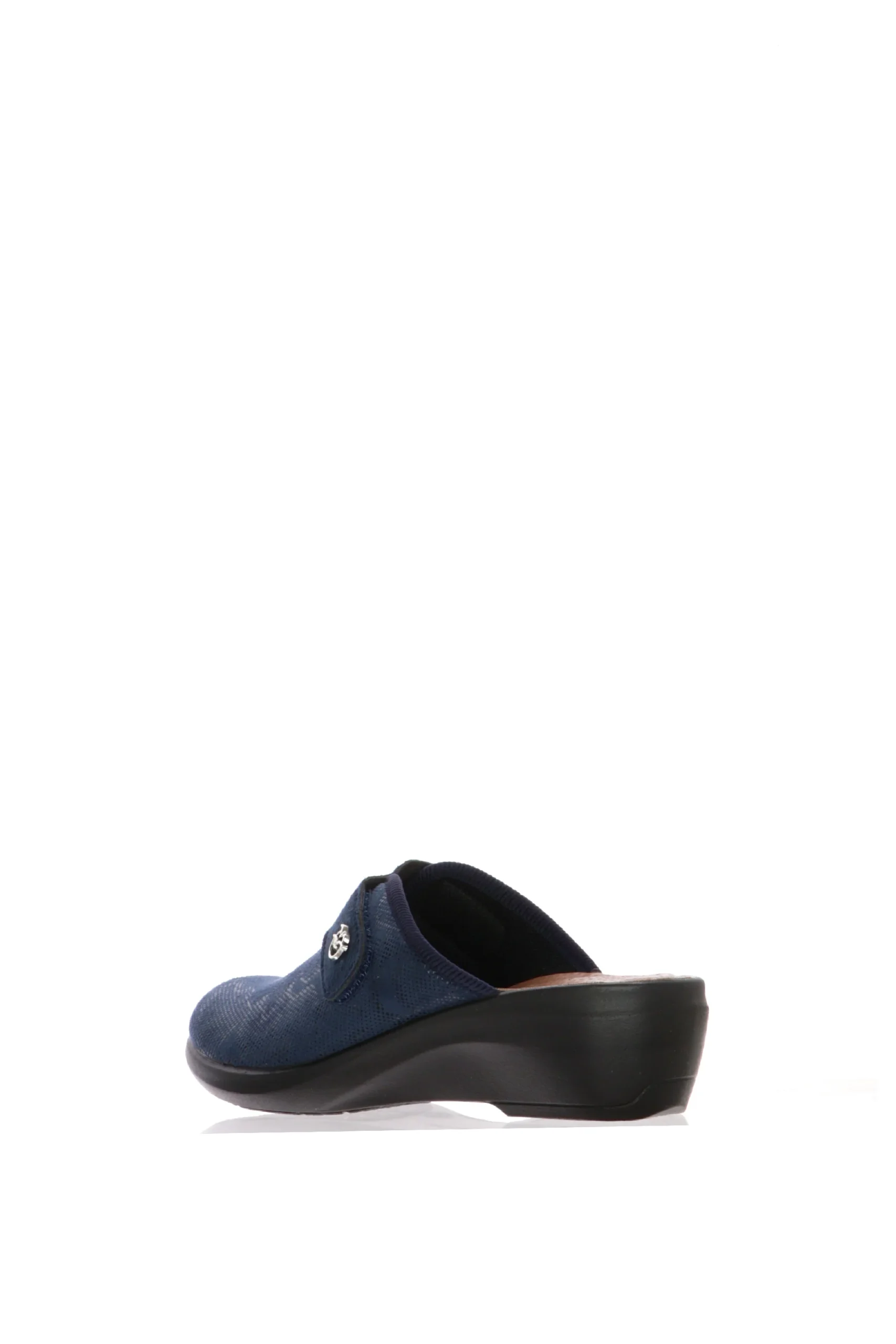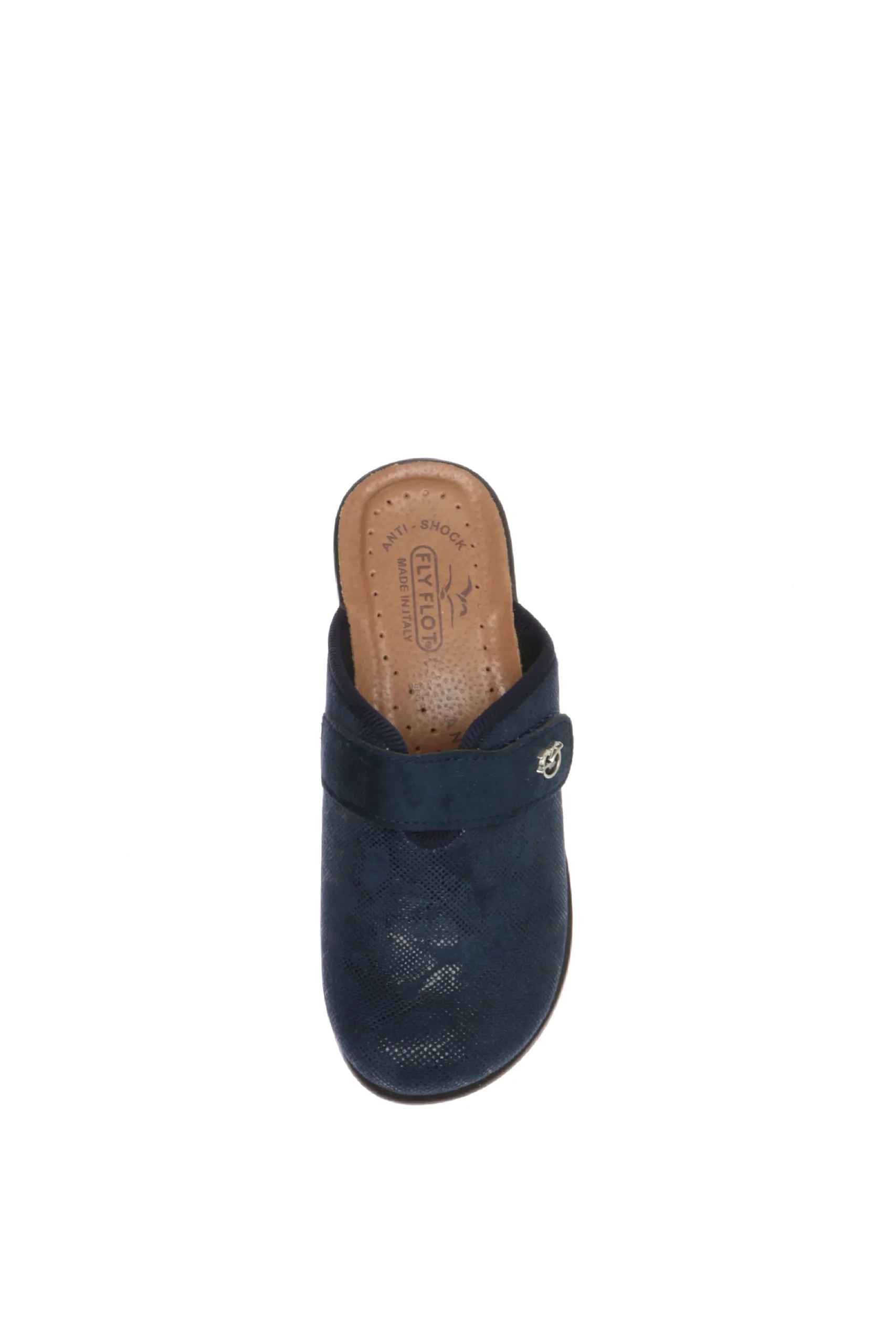 Questa pantofola Fly Flot รจ l’alleata perfetta per il tuo relax quotidiano, unendo un design versatile a un comfort ineguagliabile. Ideale per l’uso in casa o per brevi commissioni, ti offre un benessere che dura tutto il giorno.La tomaia in tessuto tecnico blu รจ arricchita da una discreta texture luminosa, che aggiunge un tocco di eleganza senza tempo. La chiusura a strappo regolabile assicura una calzata comoda e personalizzata, adattandosi alla forma del tuo piede e facilitando la calzata.Il vero punto di forza di questa pantofola รจ il plantare estraibile, una caratteristica fondamentale per chi ha esigenze specifiche. Puoi sostituire il plantare originale con una soletta ortopedica personalizzata, garantendo cosรฌ un supporto su misura per il tuo piede. Il plantare originale, comunque, รจ giร progettato con i celebri 4 Punti del Benessere Fly Flot:Antishock: Assorbe l’impatto del passo, proteggendo schiena e articolazioni.Anatomico: Segue la forma naturale del piede per una calzata perfetta.Automodellante: Si adatta alla pianta del tuo piede nel tempo per un comfort superiore.Antiscivolo: La suola in PU offre stabilitร e sicurezza su ogni superficie.Scegli la qualitร e l’esperienza del Made in Italy di Fly Flot, un marchio leader nel settore del benessere del piede. Con questa pantofola, potrai dire addio alla stanchezza e goderti ogni passo con la massima comoditร .
