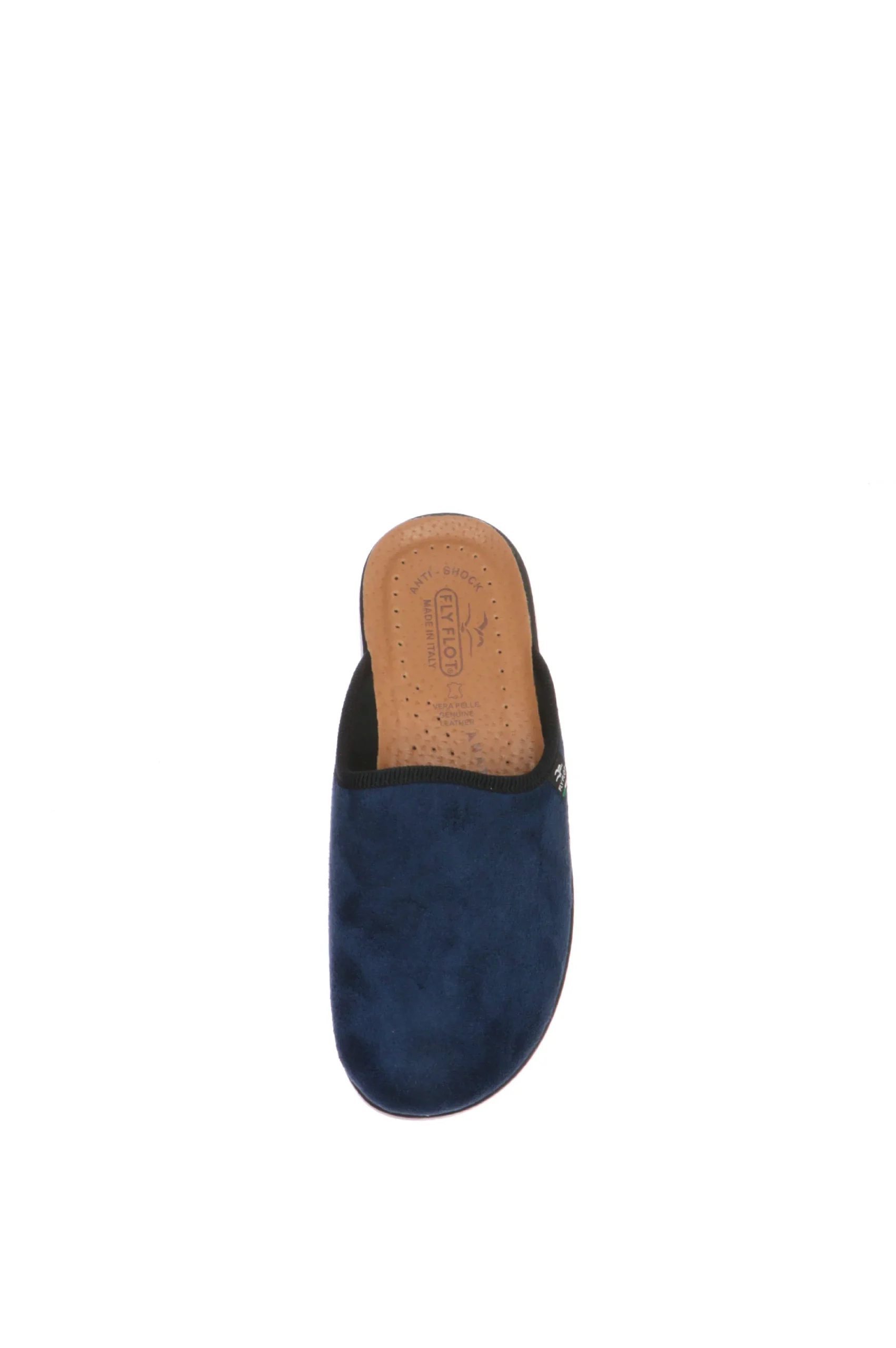 Pantofola invernale uomo in morbido panno con sottopiede in vera pelle. Morbida, anatomica, calzata normale. Fly Flot, benessere italiano! Dettagli prodotto: – Tomaia in panno – Sottopiede in vera pelle – Fondo in gomma antiscivolo – Calzata normale – Made in Italy
