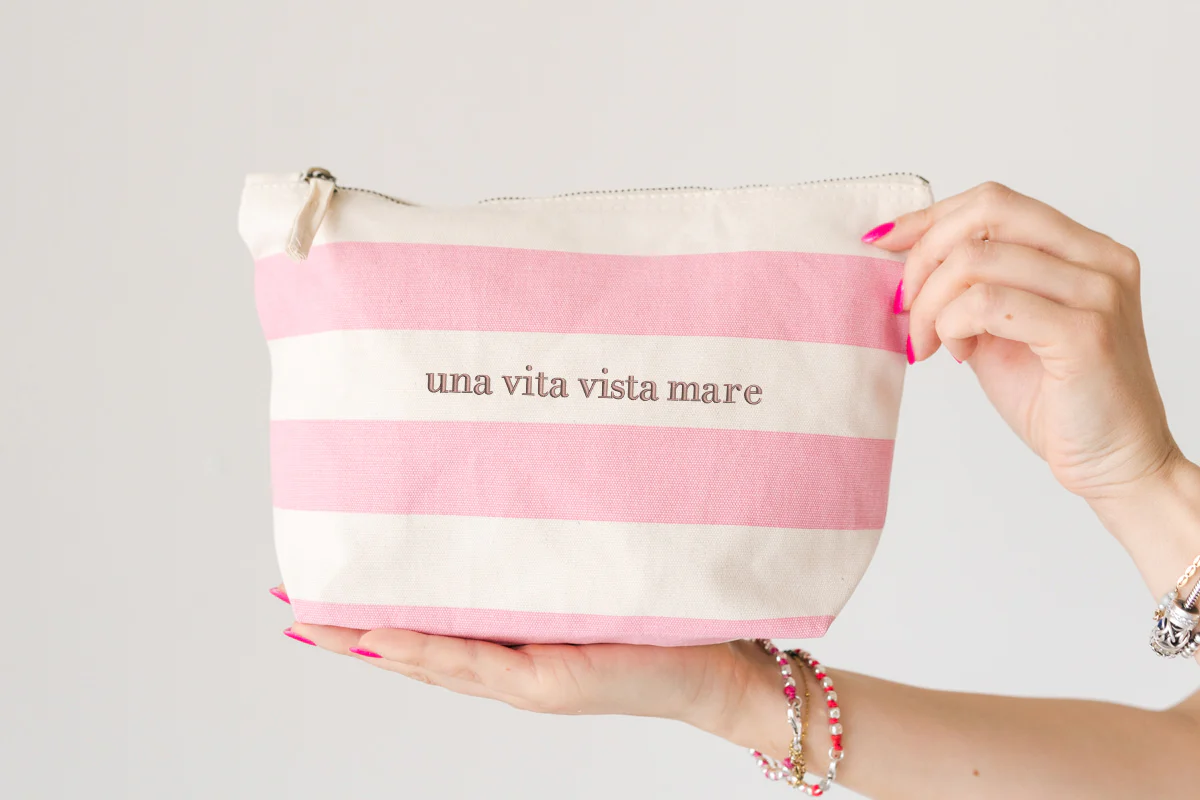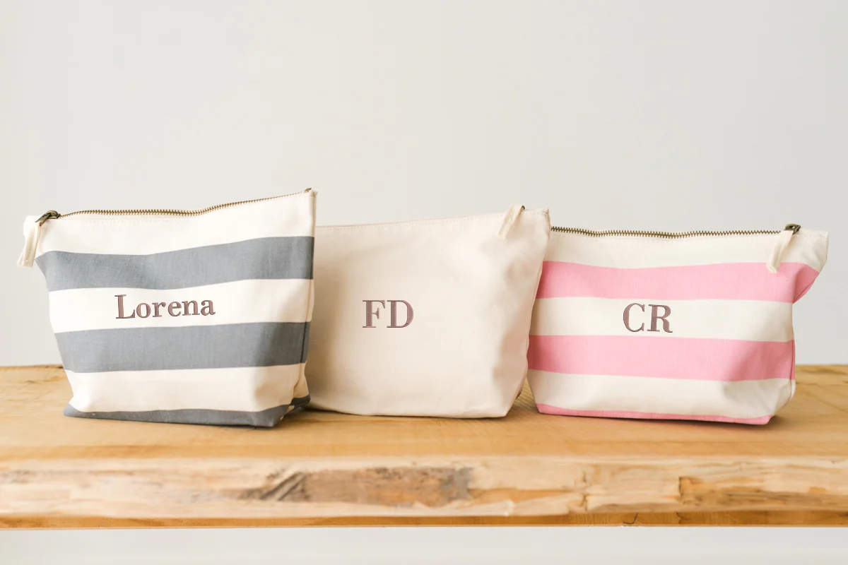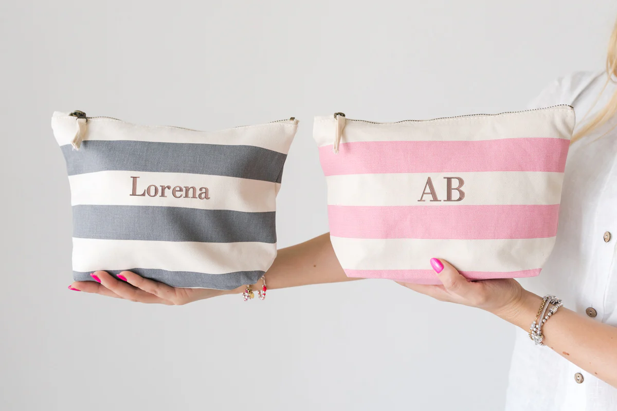 Pochette 100% cotone Canvas con motivo a strisce, multiuso, chiusura con zip. Dimensioni: 19x18x9 cm