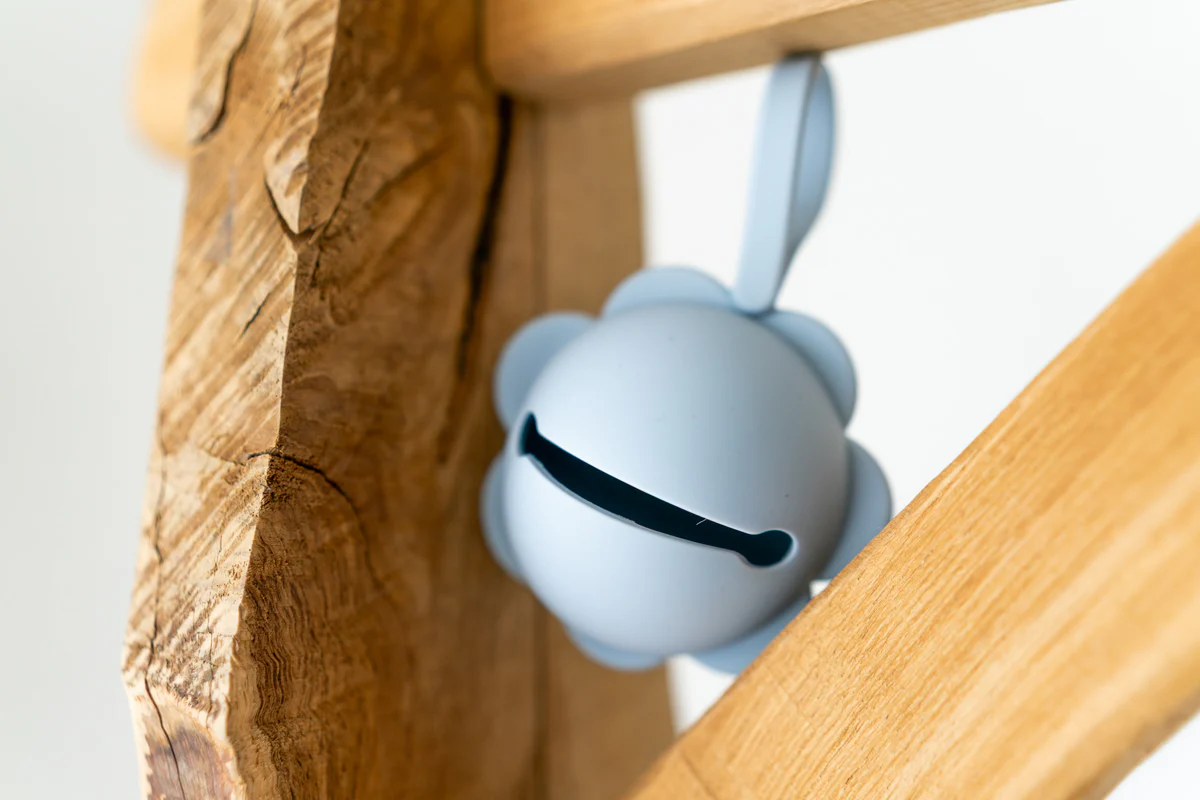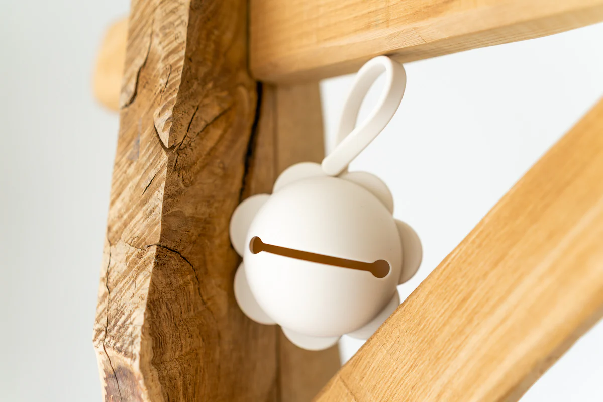 La fascetta con bottone integrato consente di appenderlo alla borsa o al passeggino.