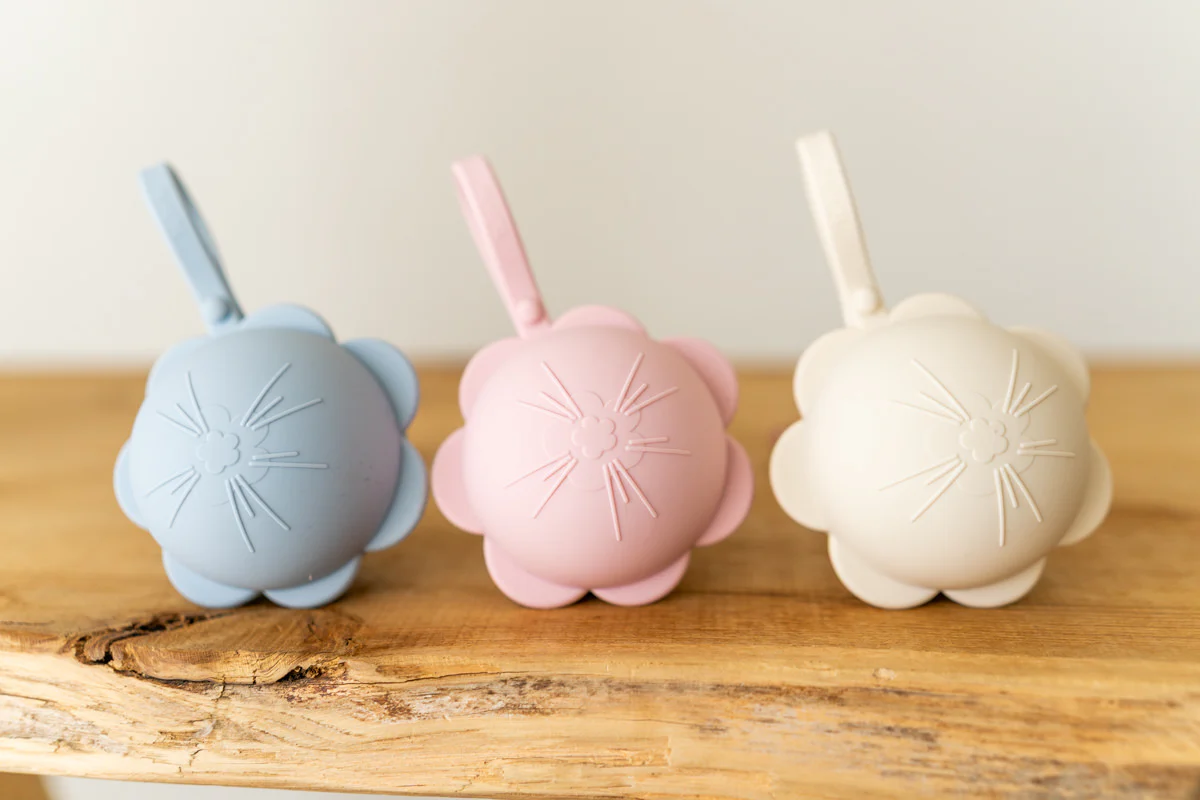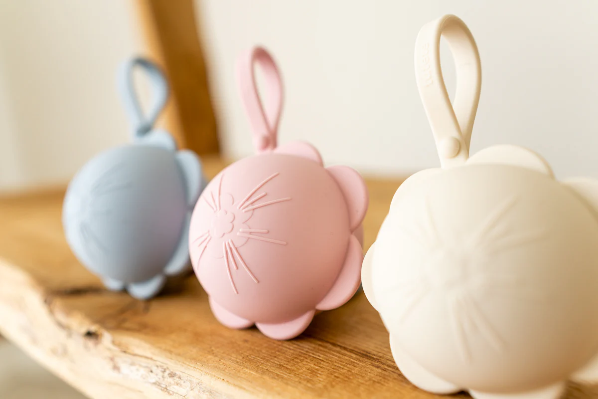 Grazioso e pratico proteggi succhietti in silicone, dove puoi riporre 3-4 ciucci puliti e pronti per l’uso.