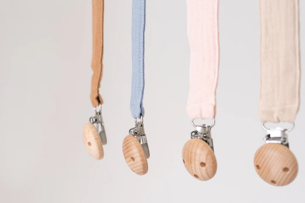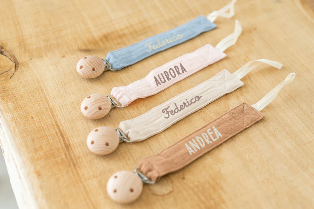 Cinturino per ciuccio per bambini, catena ciuccio con nome personalizzato in cotone biologico al 100%.
