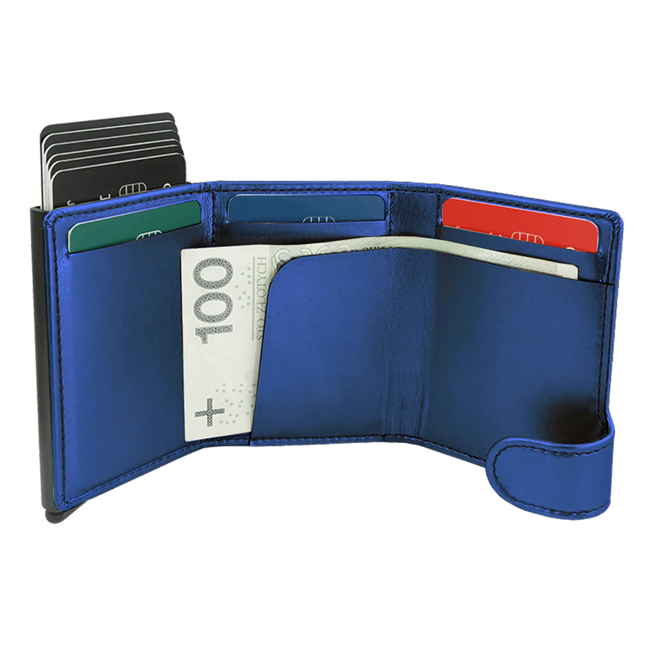Dimensioni: 7,5 x 9,5 x 2,5 cm Colore: Blu Royal Peso: 0.072 kg Materiali: Alluminio, Ecopelle Tasca per banconote Contiene fino 9 carte Modello registrato (R) Protezione RFID (Cos’è la protezione RFID? La protezione RFID è un sistema che protegge i microchip presenti nei bancomat, nelle carte di credito, nelle carte d’identità e passaporti elettronici […]