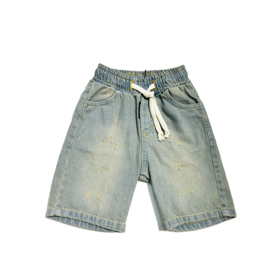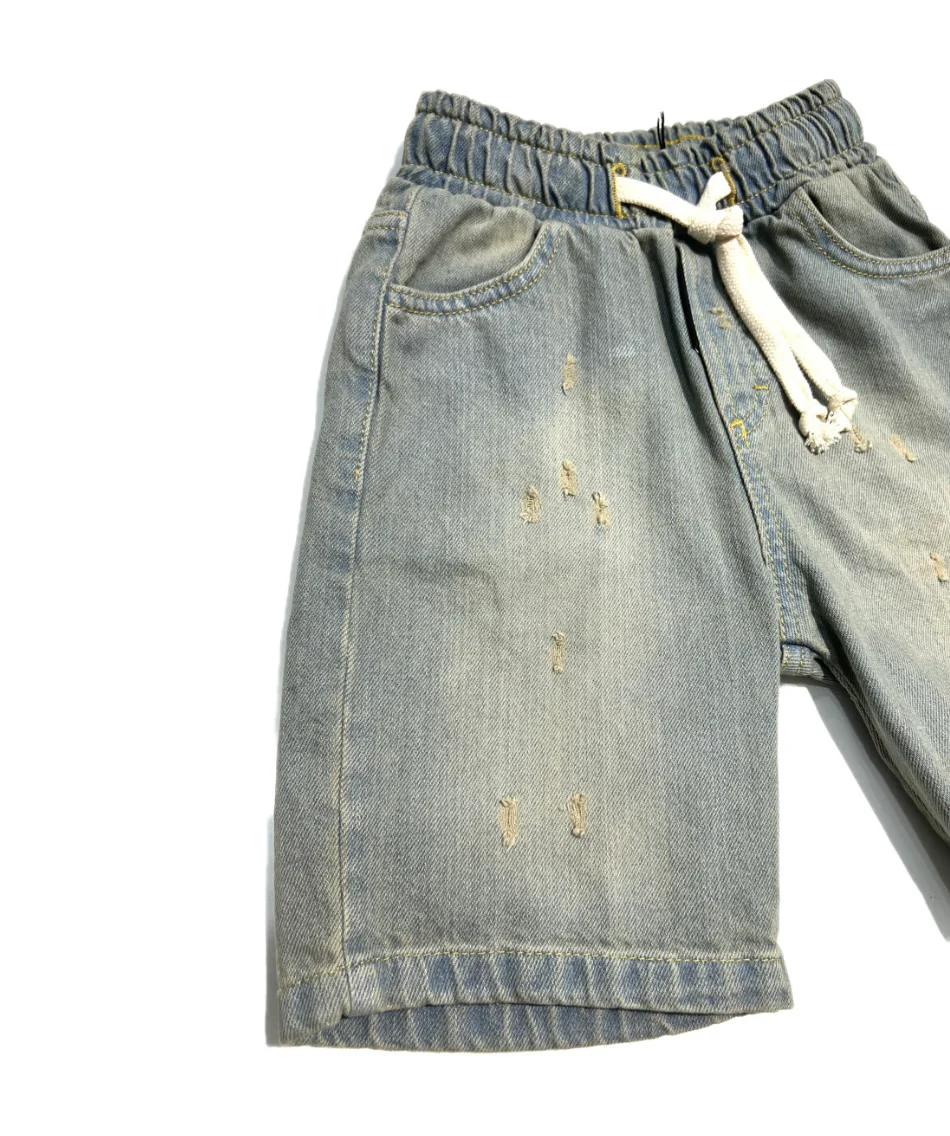 Rebel Bermuda Ragazzo Jeans Sabbiato con Elastico in vita