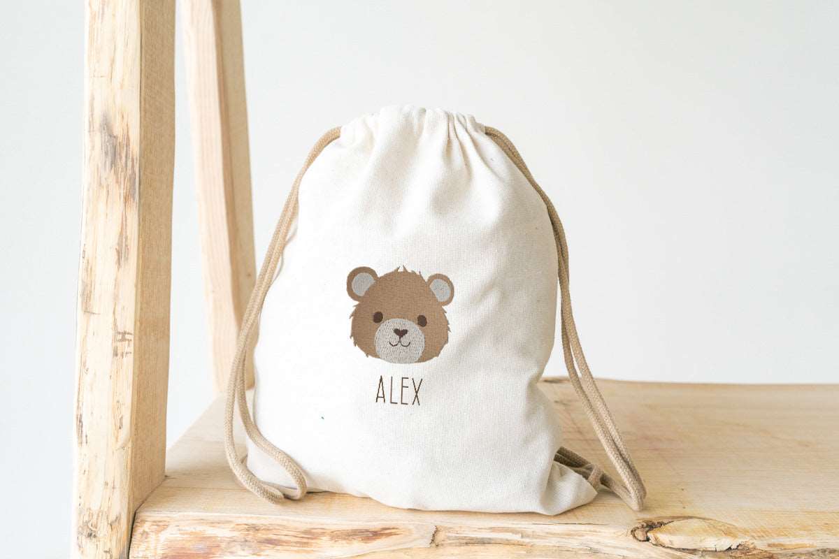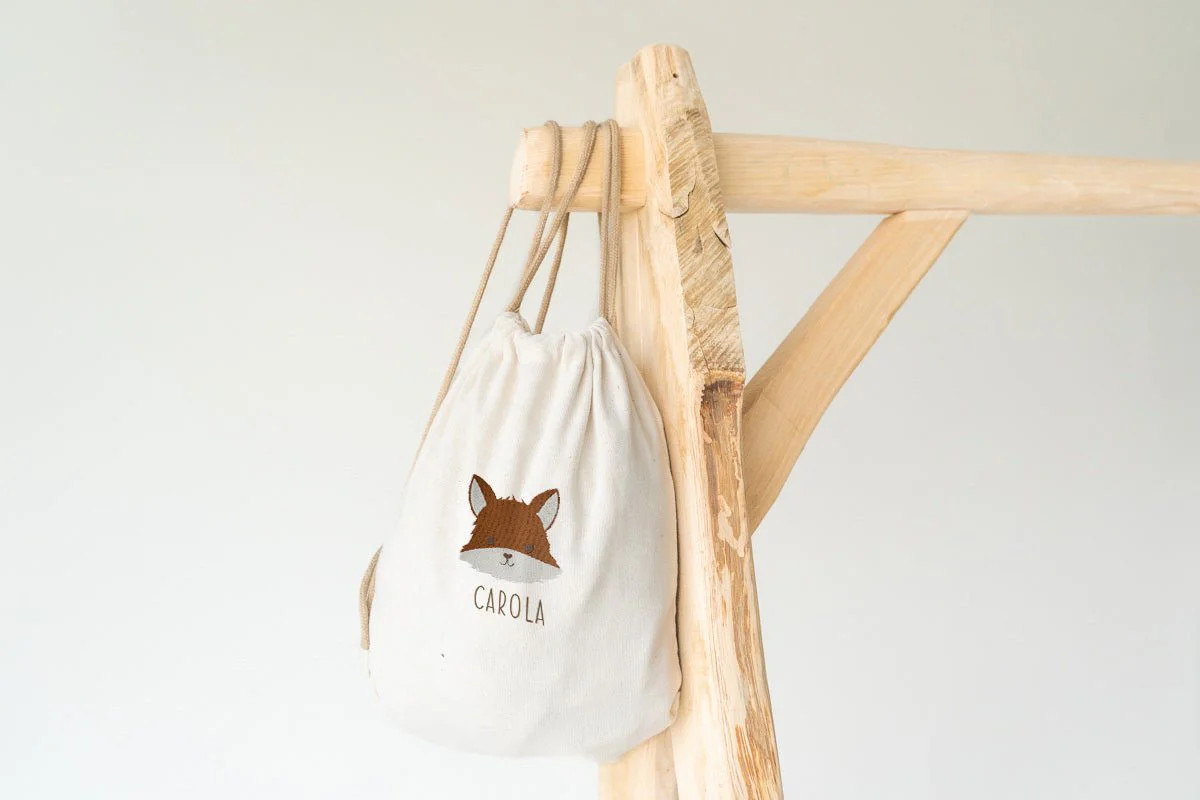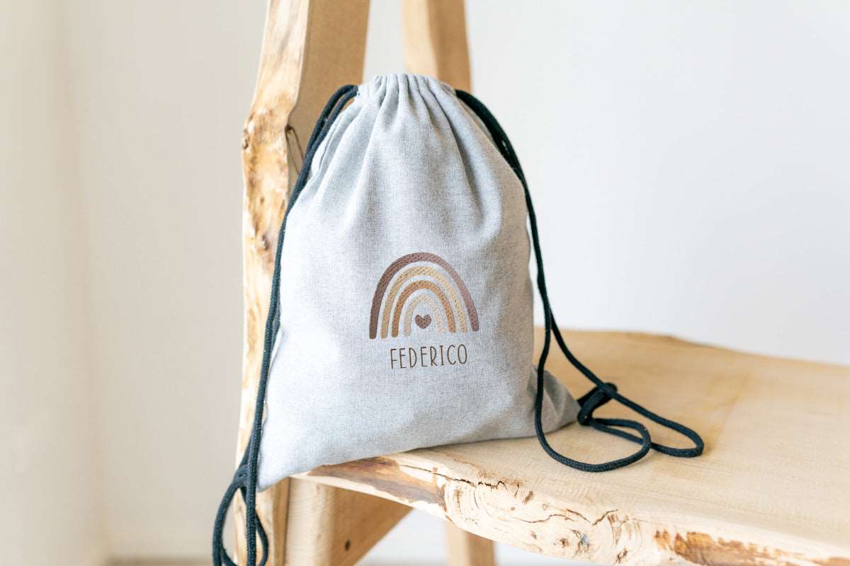 ARTICOLO RICAMATO Sacca in tessuto riciclato con coulisse. E’ personalizzabile con i nostri ricami e il nome del bambino. Questa pratica sacca รจ perfetta per i bambini per le sue dimensioni (30x36cm). Ideale per belle stagioni, per le vacanze, l’asilo o le gite in famiglie.