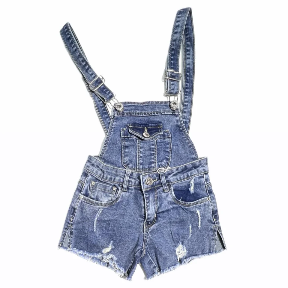 Salopette Bambina Jeans Sfrangiato con Pattina Rimovibile