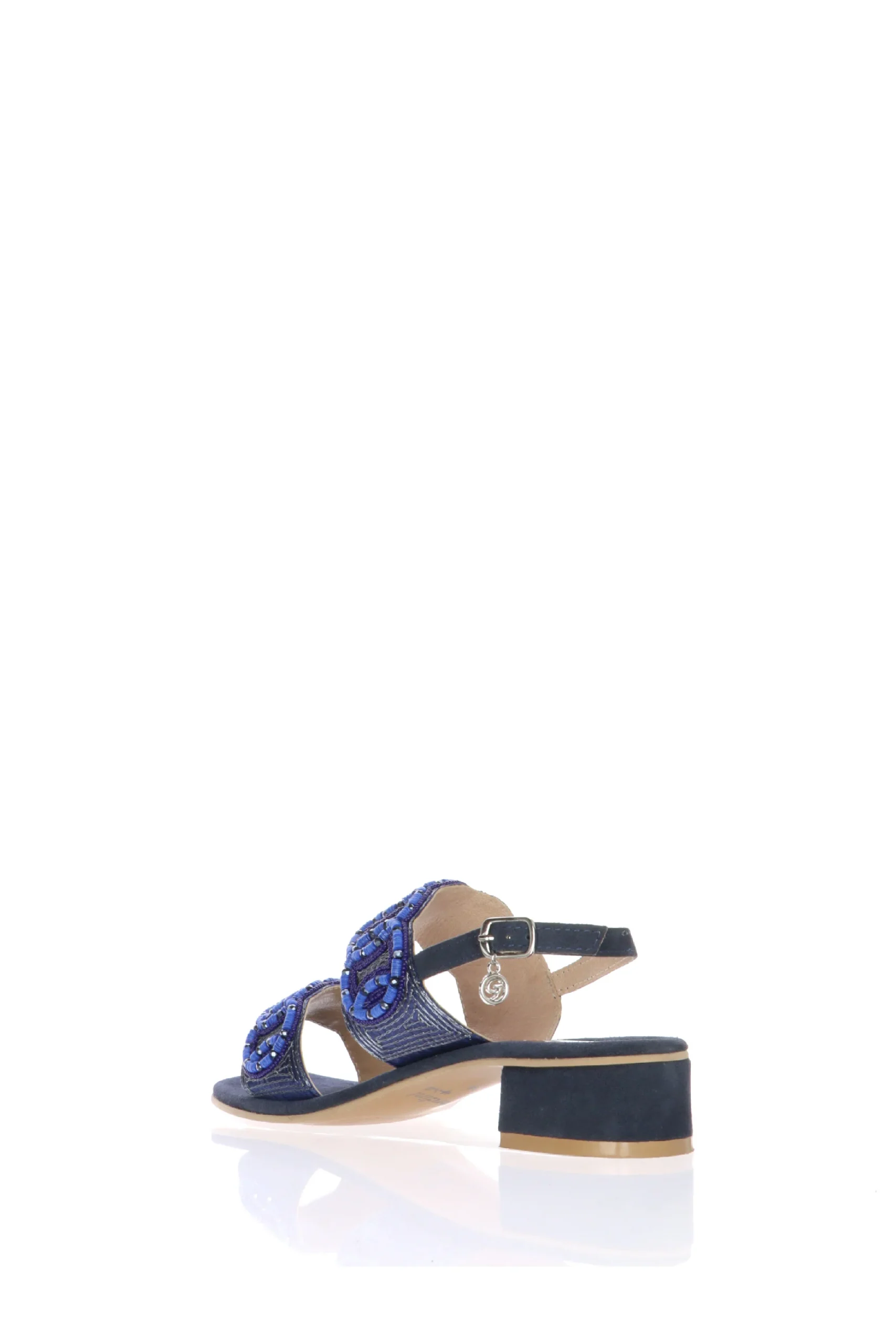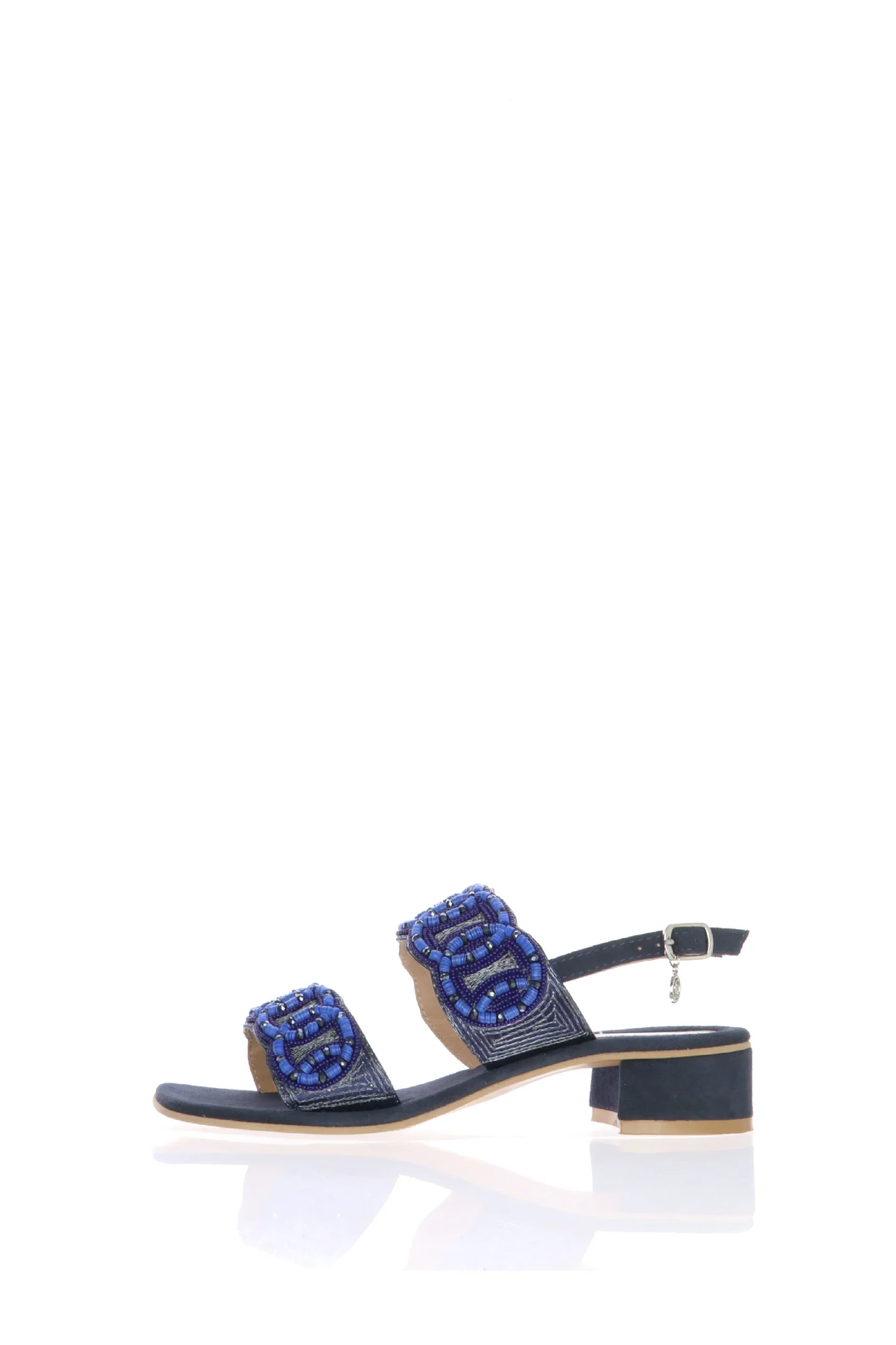 Sandalo blu due fasce tacco medio Gardini