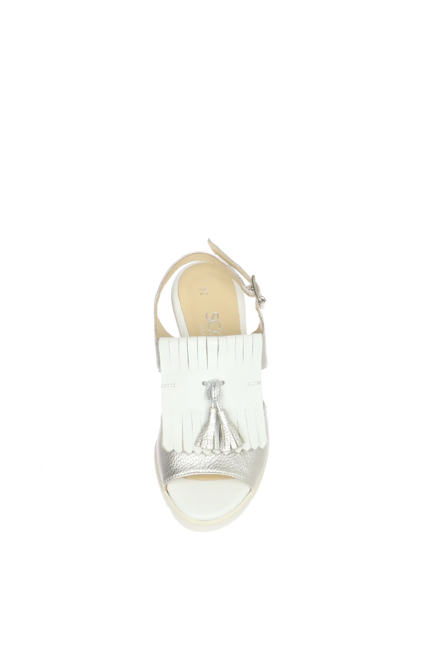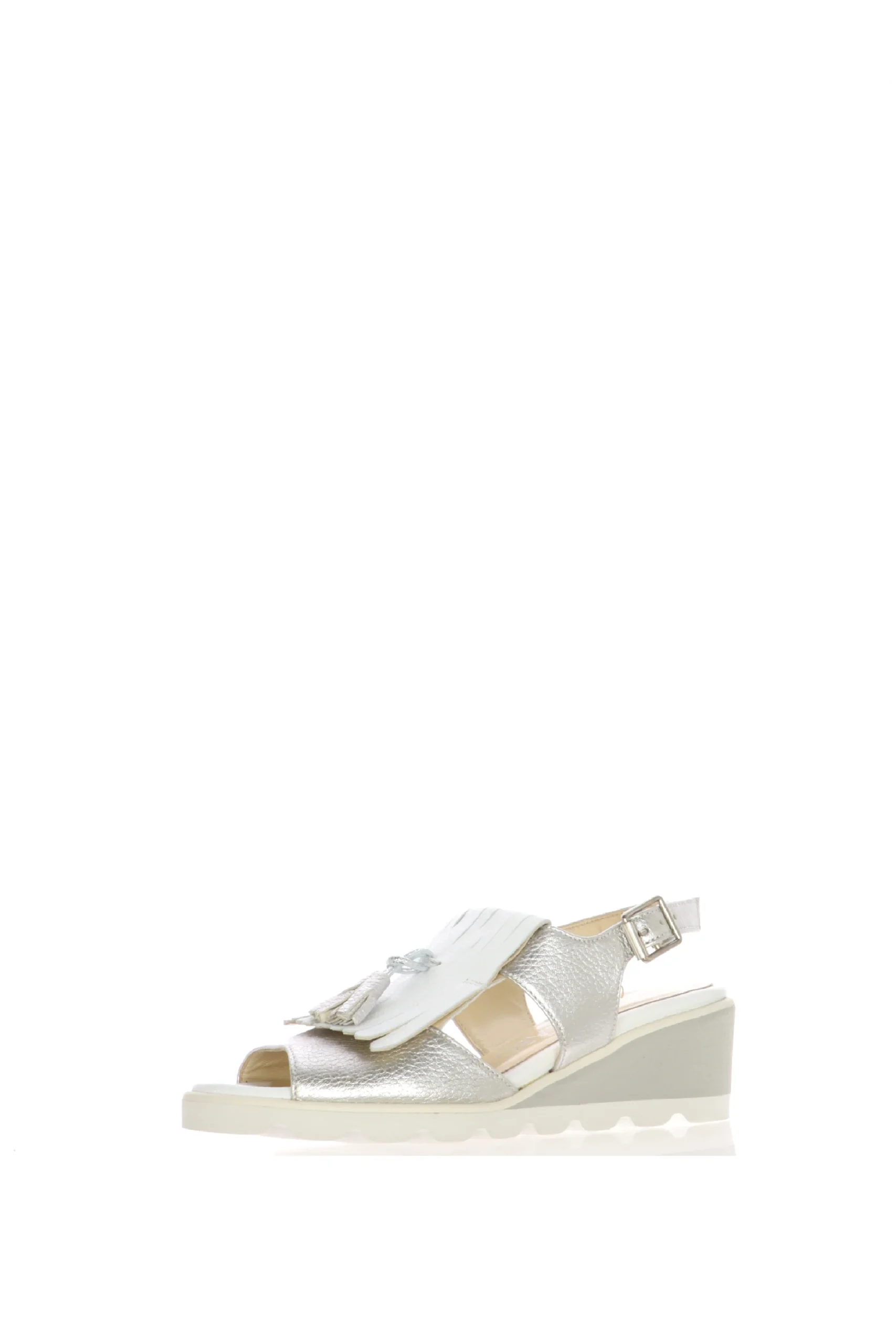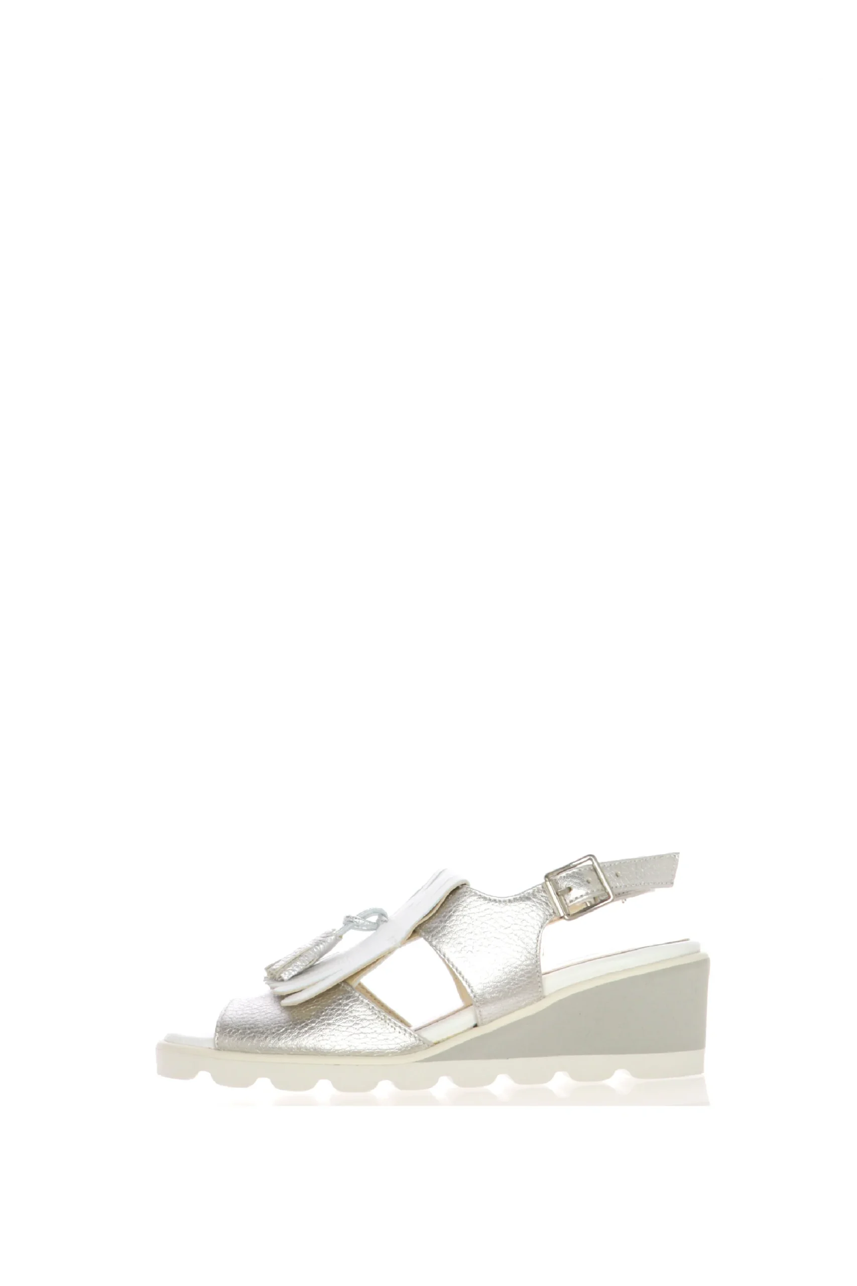 Sandalo con zeppa casual e accessorio frangia. Scolaro