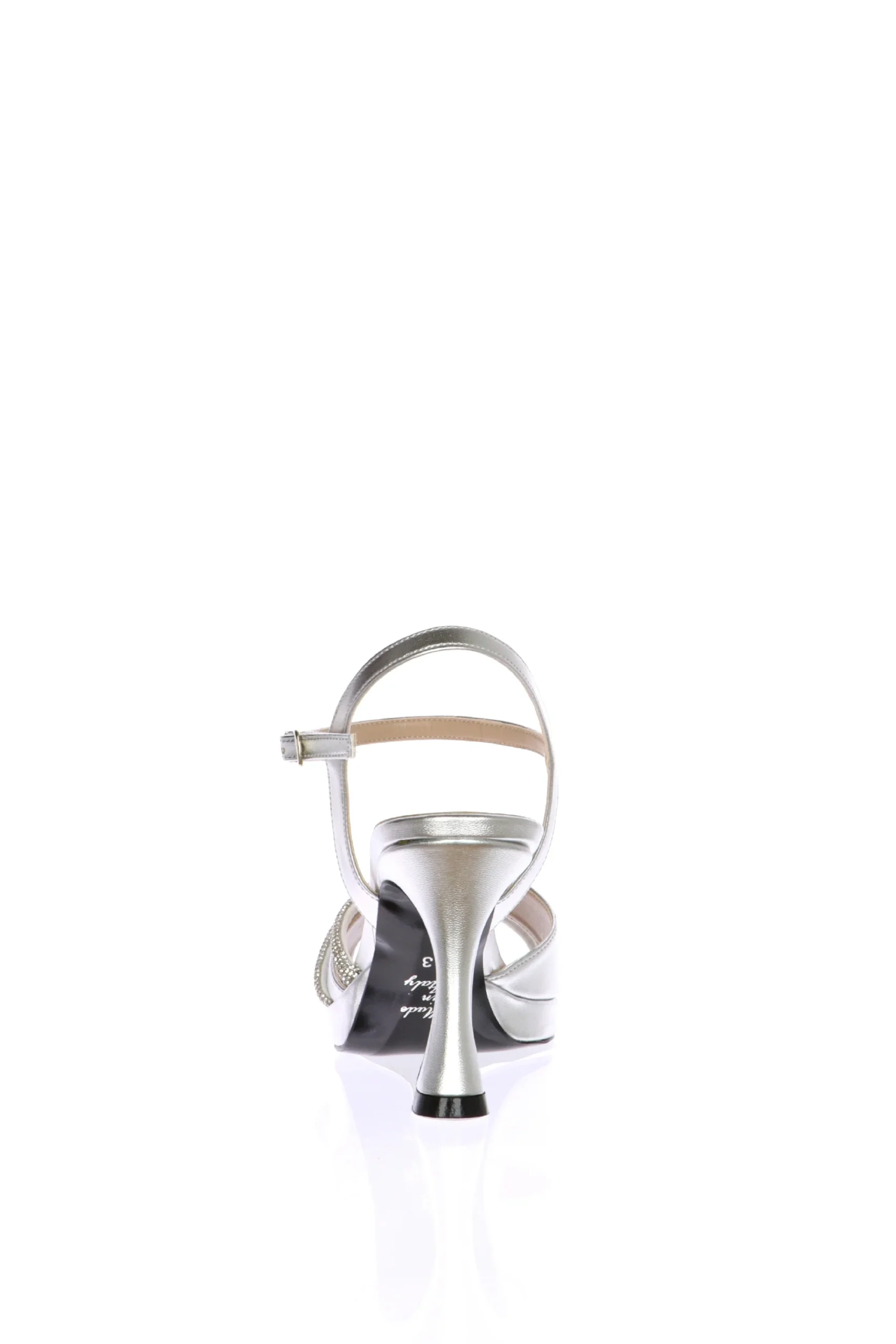 Sandalo gioiello argento in pelle con cinturino a caviglia. La fascia abbraccai bene la pianta e i tubi di strass sono luminossimi. Calzata comoda e avvolgente per un sandalo da indossare in momenti unici ed emozionanti! I AM è made in Italy