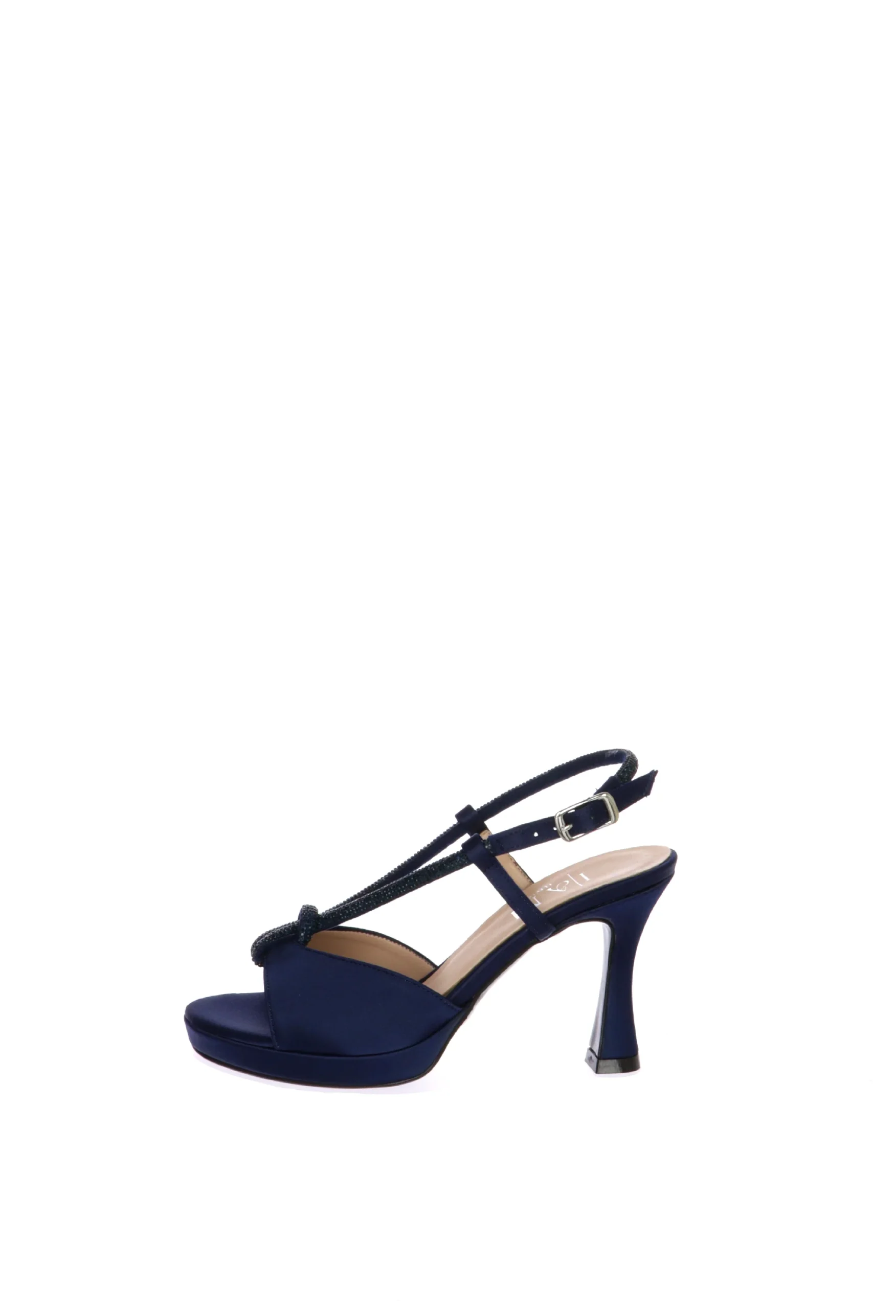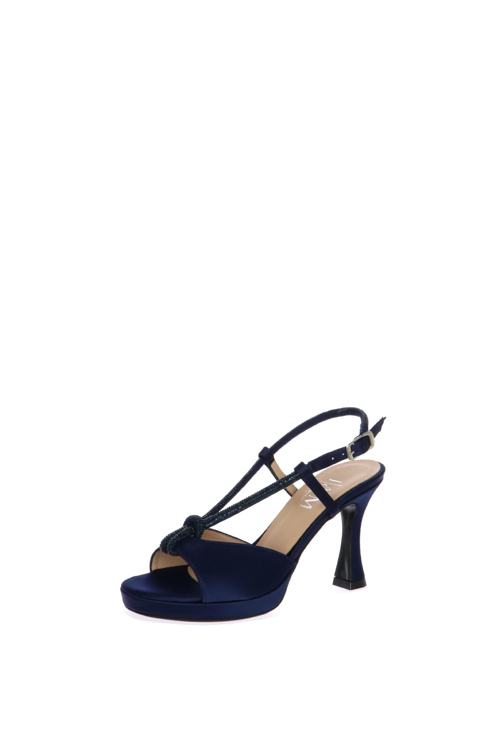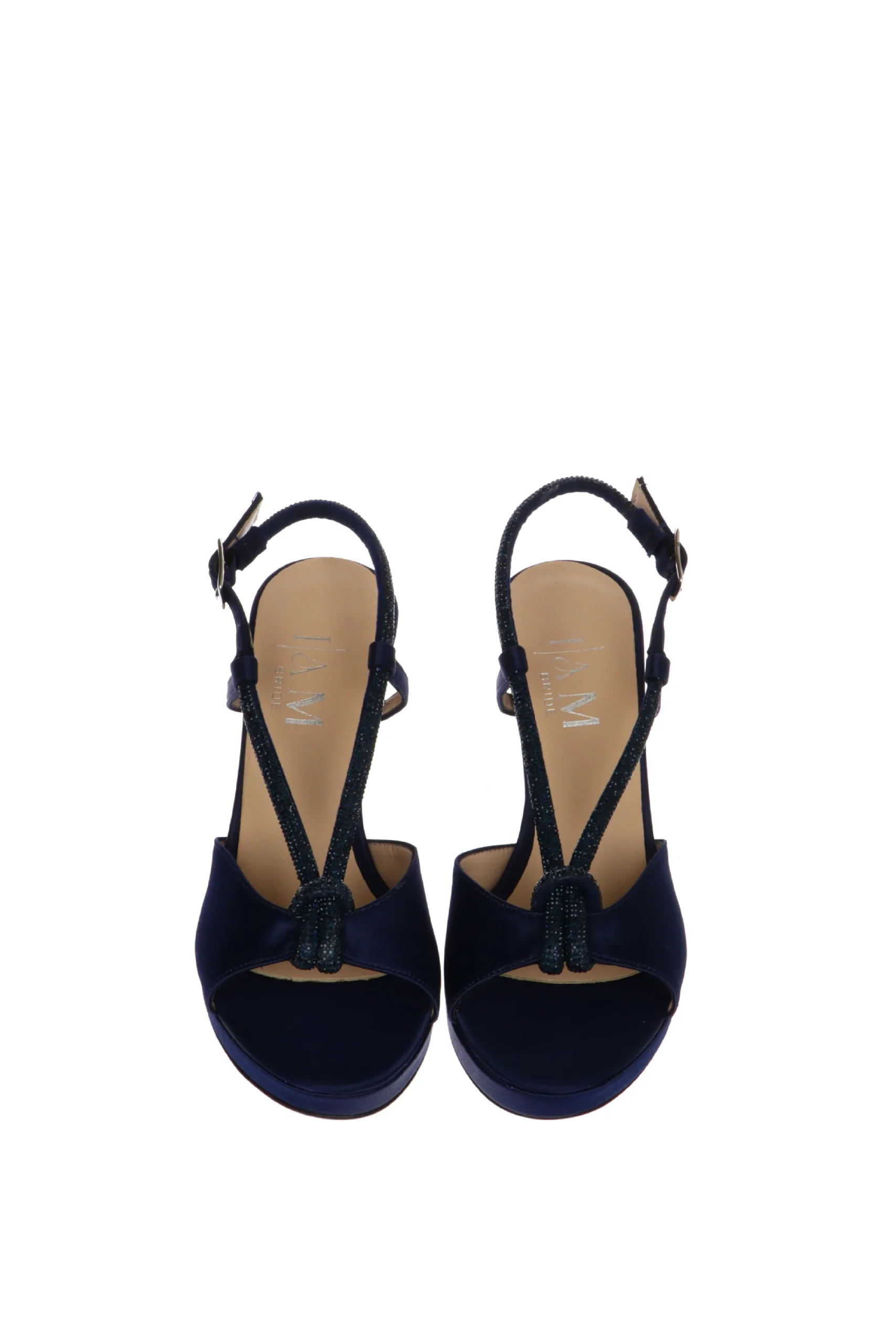 Maura Sandalo cerimonia in raso, cipria o blu, con nodo gioiello. Un modello avvolgente e con scollo a V che slancia la figura. Per i tuoi momenti piรน importanti, scegli i sandali da cerimonia I AM Bride. Qualitร artigianale made in Italy