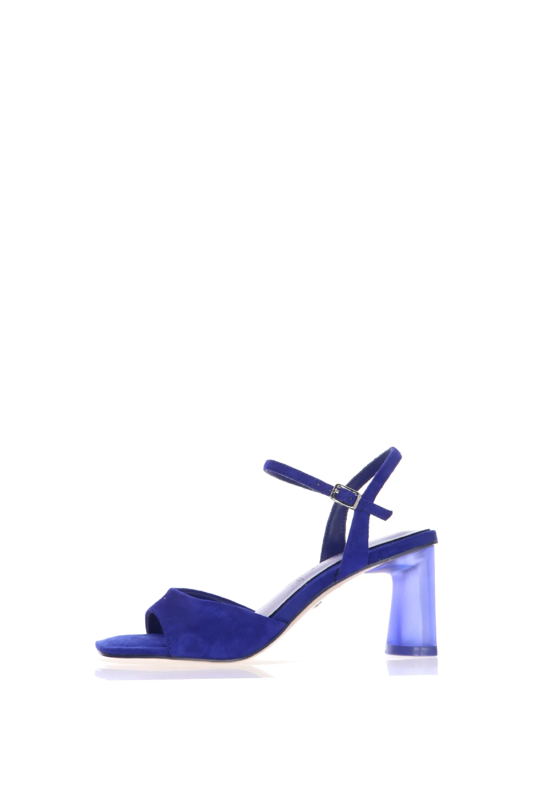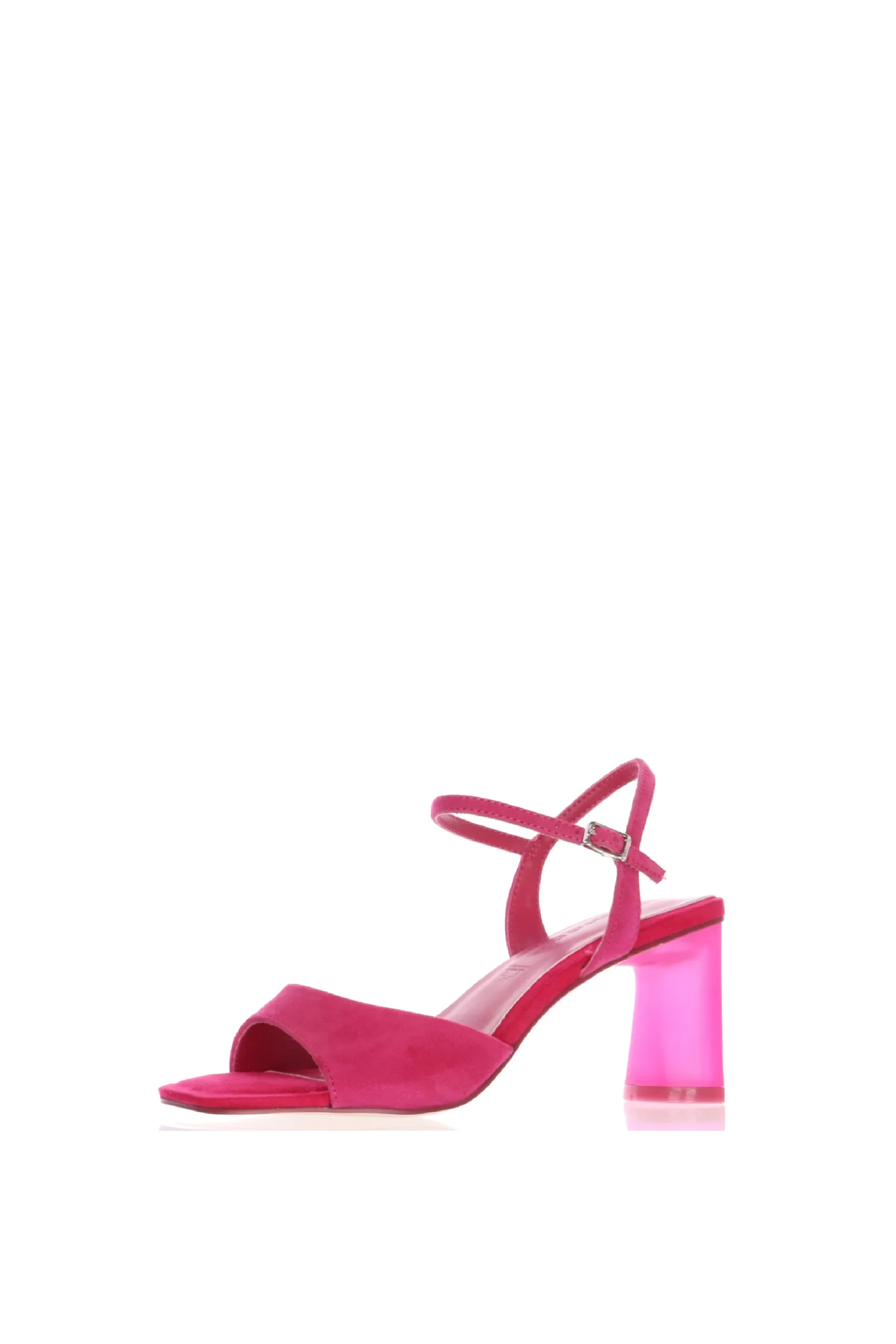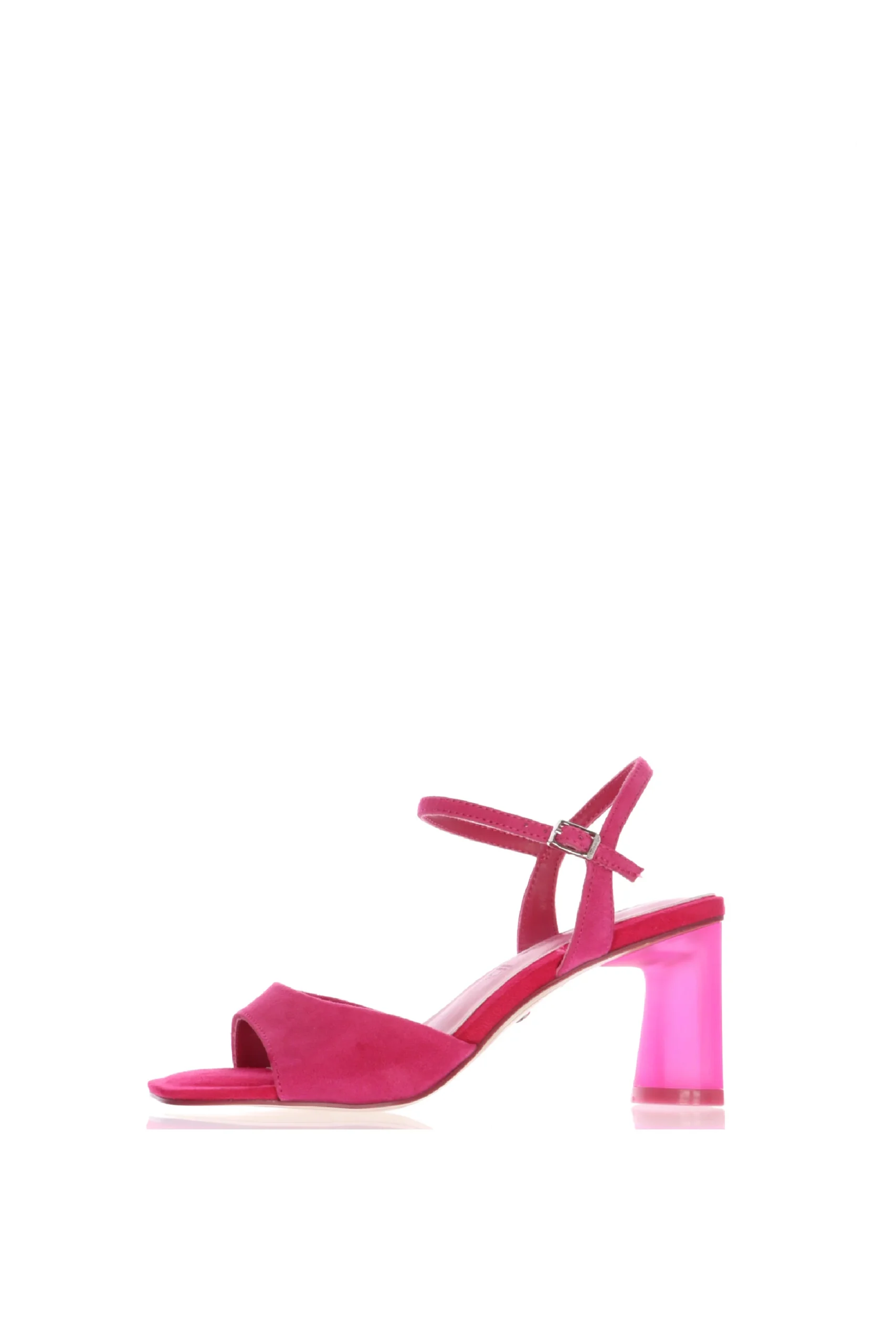 Sandalo in camoscio fuxia e blu con tacco Tamaris