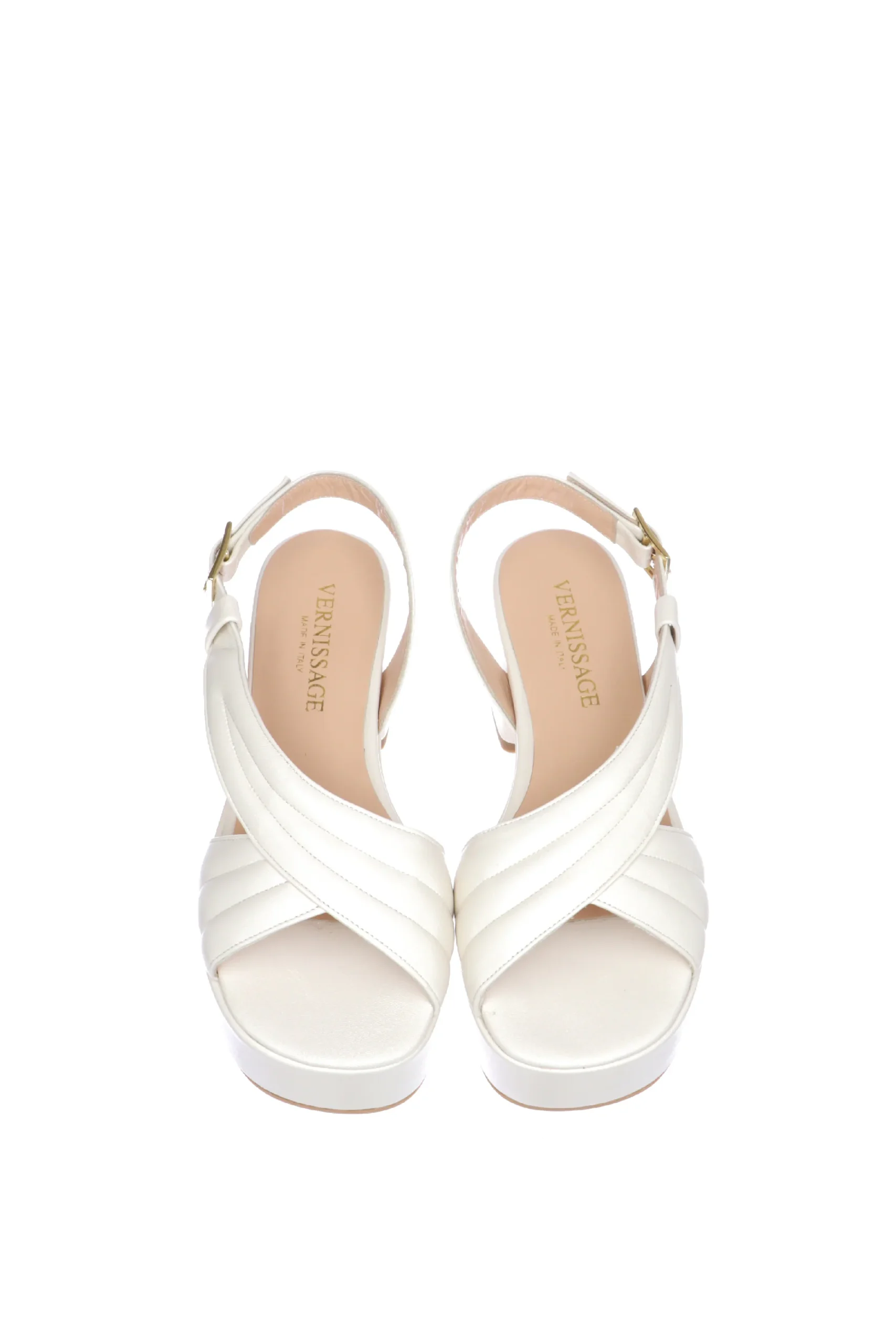 Sandalo in nappa beige con tacco largo Soffice Sogno