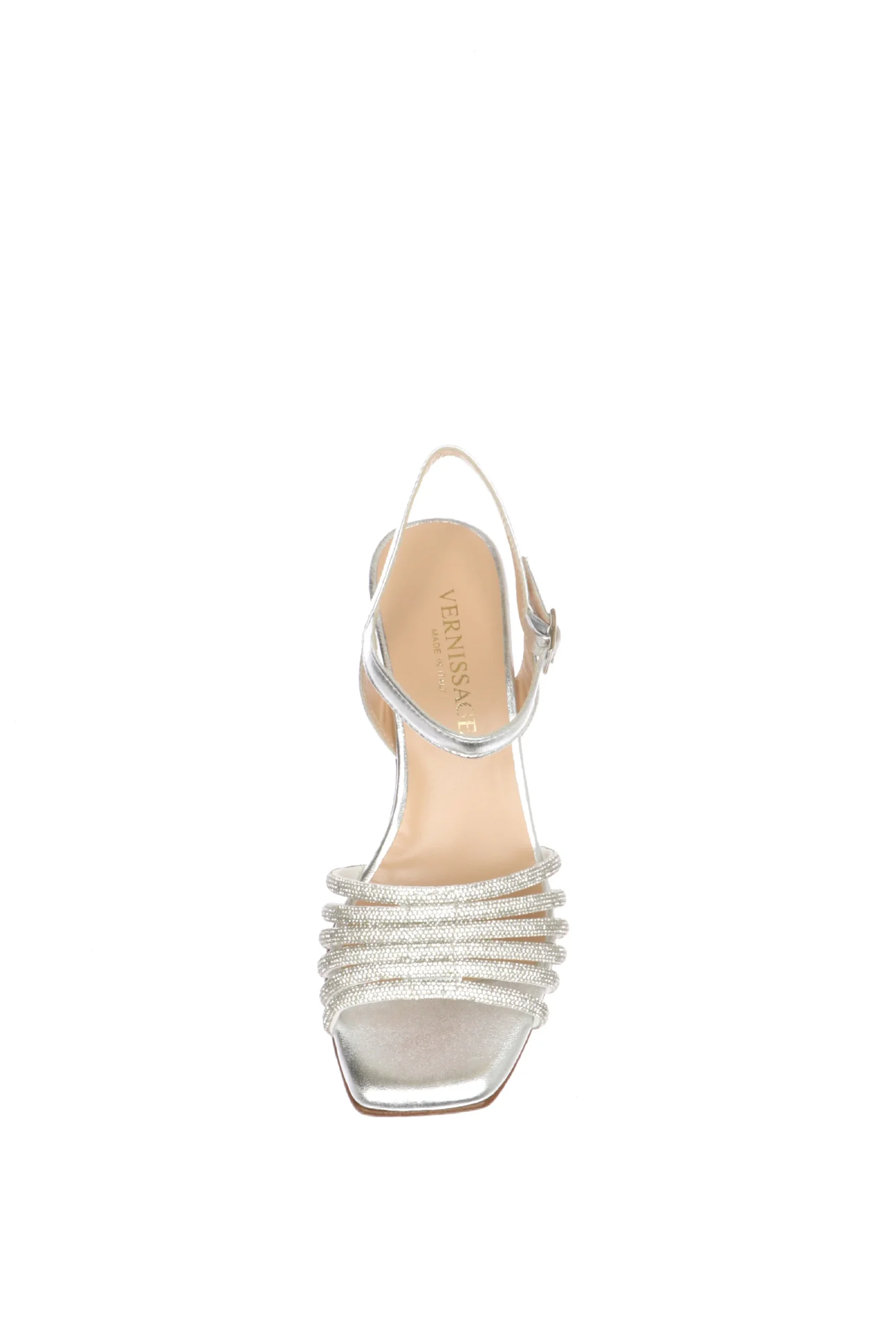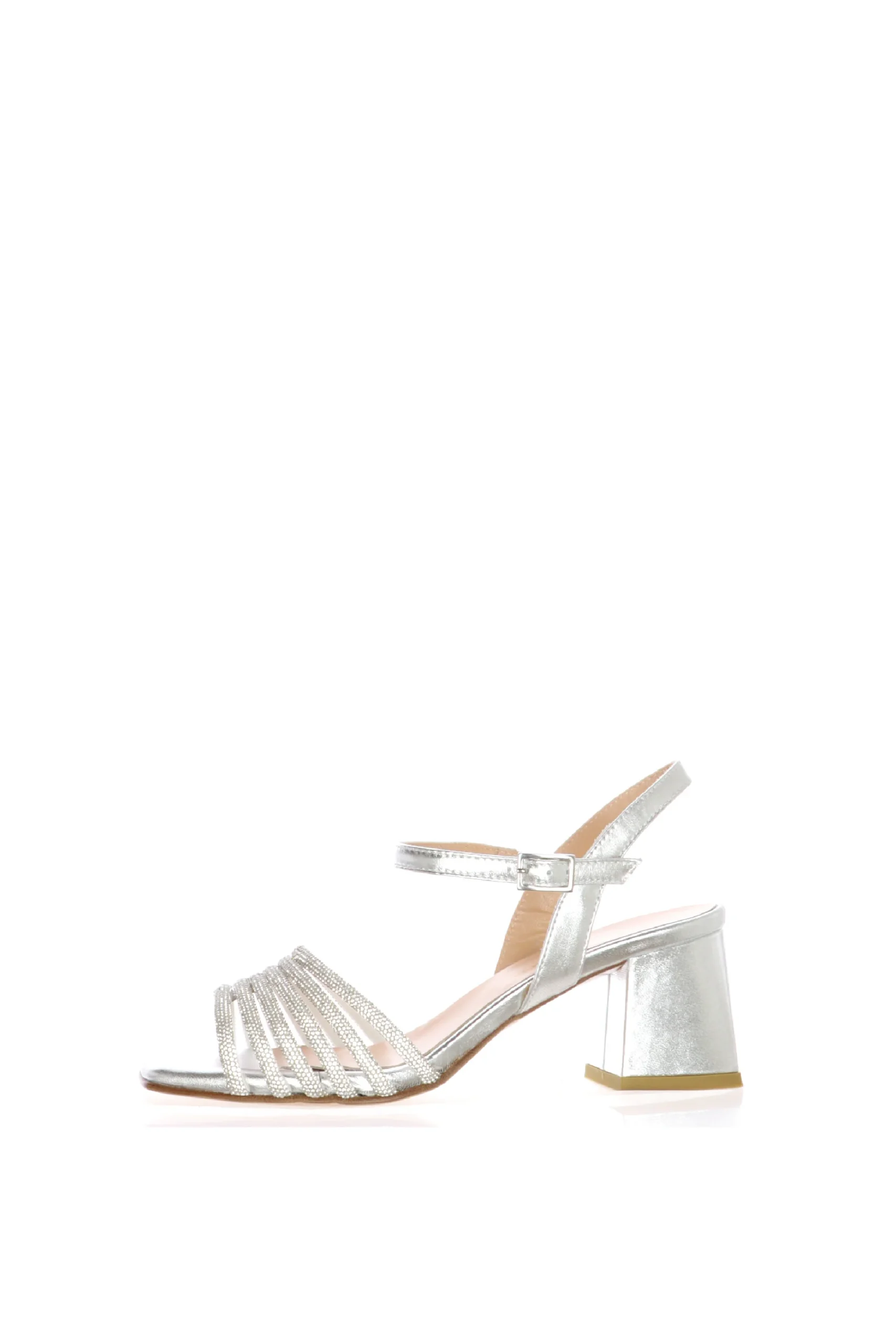 Recensisci per primo “Sandalo in pelle argento con fasce strassate Soffice Sogno”