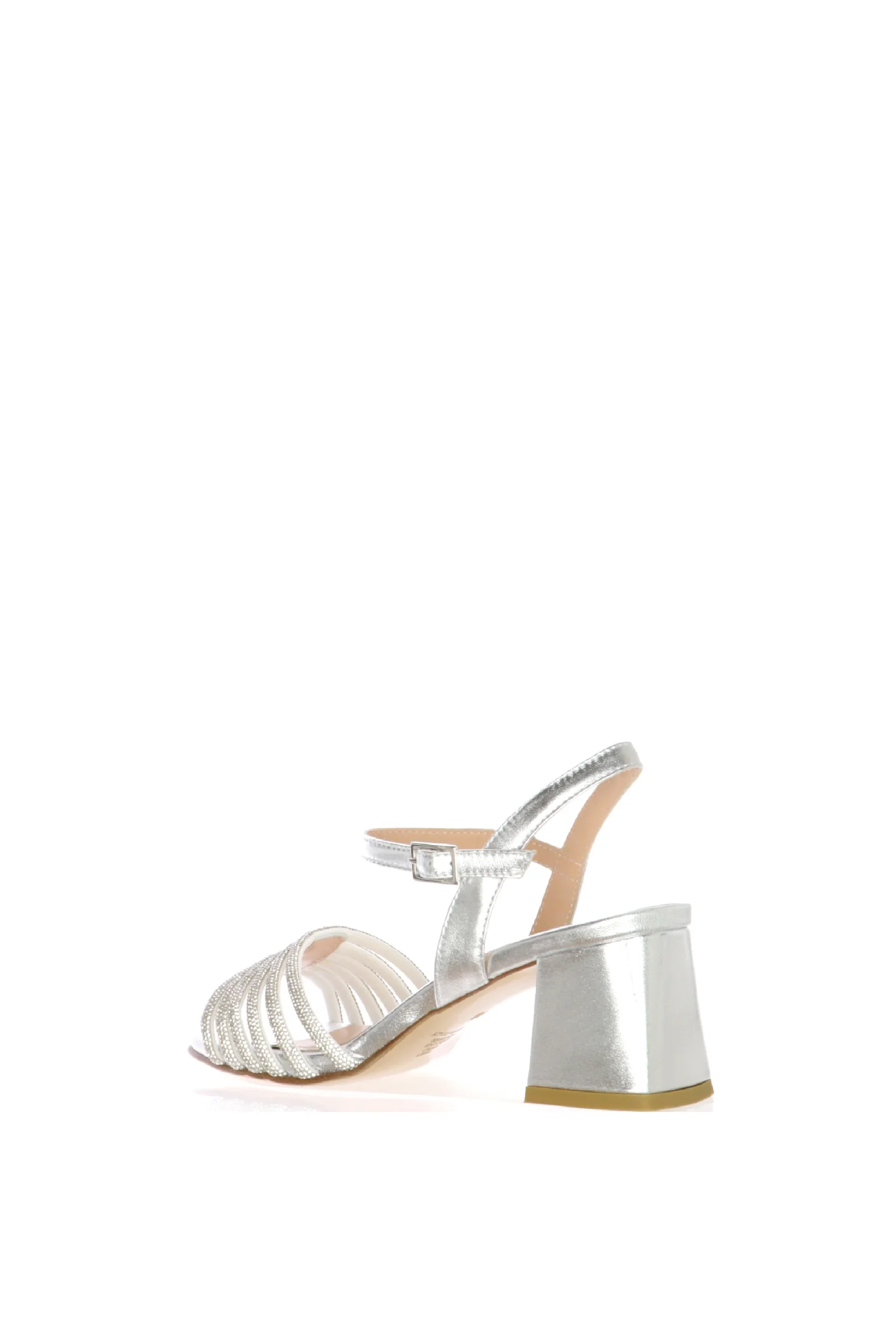 Sandalo in pelle argento con fasce strassate Soffice Sogno