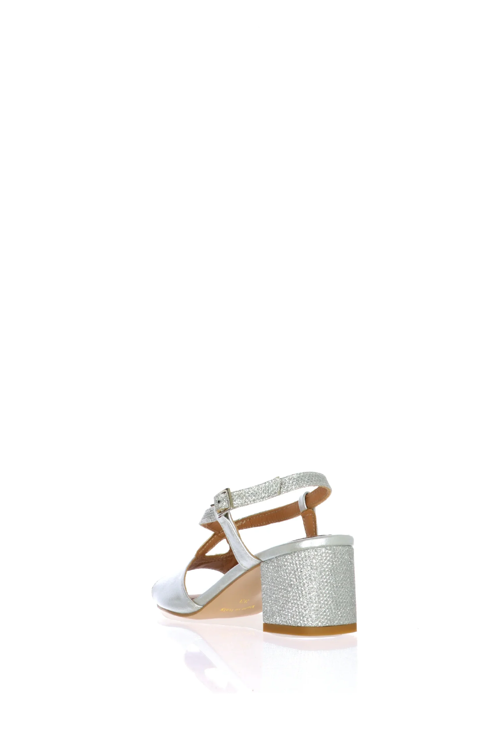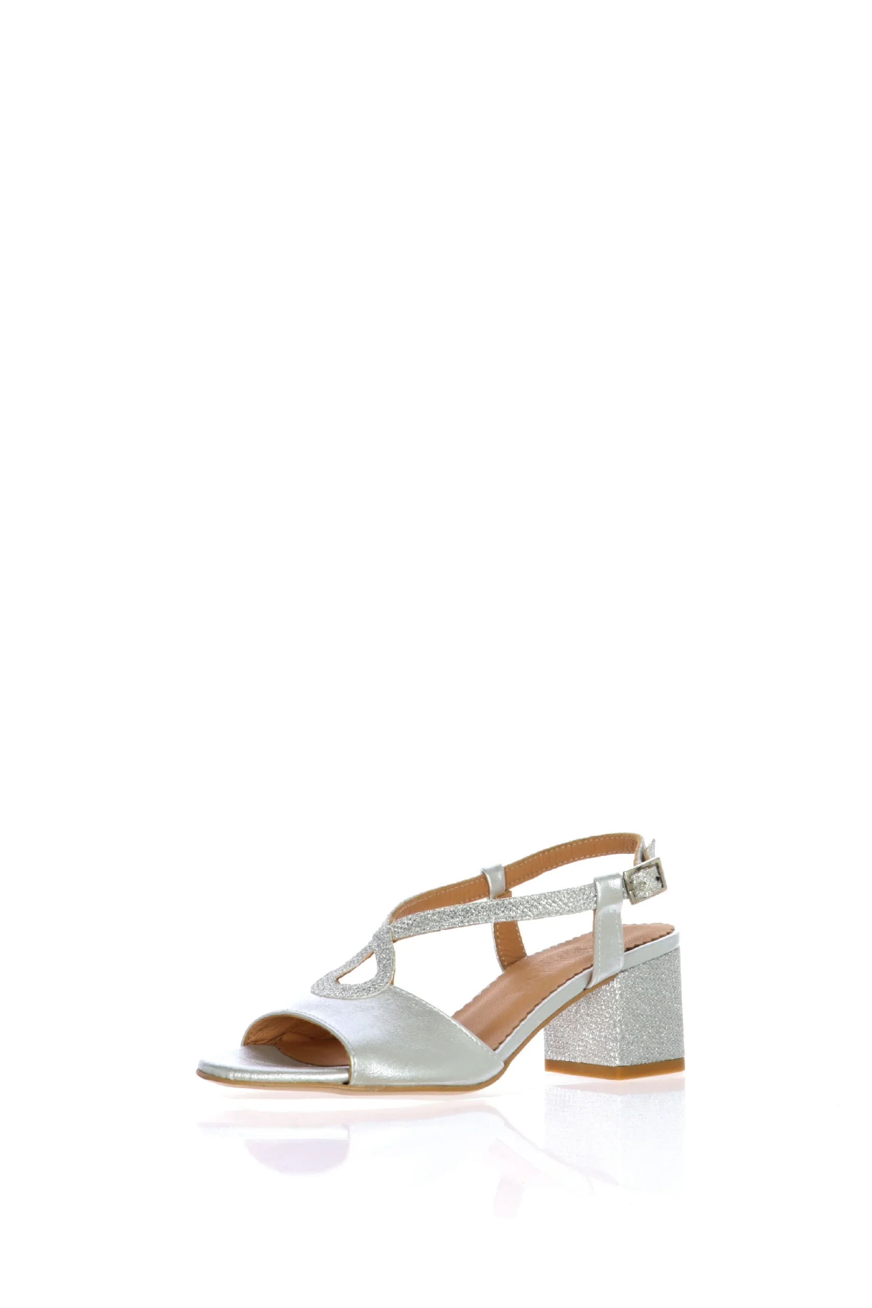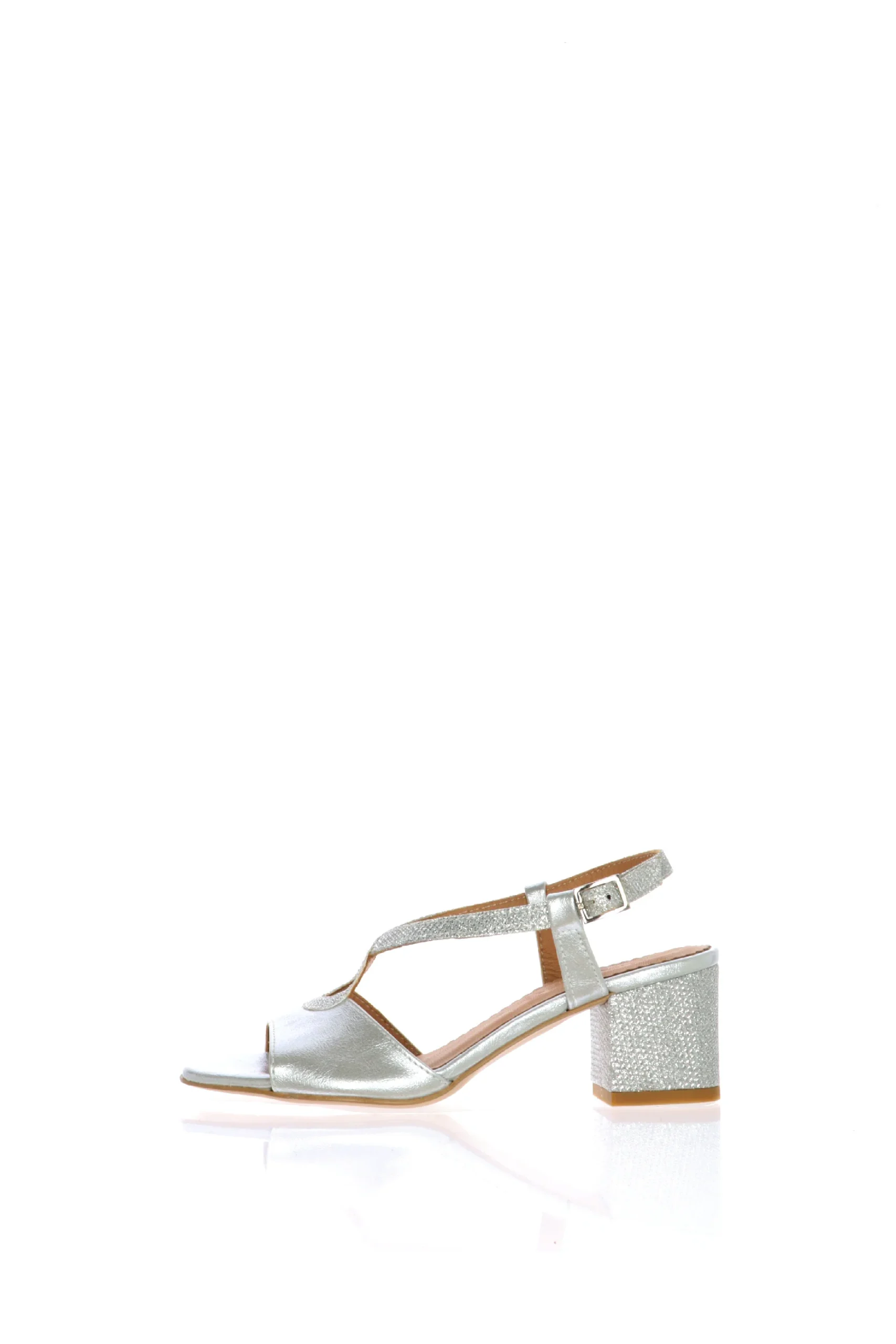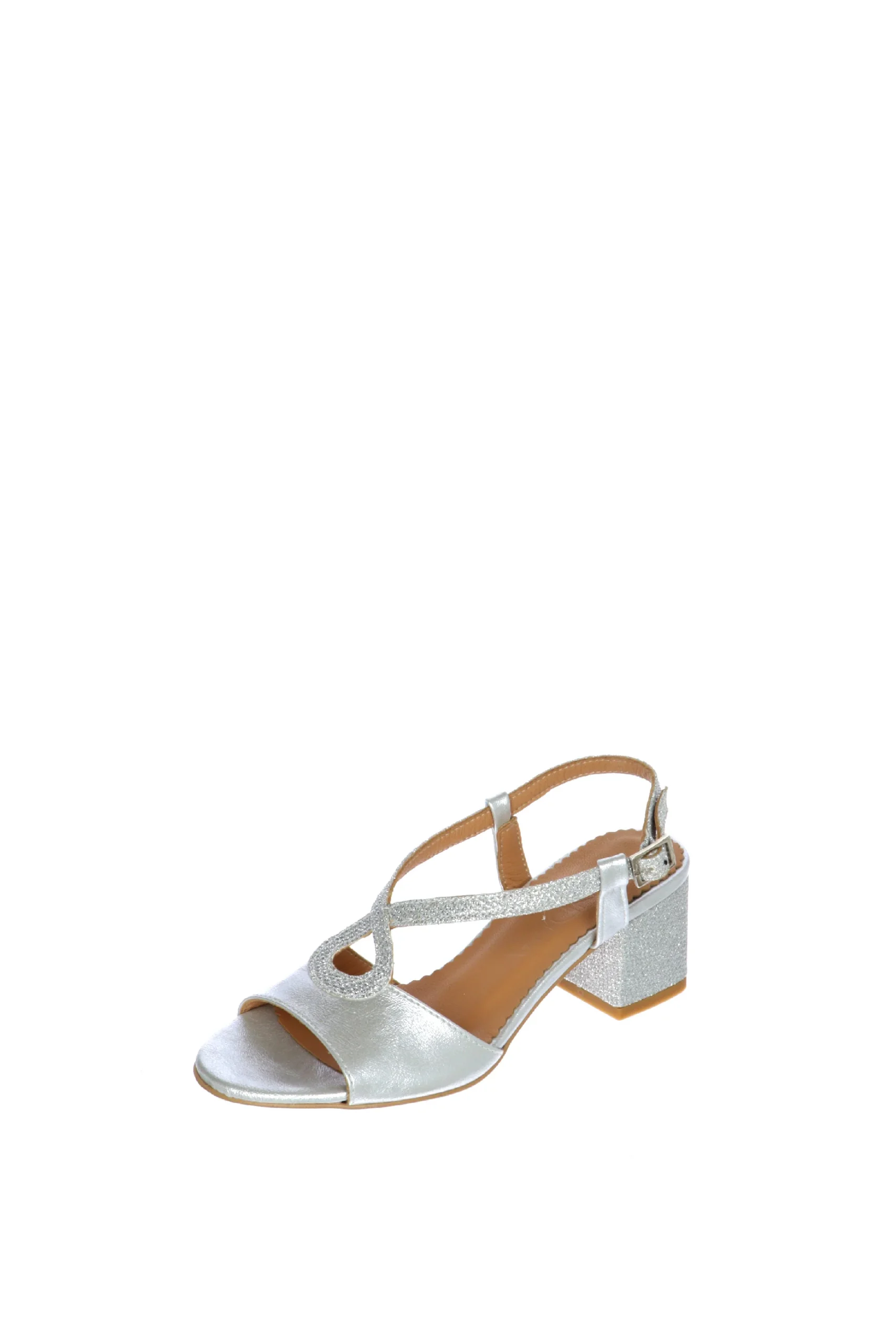 Sandalo in pelle e dettagli in tessuto glitter. Disponibile in tre colori: argento, nero, rosa cipria. La fascia abbraccia bene la pianta del piede e e l’incrocio basso slancia la figura, mantendo il piede fermo e sicuro. Rendi unici i tuoi outfit! Sandra Calzature, qualitร artigianale made in Italy. Modello disponibile dal numero piccolo 33 al numero grande 46.