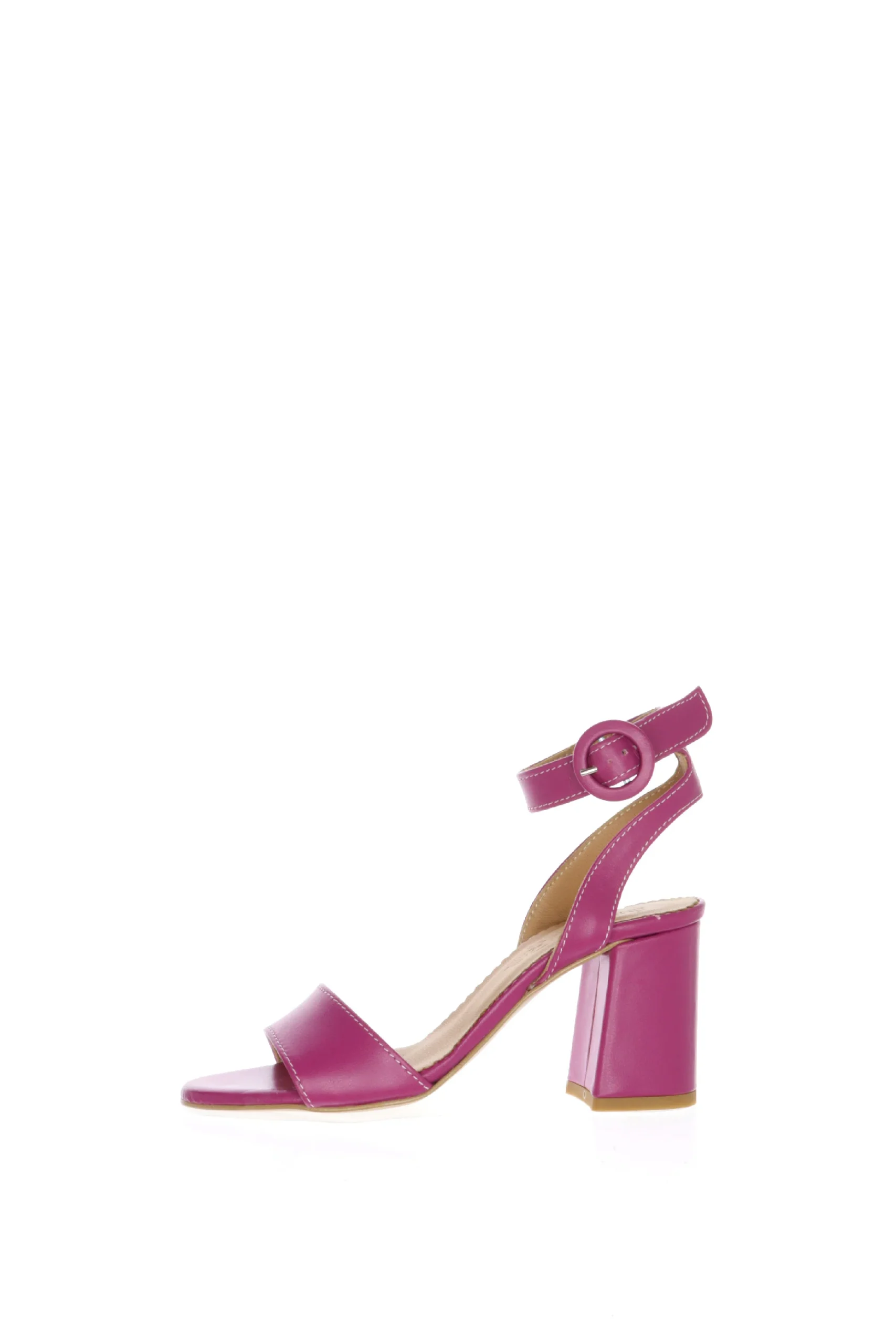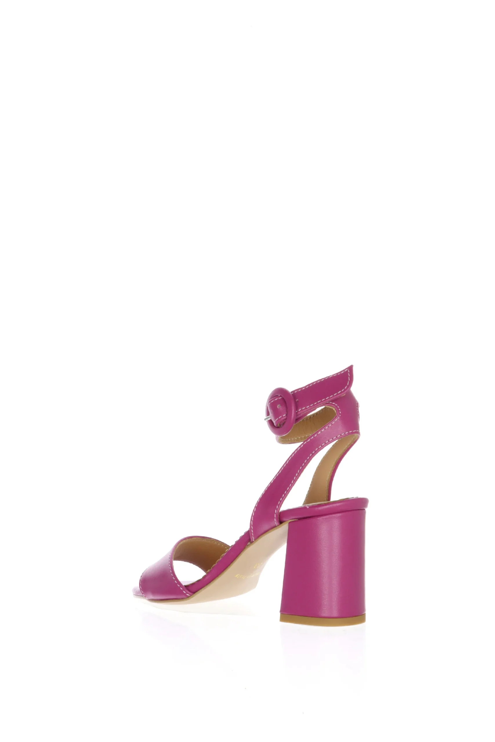 Sandalo in pelle fuxia con cinturino alto a caviglia e tacco doppio. La fascia abbraccia bene il piede e il cinturino alto alla caviglia mantiente il piede fermo e sicuro nella camminata. Un modello semplice ma dal taglio particolare, un colore matto, il piรน richiesto della stagione! Disponibile nei numeri piccoli e grandi donna dal 32 al 44. Qualitร artigianale made in Italy