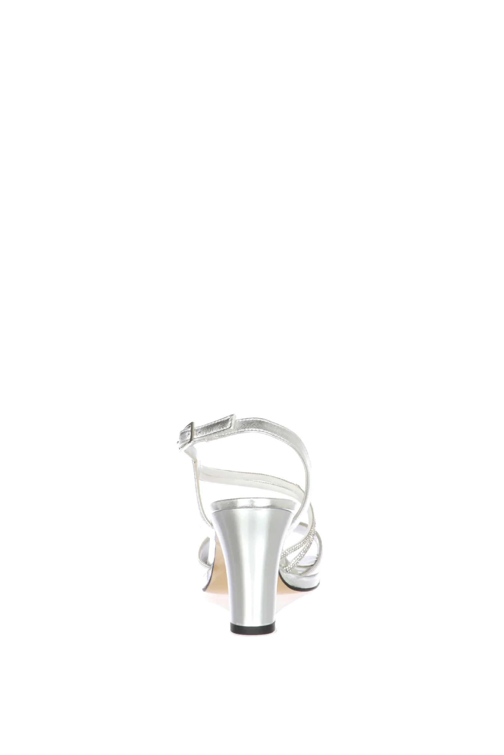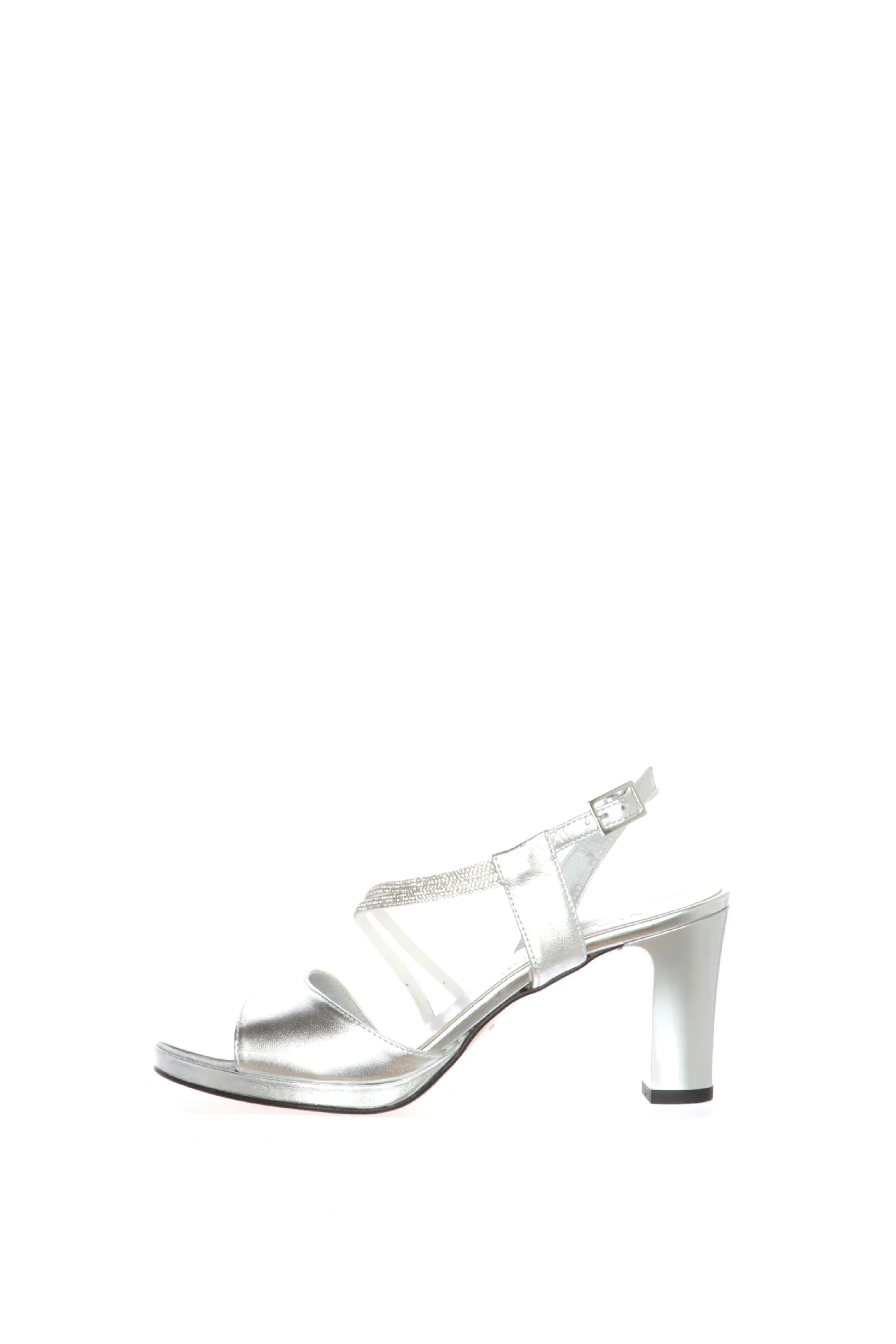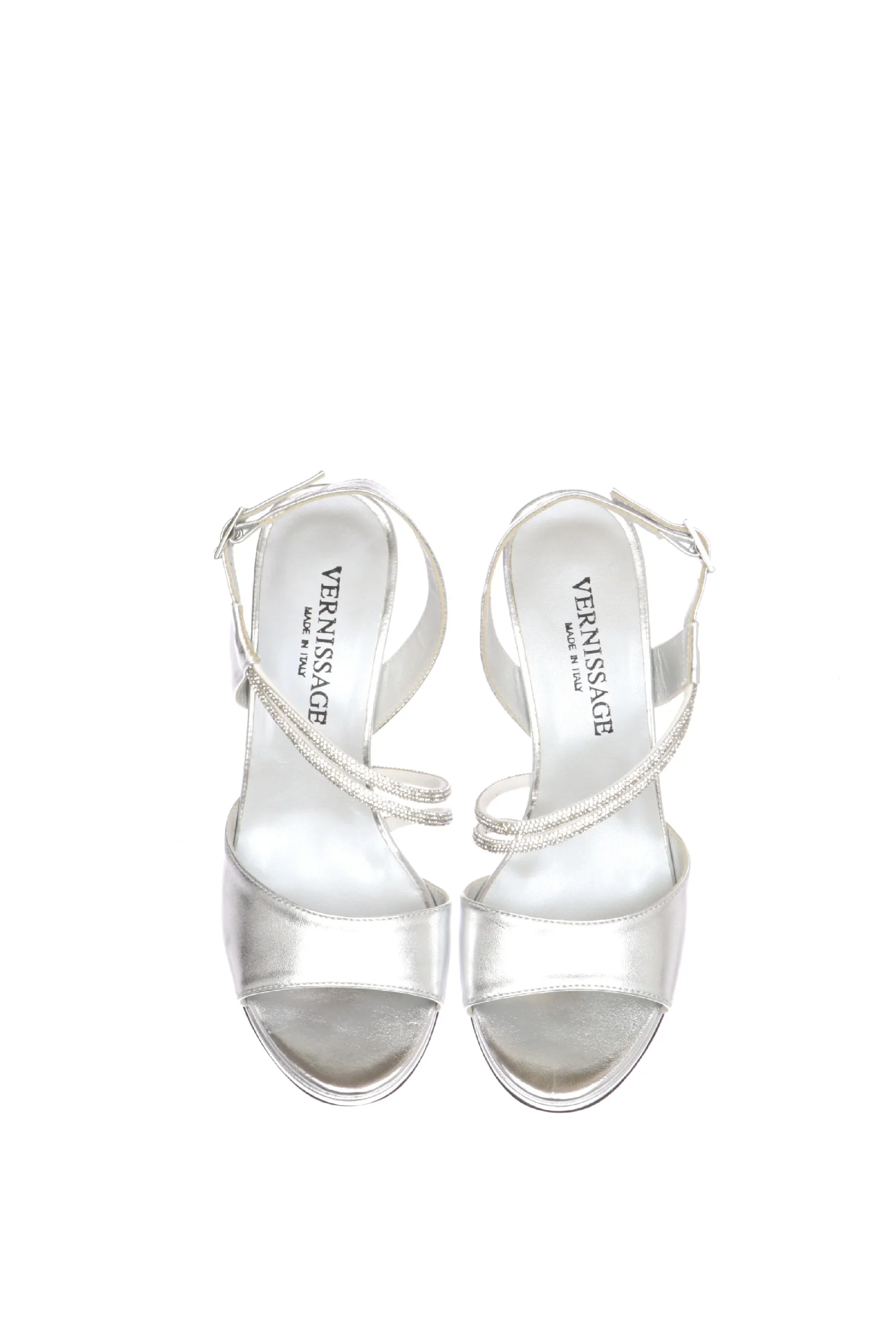 Sandalo in pelle laminata argento con tubo di strass Soffice Sogno