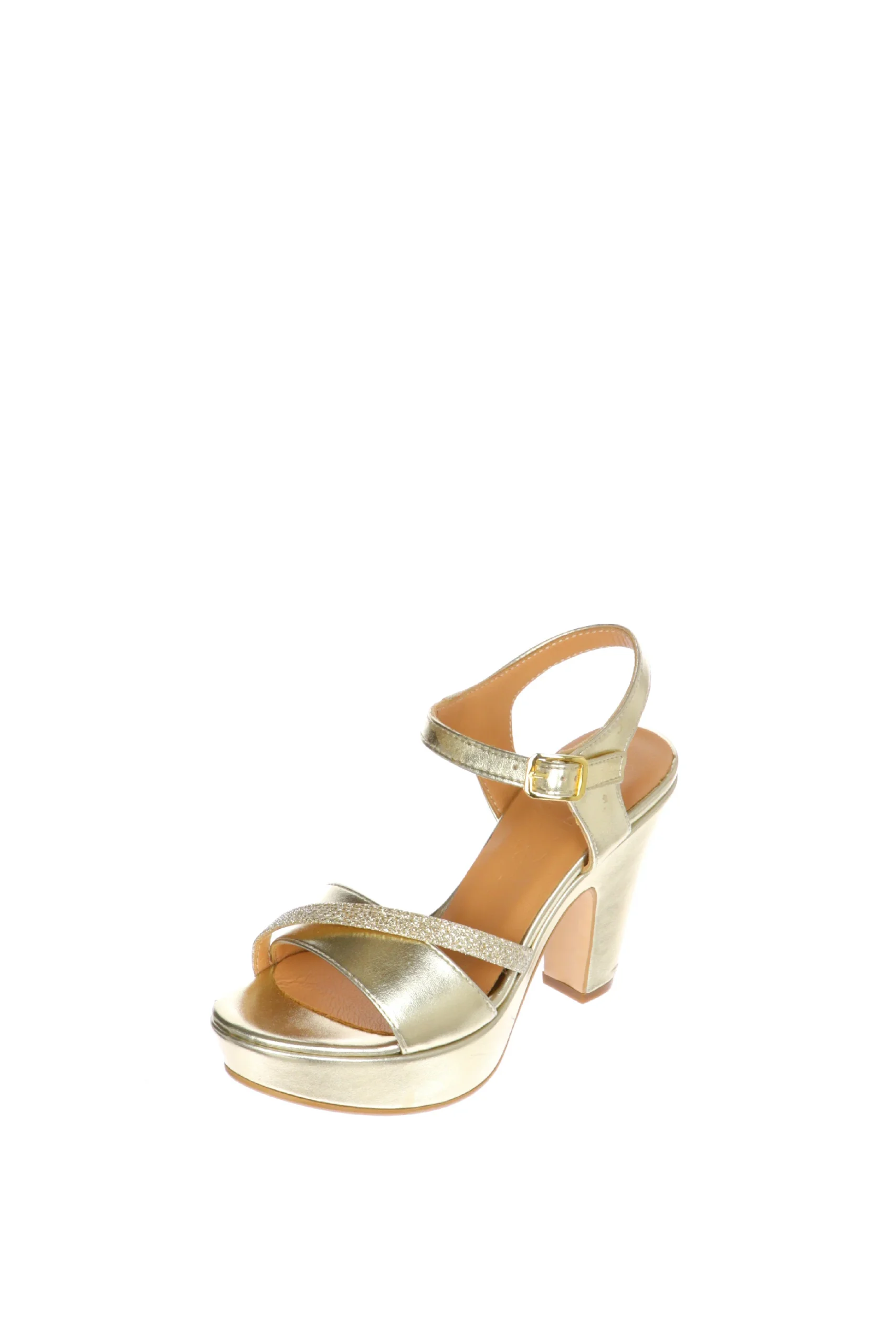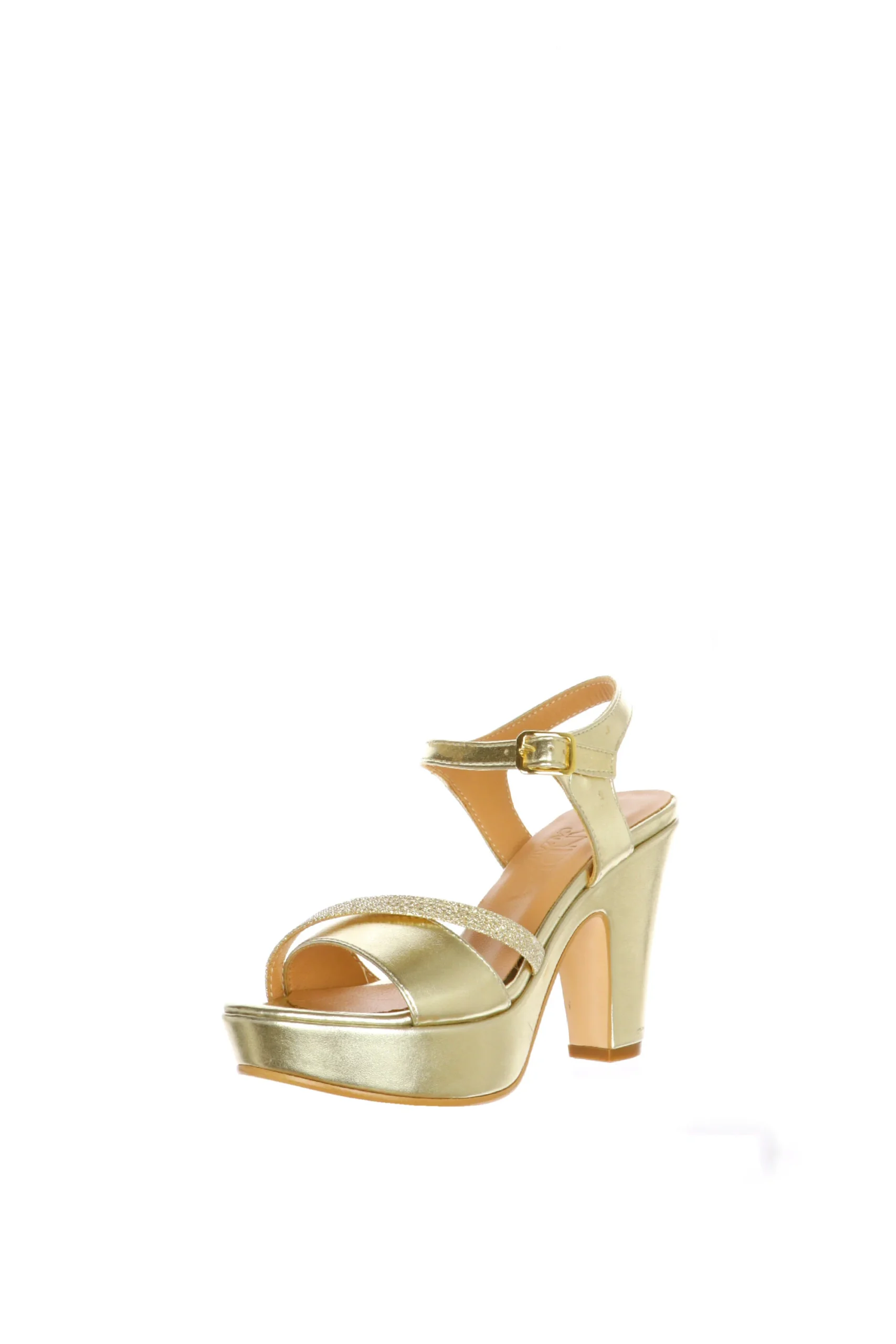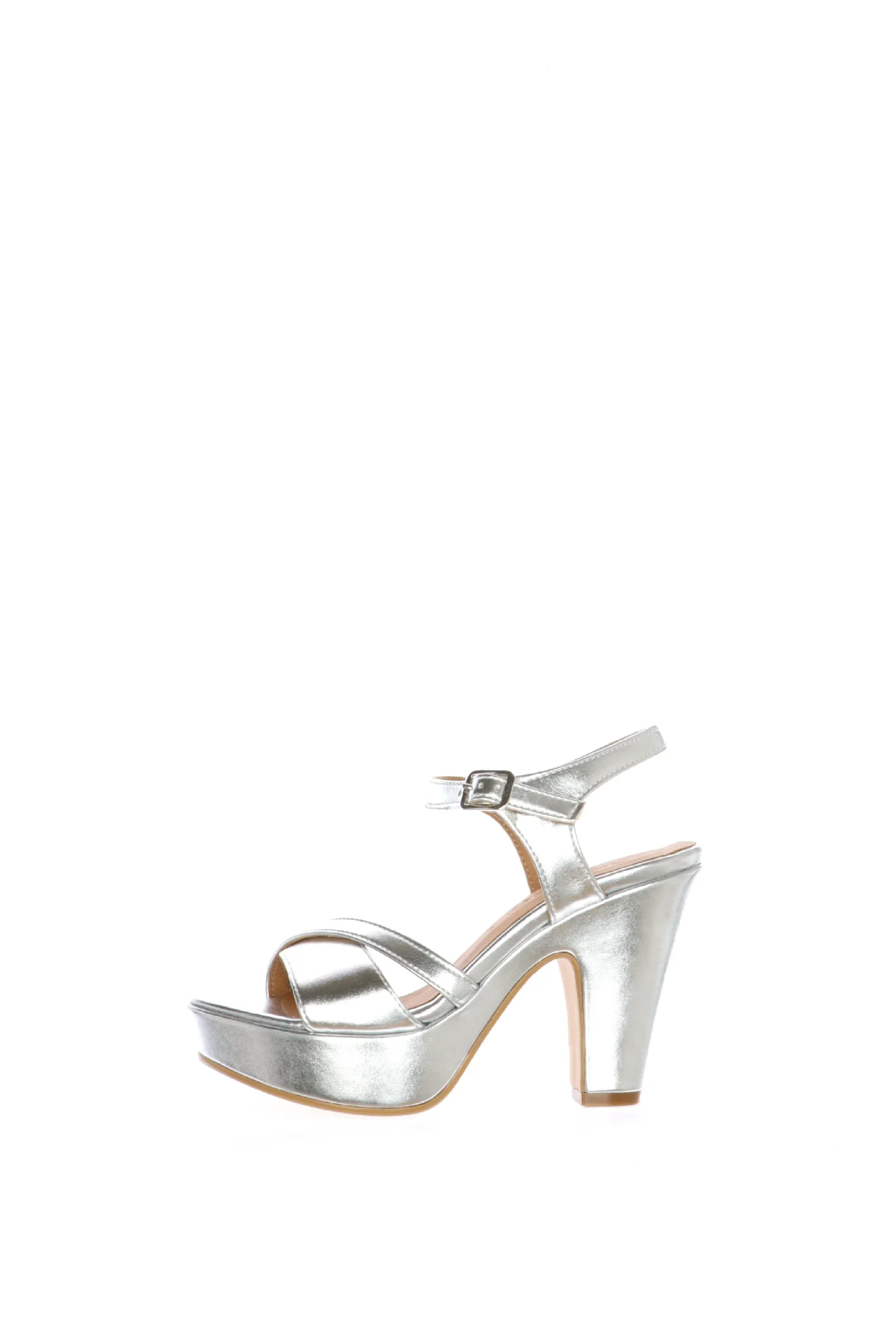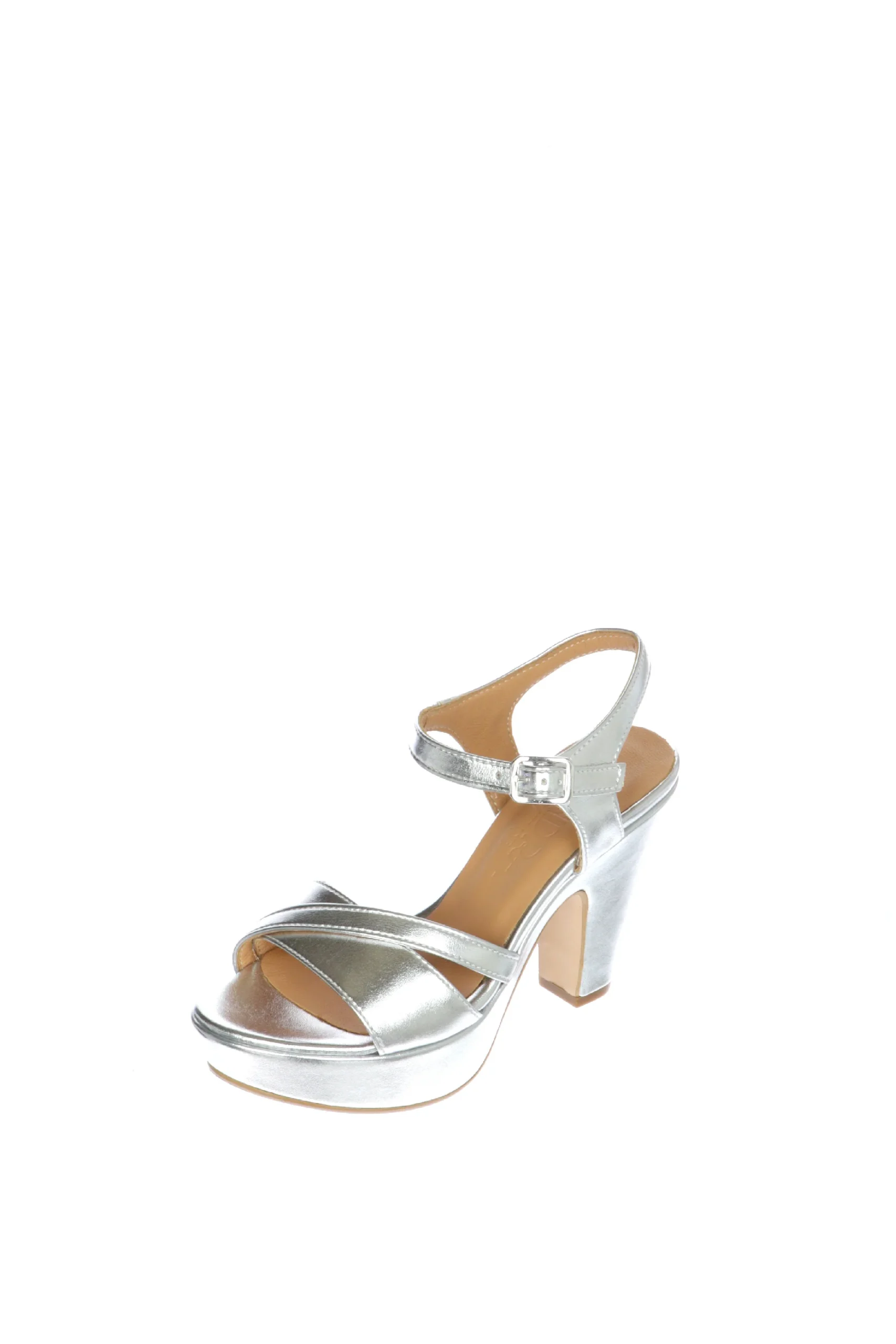 Sandalo in pelle laminata, argento o platino, disponibile nei numeri piccoli e grandi donna dal 32 al 45. Luminoso, in pelle morbidissima, la fascia abbraccia bene il piede e il cinturino a caviglia lo mantiene fermo e sostiene la camminata. Il tacco รจ alto e doppio, dalla forma slanciata. Sandra Calzature, qualitร artigianale made in Italy