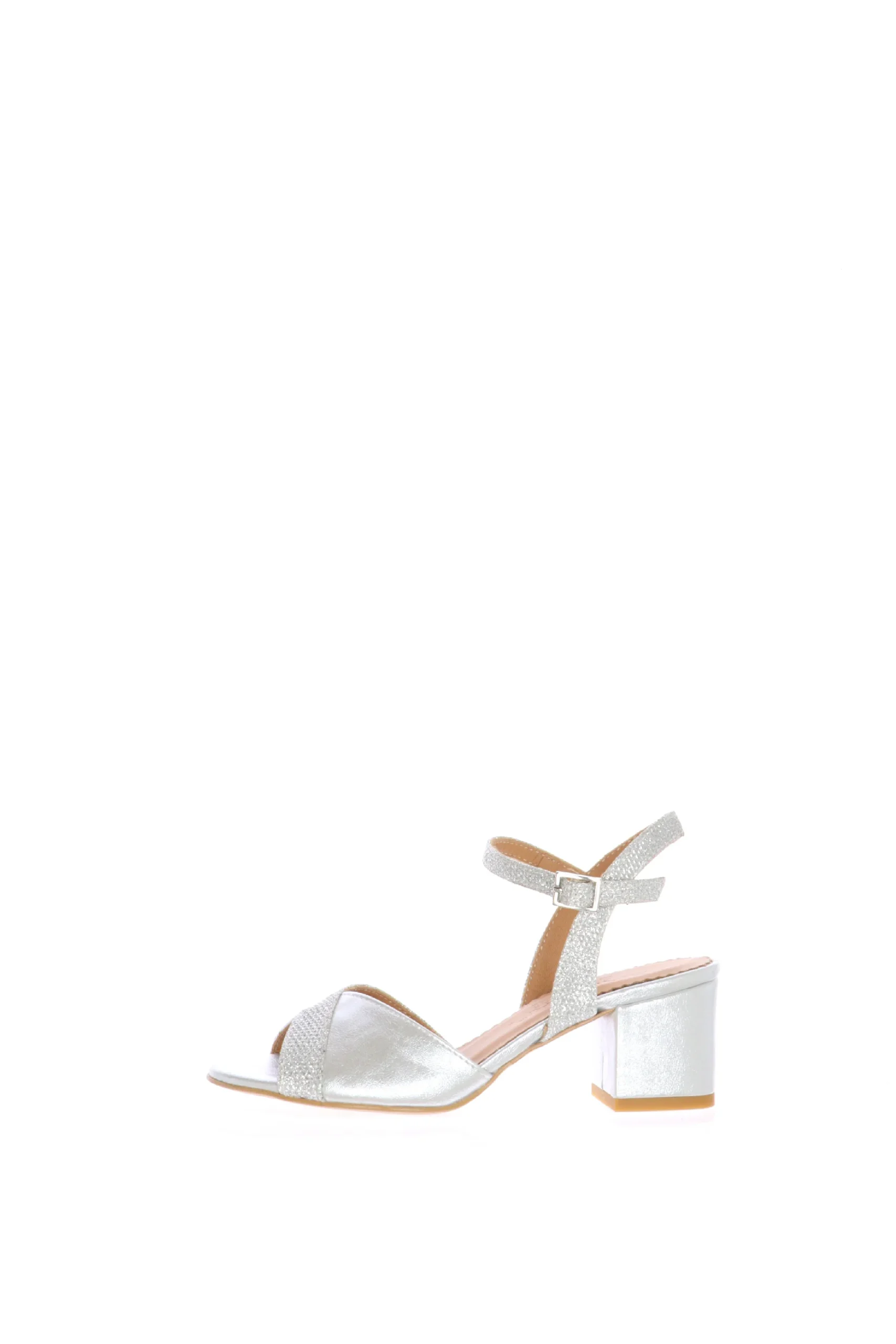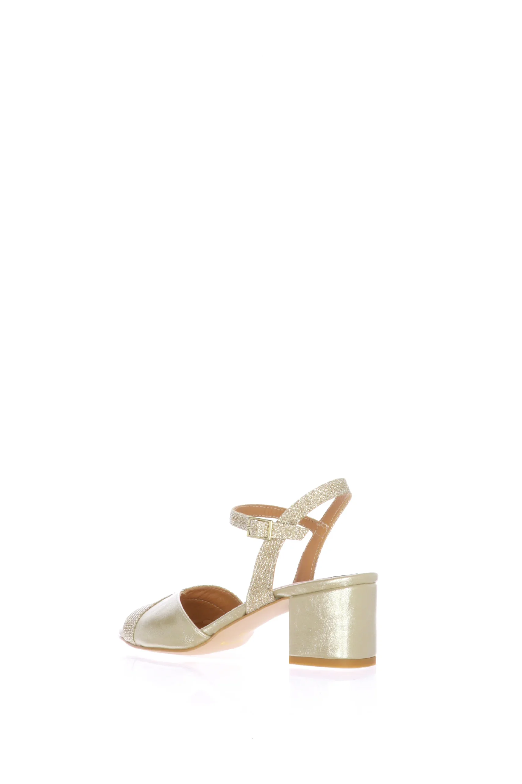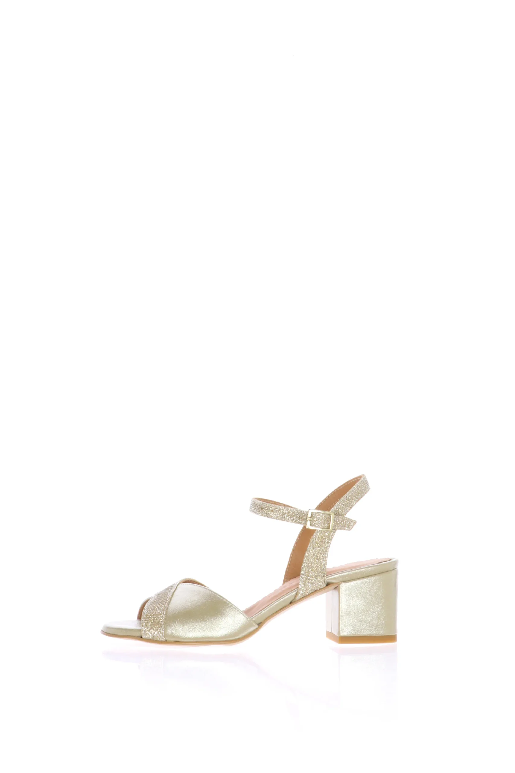 Sandalo in pelle laminata con dettagli in tessuto glitter. Disponibile nei colori argento e oro, dal n 32 al n 44 donna. Un sandalo comodo, che abbraccia bene la pianta del piede, ideale per eventi! Sandra Calzature, qualitร artigianale made in Italy!