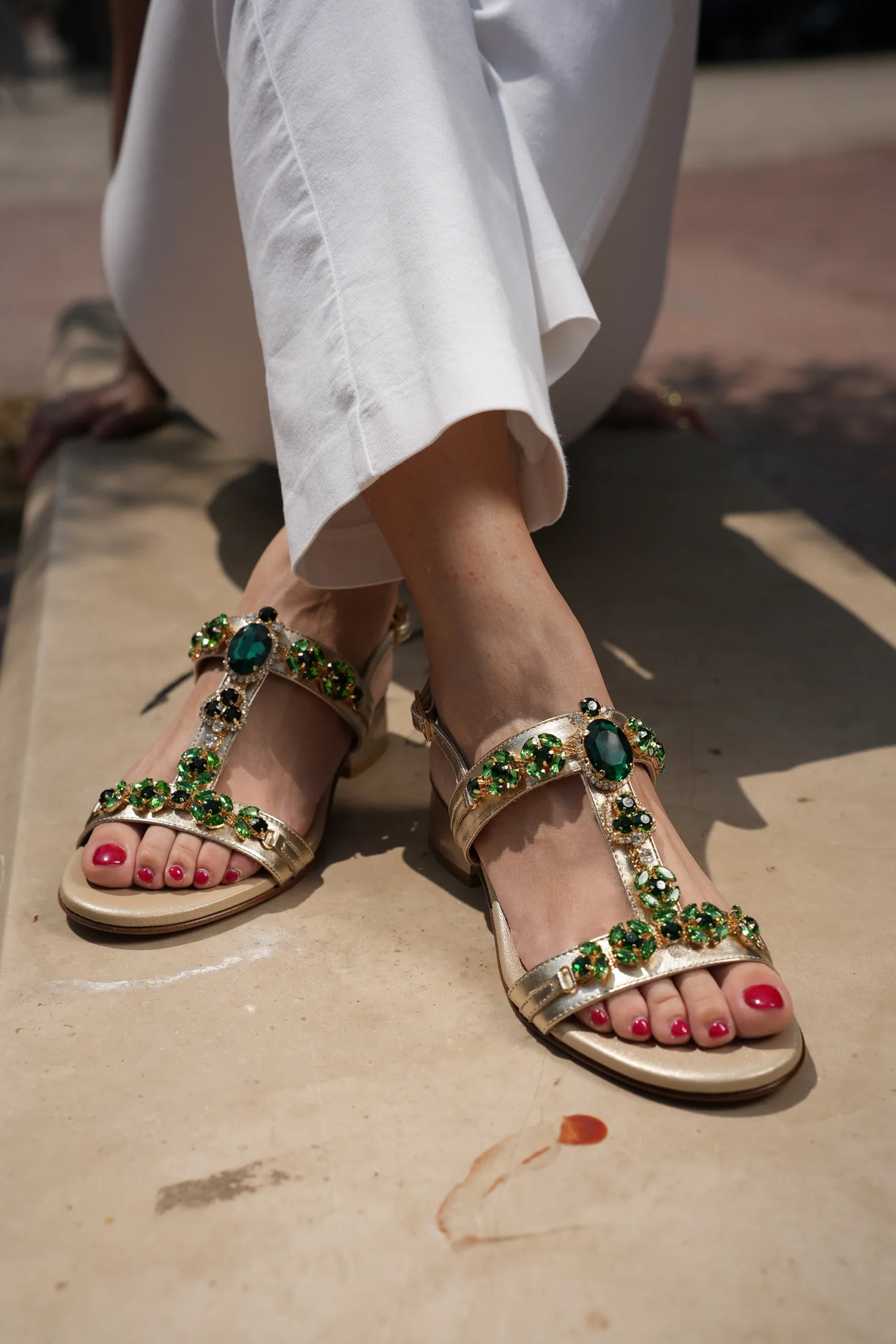 Arricchisci il tuo guardaroba con i sandali Soffice Sogno! Perfetti per la stagione estiva, questi sandali sono realizzati in pelle beige di alta qualitร , garantendo un look elegante e sofisticato. Il design presenta un tacco largo per una maggiore stabilitร e comfort, rendendoli ideali per essere indossati tutto il giorno. La tomaia รจ arricchita da dettagli gioiello colorati e cristalli scintillanti, aggiungendo un tocco di lusso e femminilitร . La chiusura con fibbia regolabile assicura una calzata perfetta, mentre la soletta imbottita offre un comfort ottimale.Perfetti per occasioni speciali o per donare un tocco di eleganza ai tuoi outfit quotidiani, i sandali Soffice Sogno sono un must-have per ogni donna alla moda.