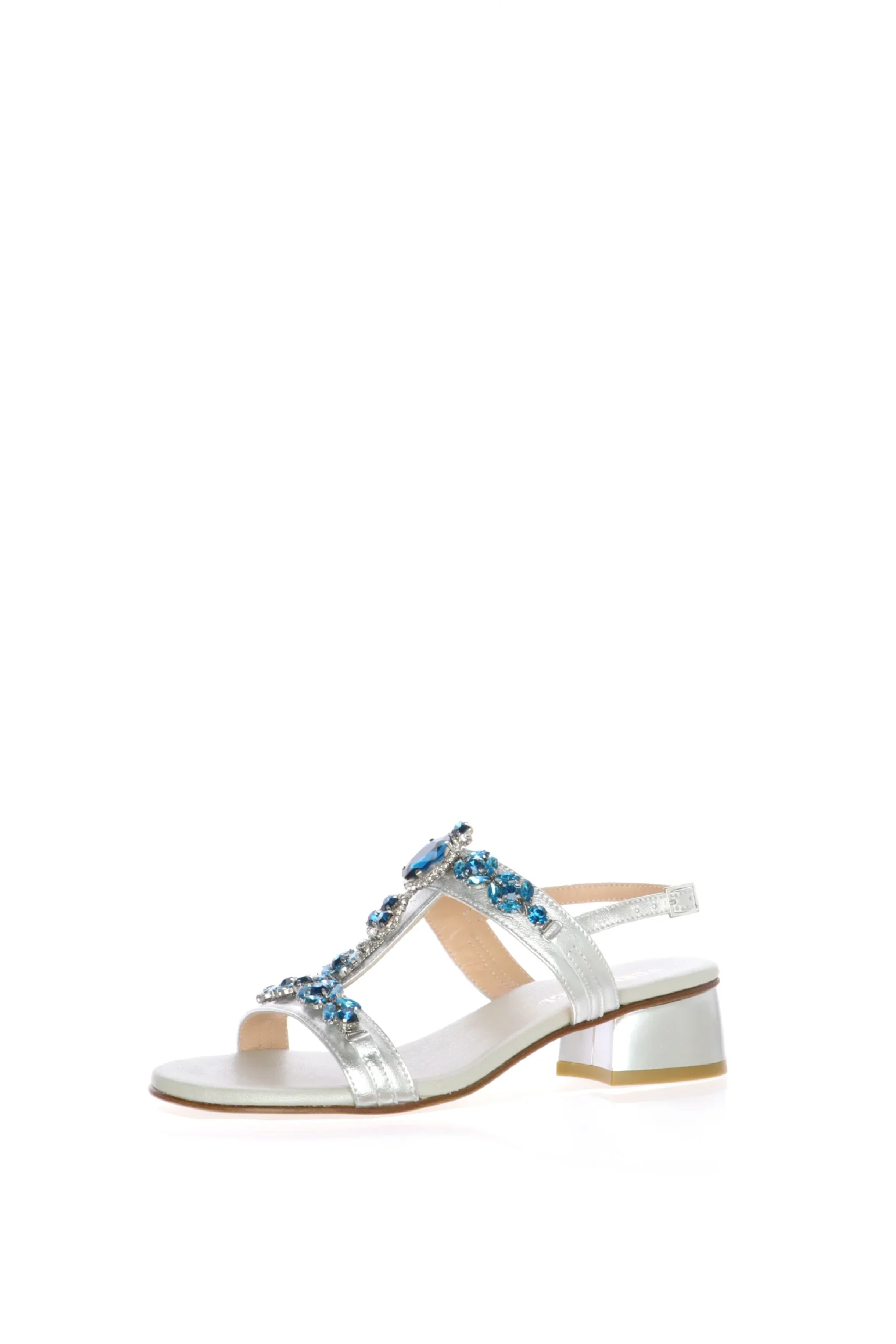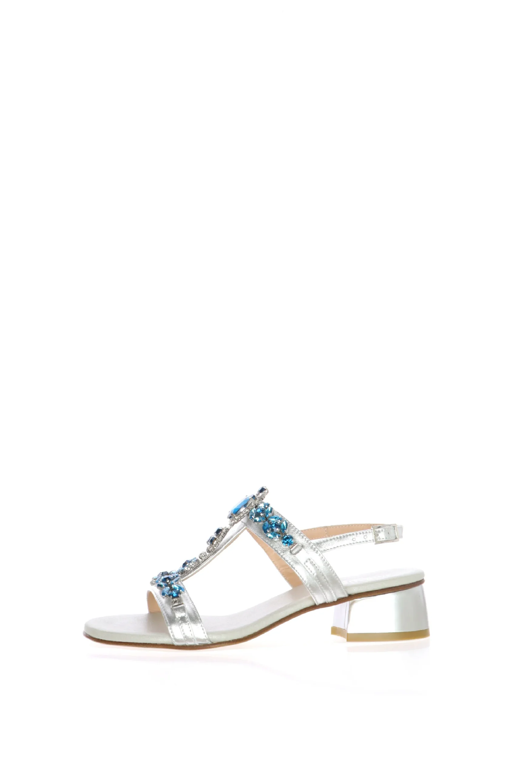 Sandalo in pelle laminato platino e argento con dettagli gioiello Soffice Sogno