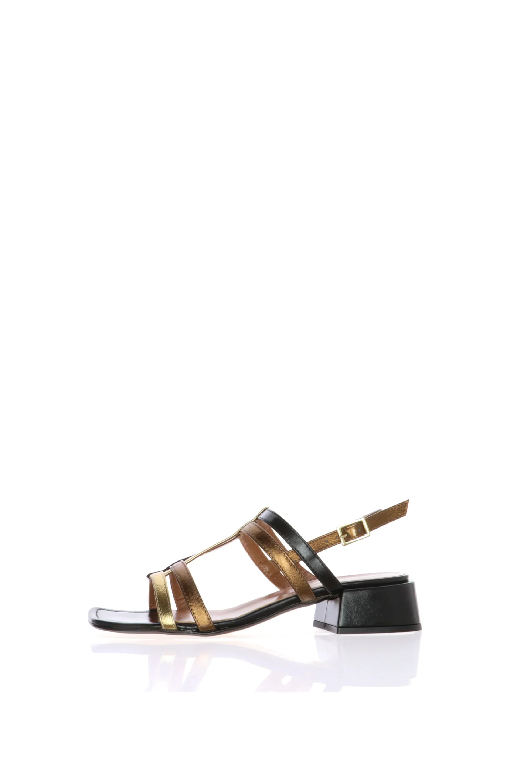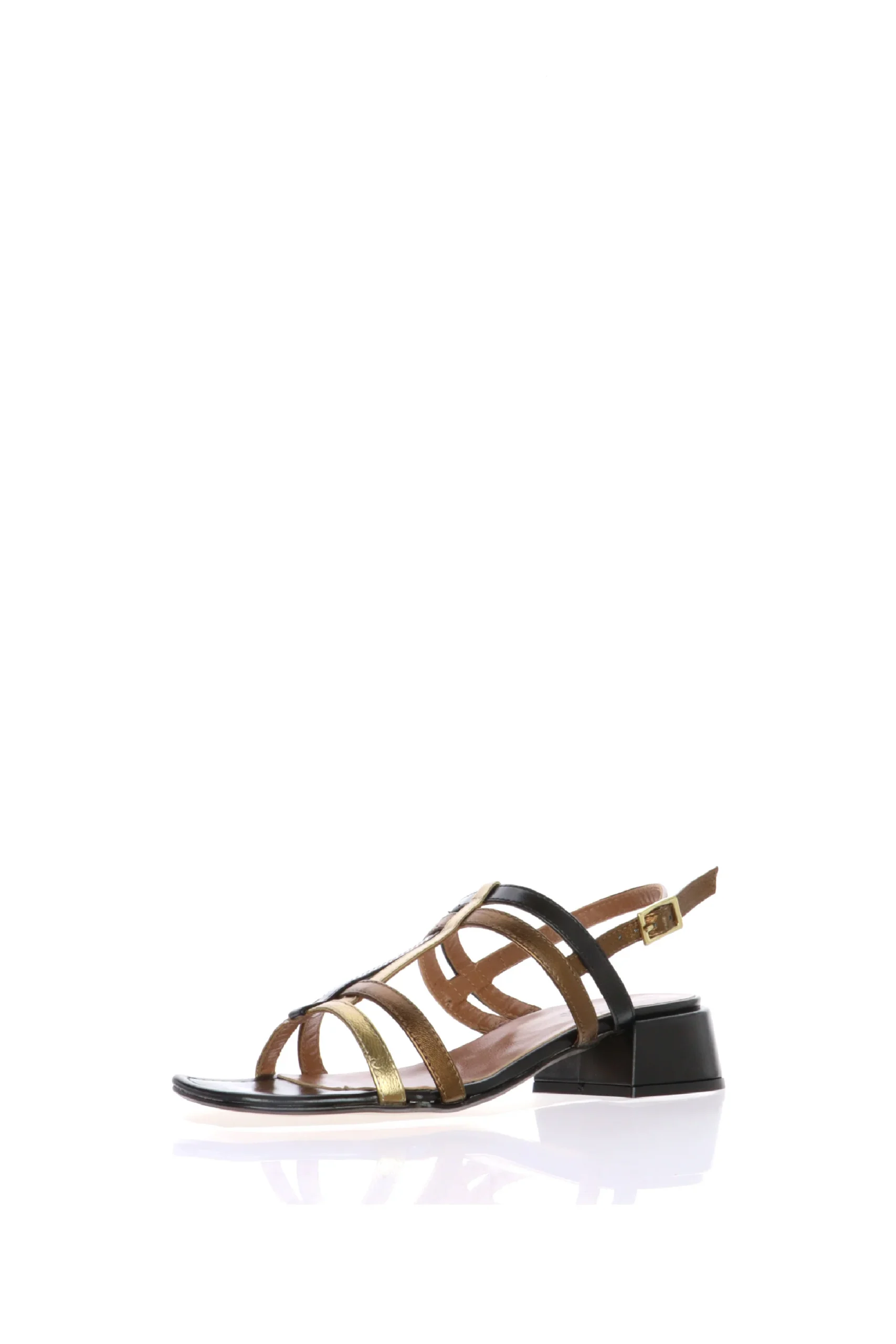 Sandalo in pelle nera e bronzo con tacco basso Cinzia Soft