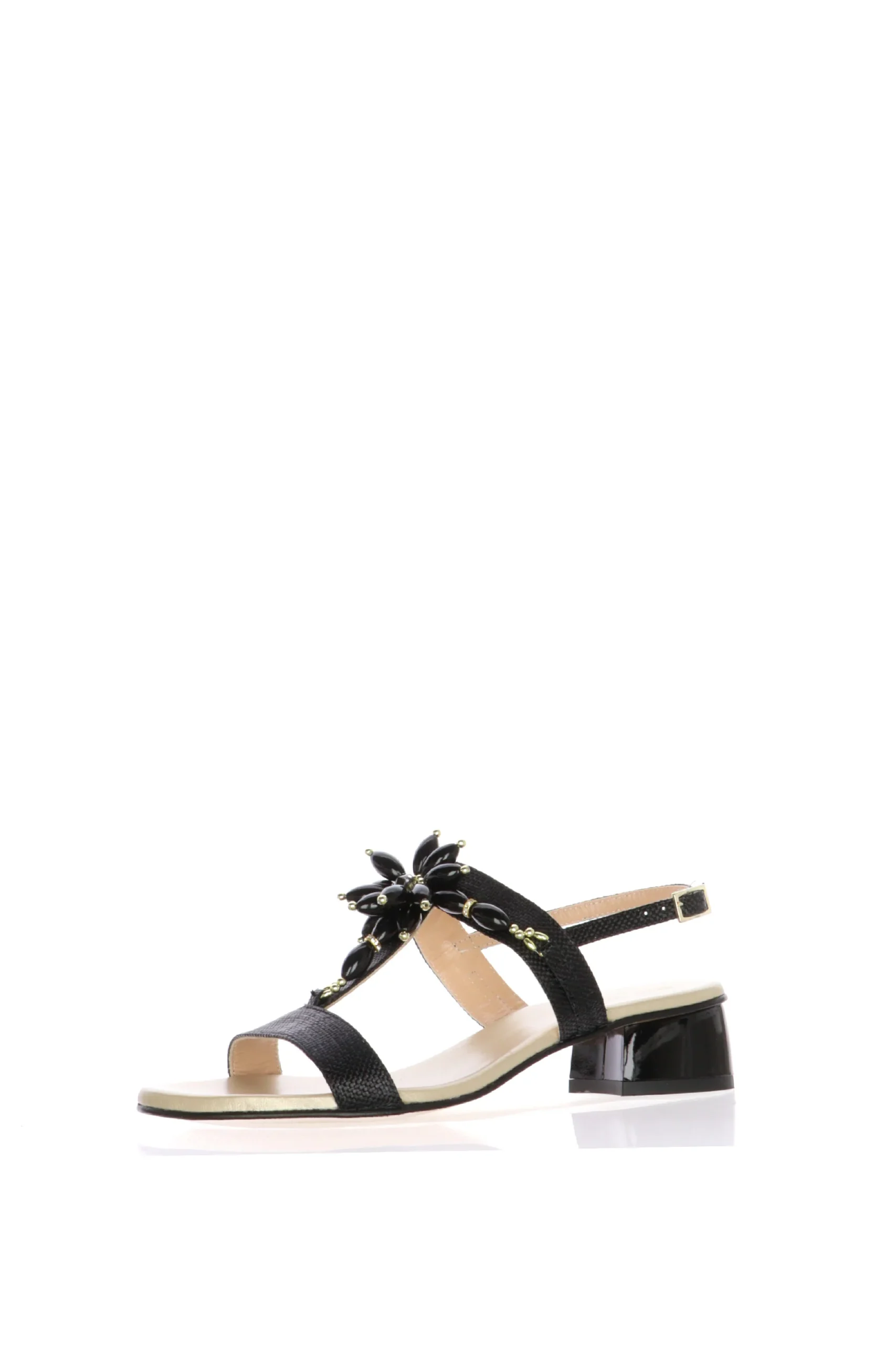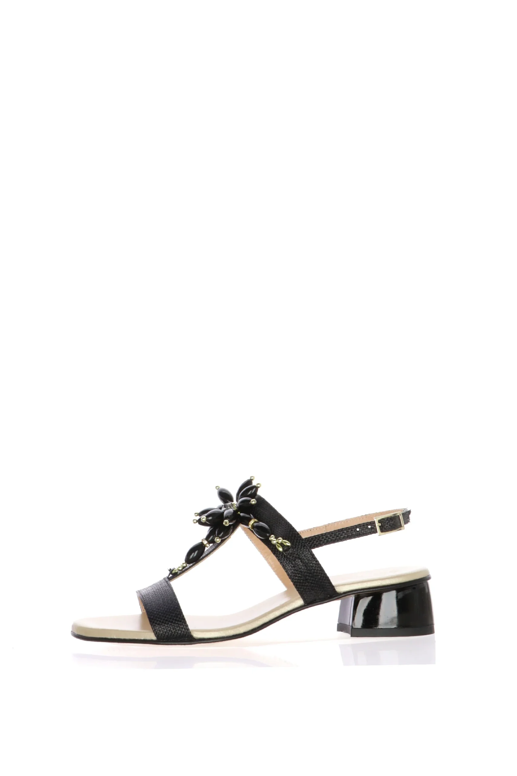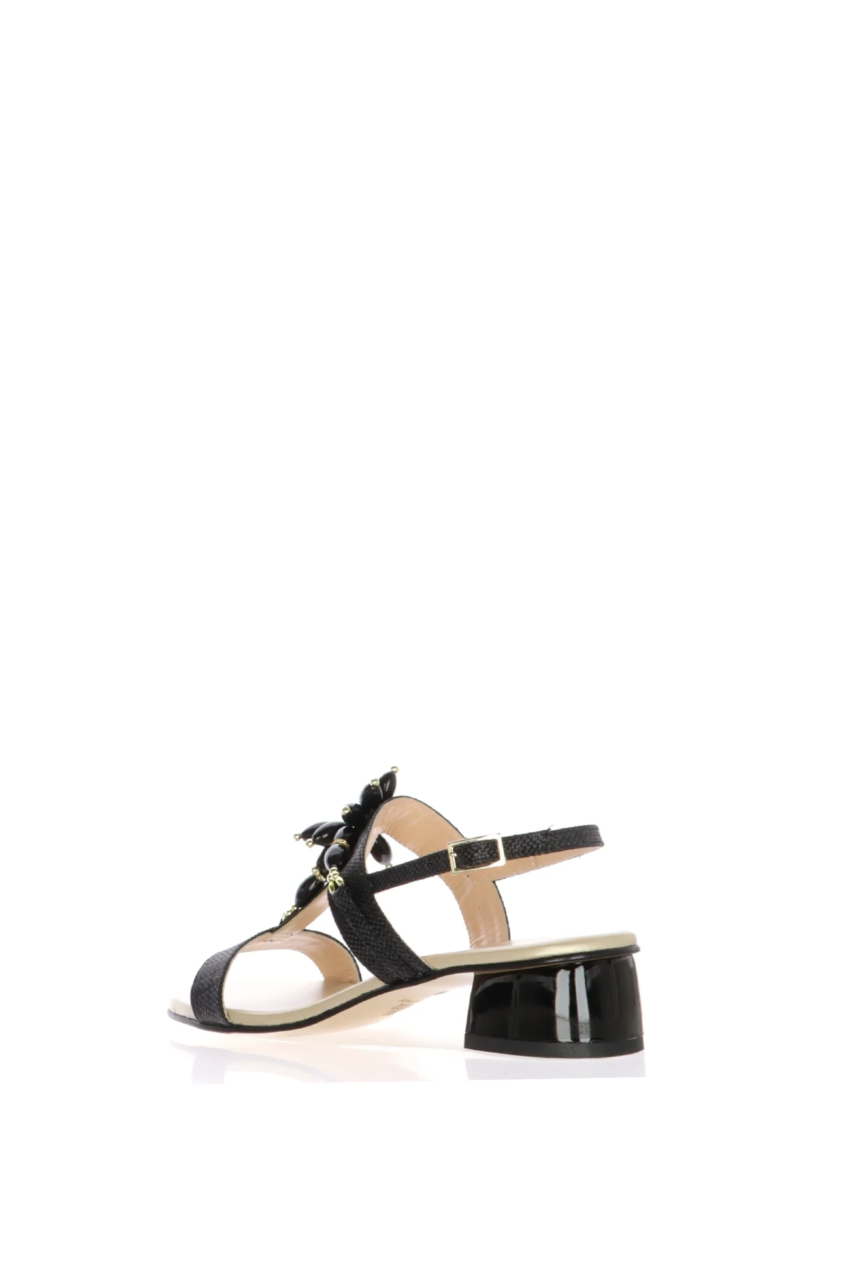 Arricchisci il tuo guardaroba con i sandali Soffice Sogno! Perfetti per la stagione estiva, questi sandali sono realizzati in pelle rafia nera di alta qualitร , garantendo un look elegante e sofisticato. Il design presenta un tacco largo per una maggiore stabilitร e comfort, rendendoli ideali per essere indossati tutto il giorno. La tomaia รจ arricchita da dettagli di pietre nere che compongono un motivo floreale aggiungendo un tocco di lusso e femminilitร . La chiusura con fibbia regolabile assicura una calzata perfetta, mentre la soletta imbottita offre un comfort ottimale.Perfetti per occasioni speciali o per donare un tocco di eleganza ai tuoi outfit quotidiani, i sandali Soffice Sogno sono un must-have per ogni donna alla moda.