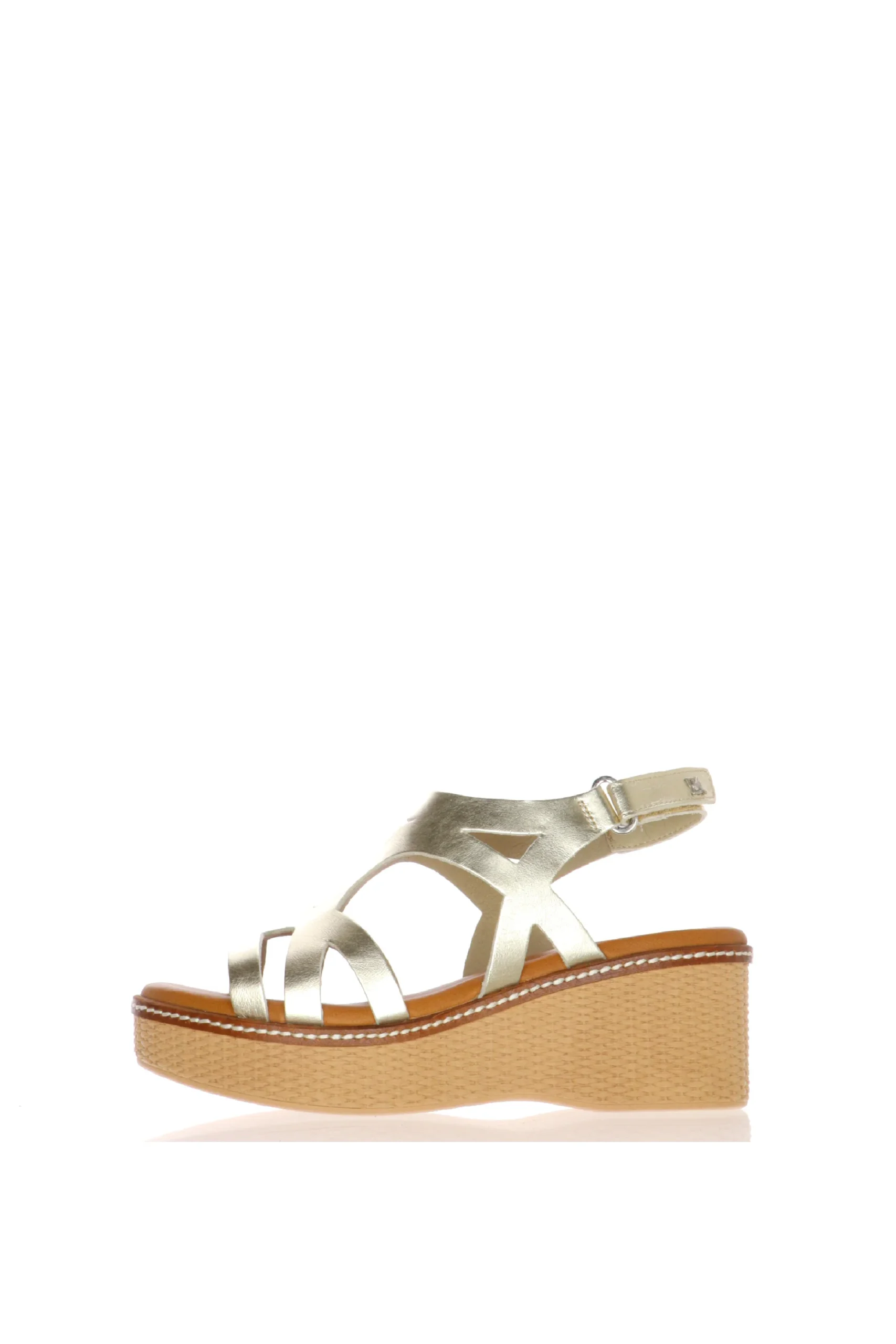 Sandalo in pelle sportivo beige e oro con zeppa media Dorking