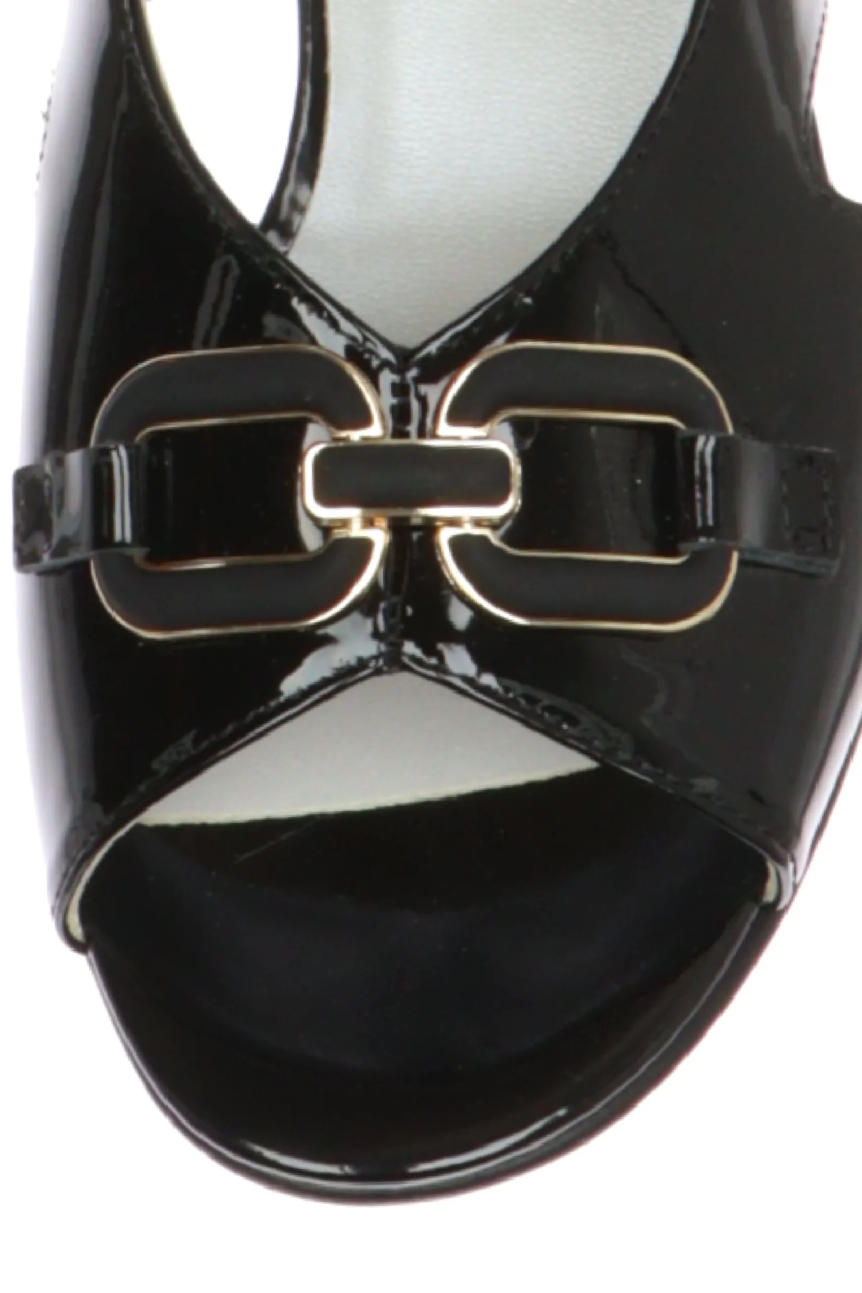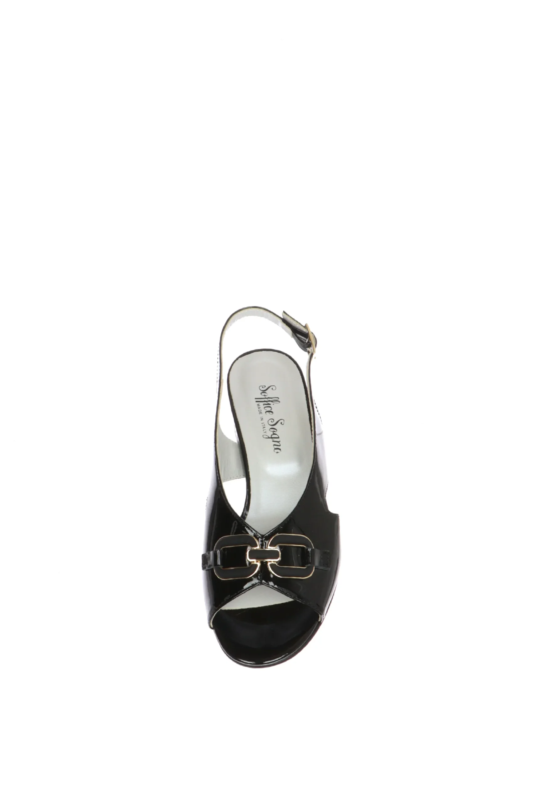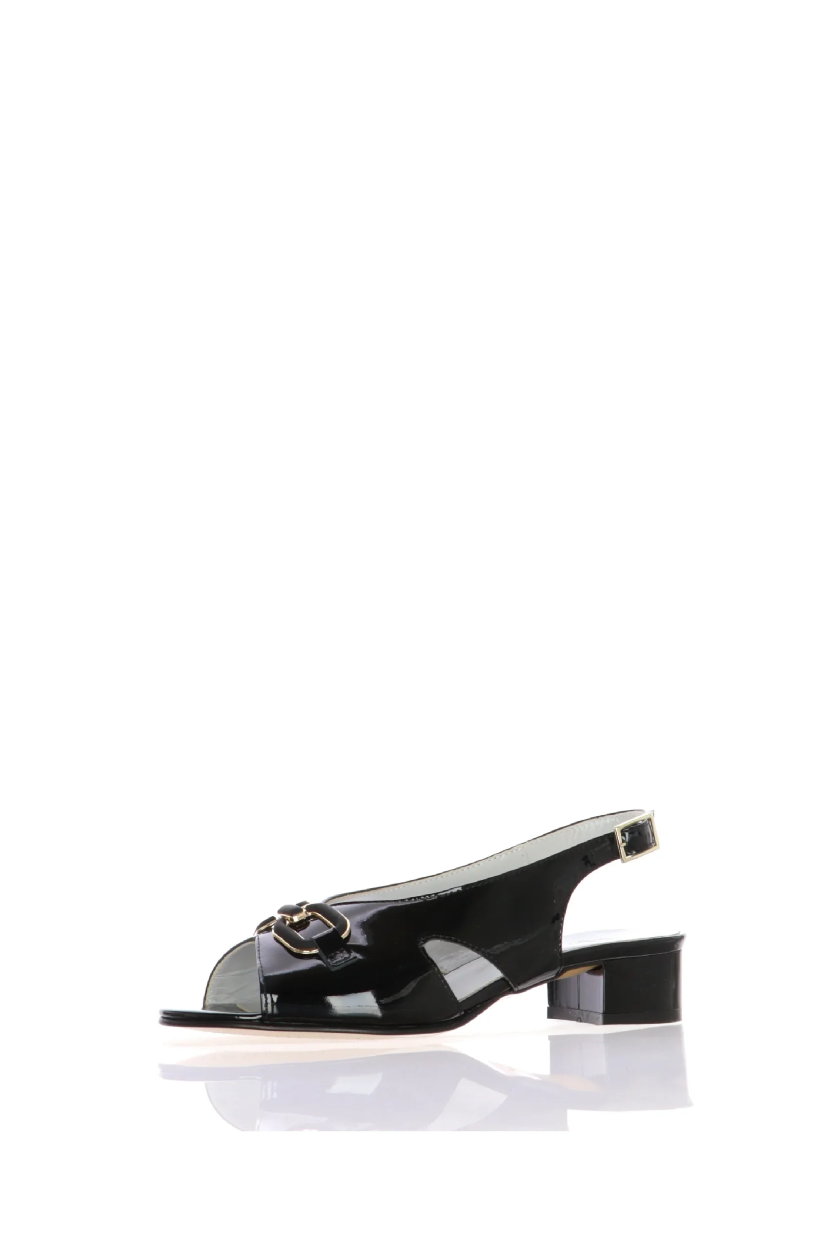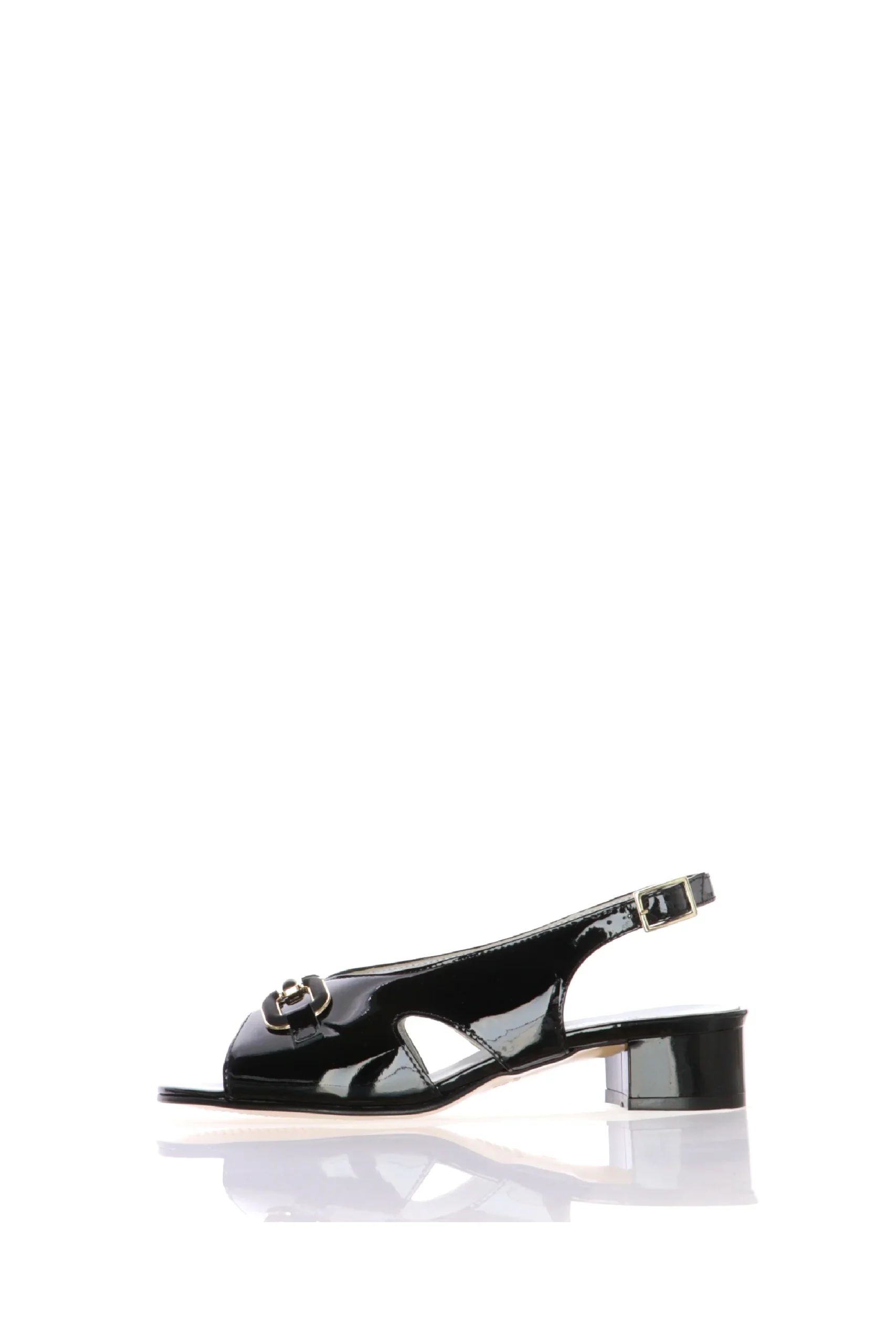 Sandalo in vernice nero con catena tacco basso Soffice Sogno