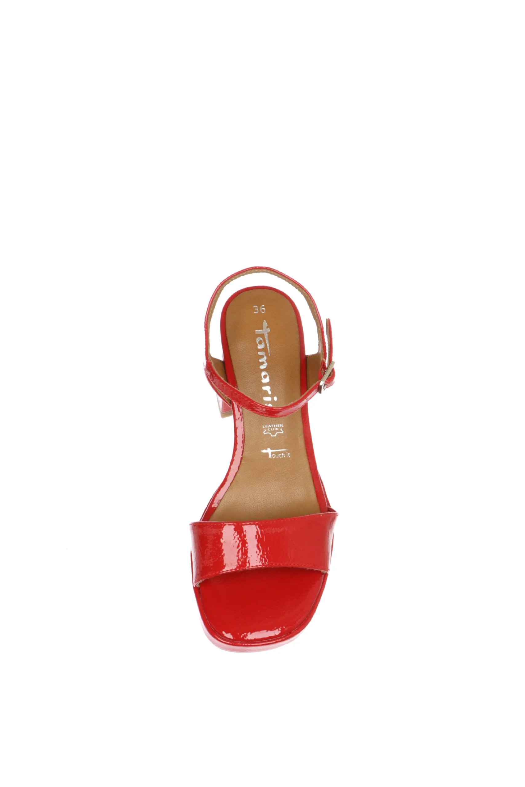 Recensisci per primo “Sandalo in vernice rosso con tacco alto e plateau Tamaris”