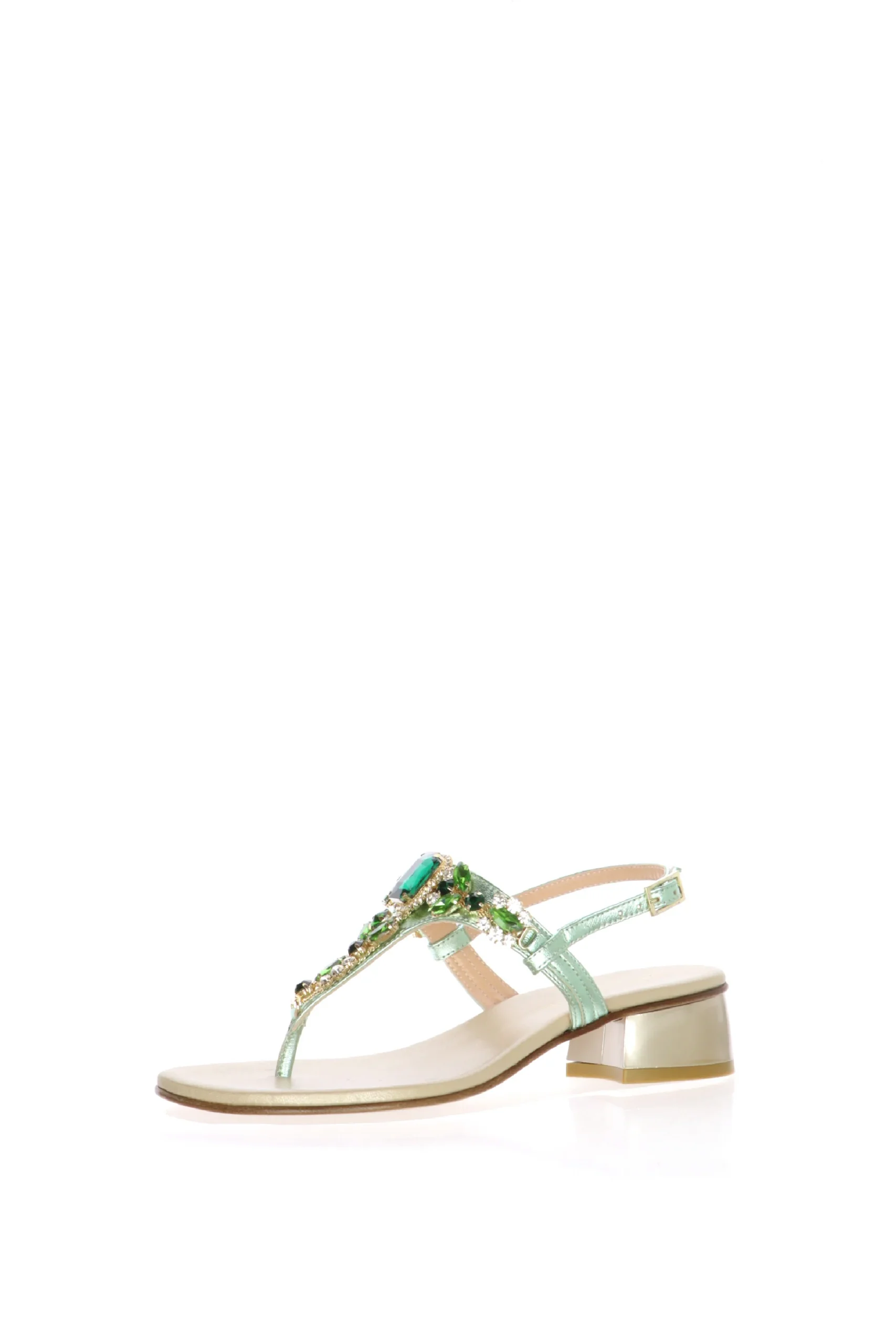 Sandalo infradito in pelle verde e cipira con dettagli gioiello Soffice Sogno