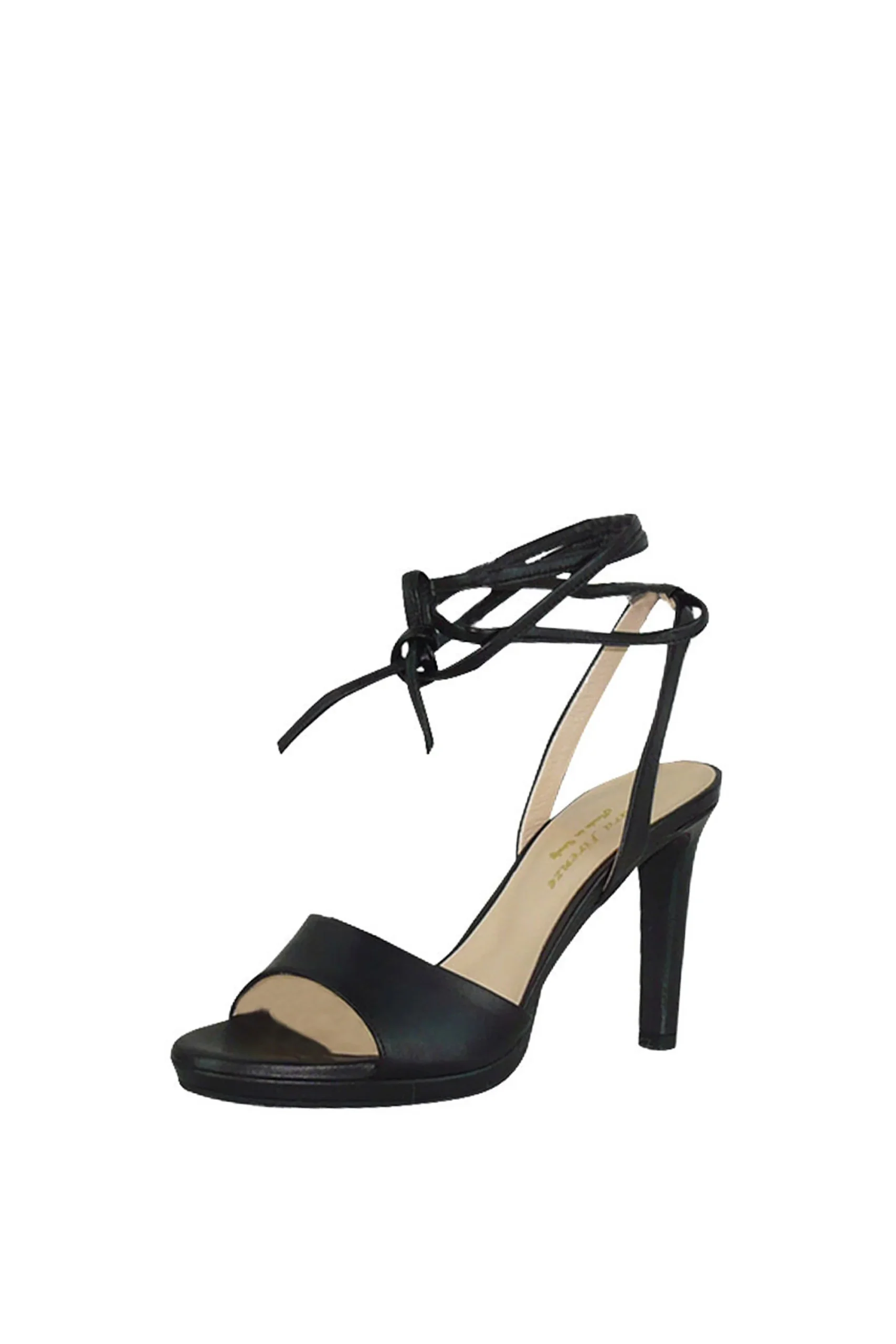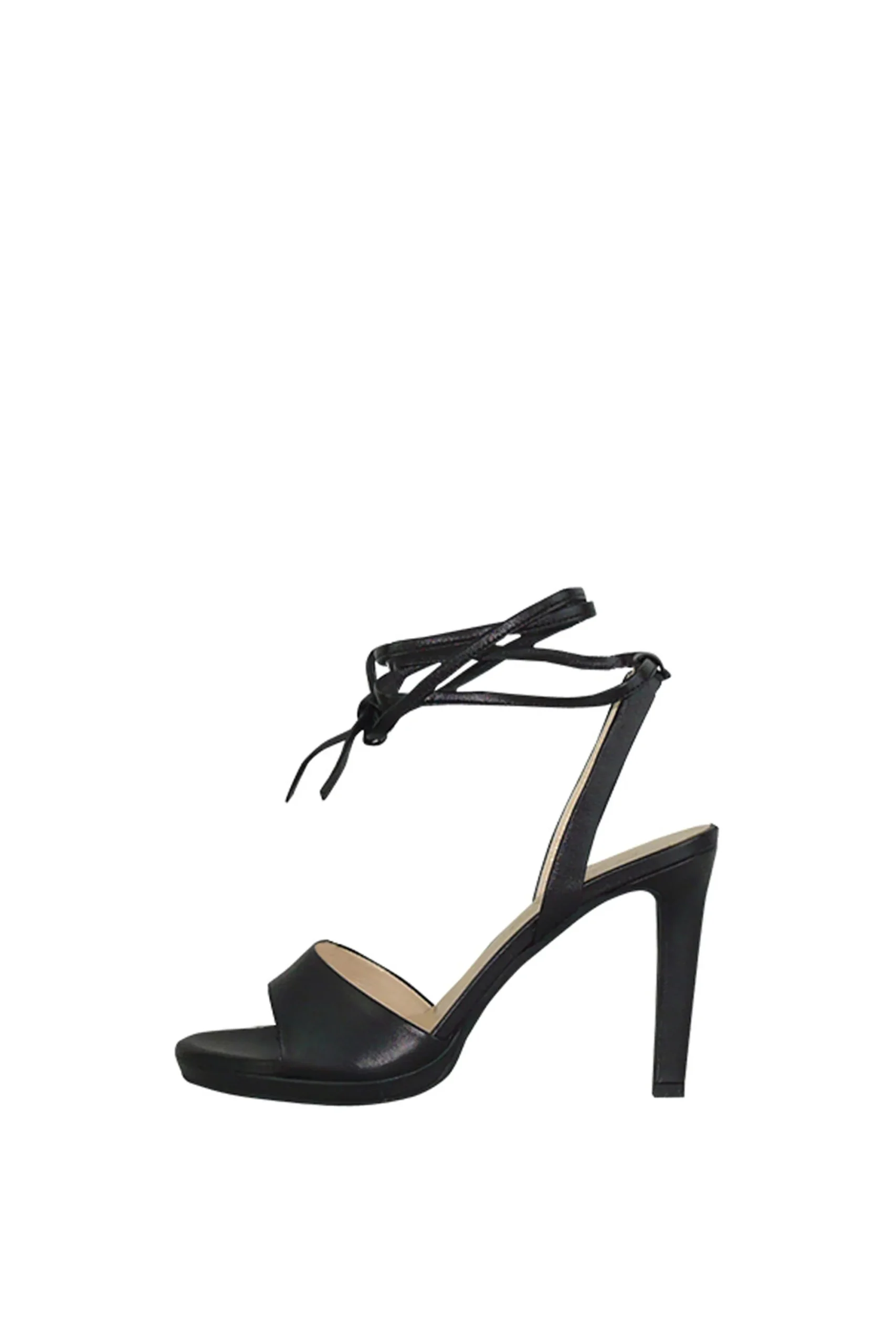 Sandalo nero in pelle con laccio a caviglia Tiqu