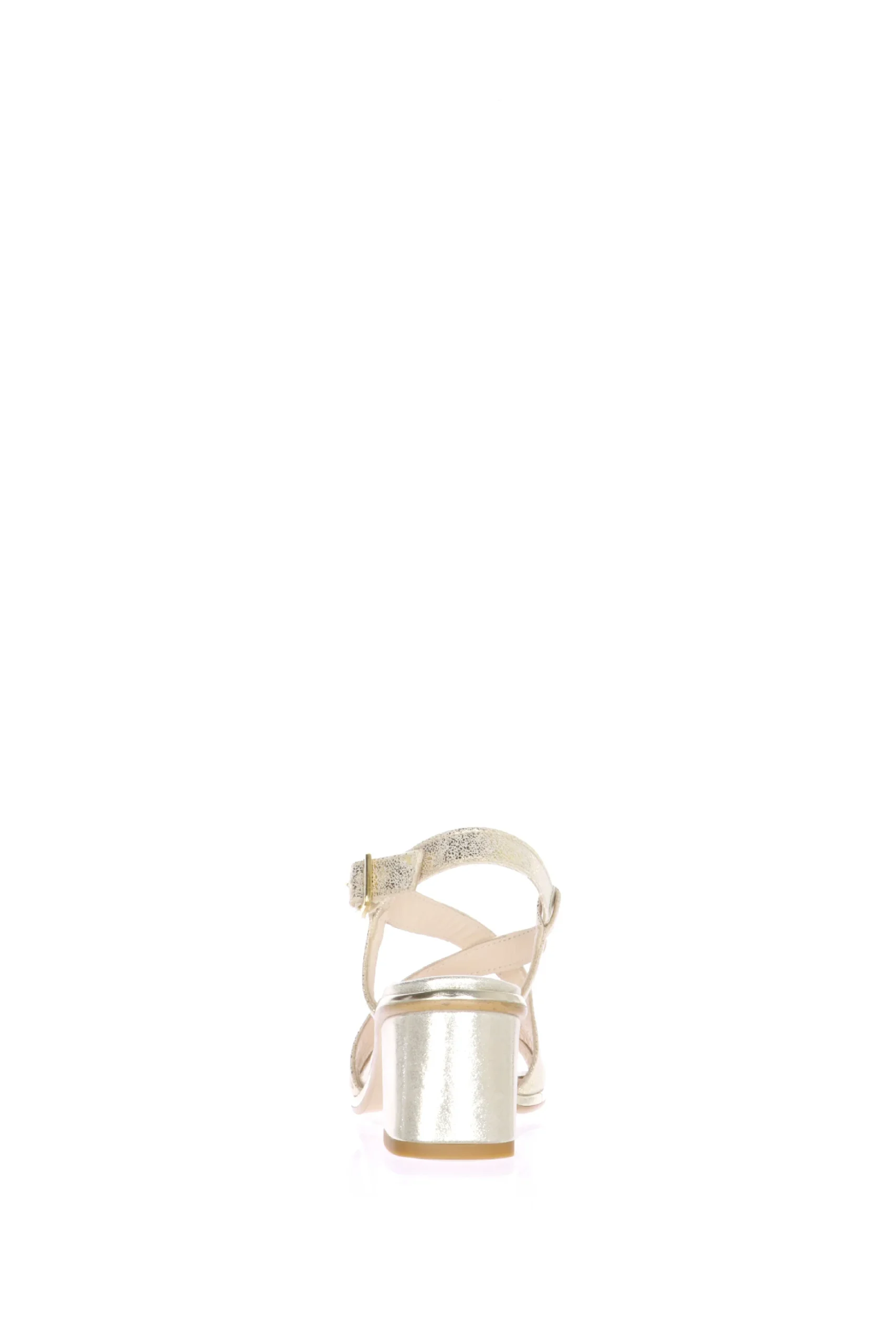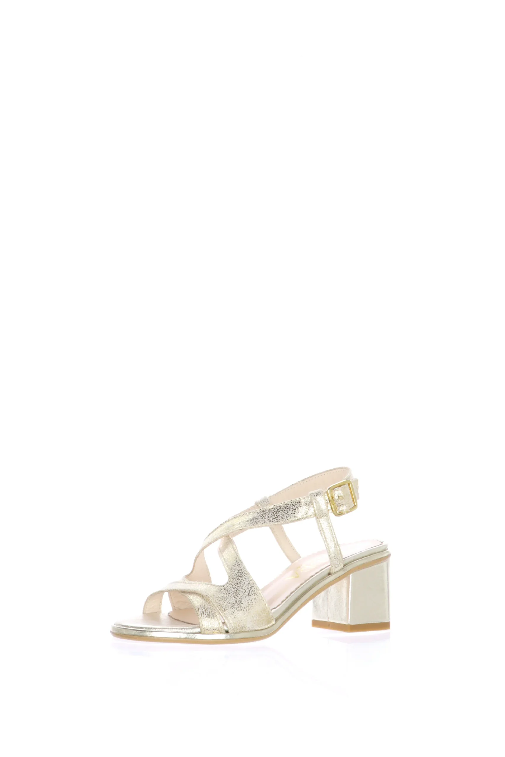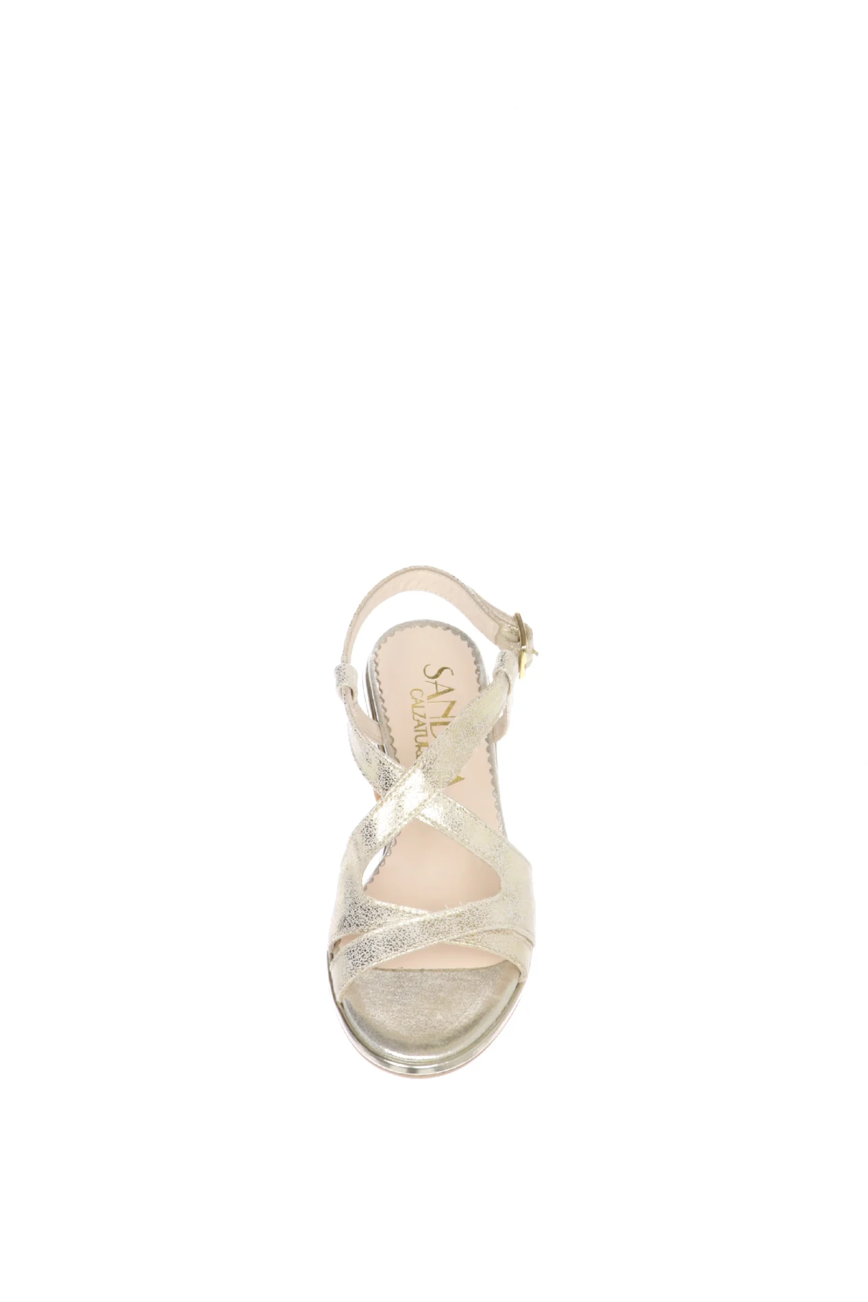 Sandalo platino o argento in pelle laminata tacco 5 Sandra Calzature 474t5sp