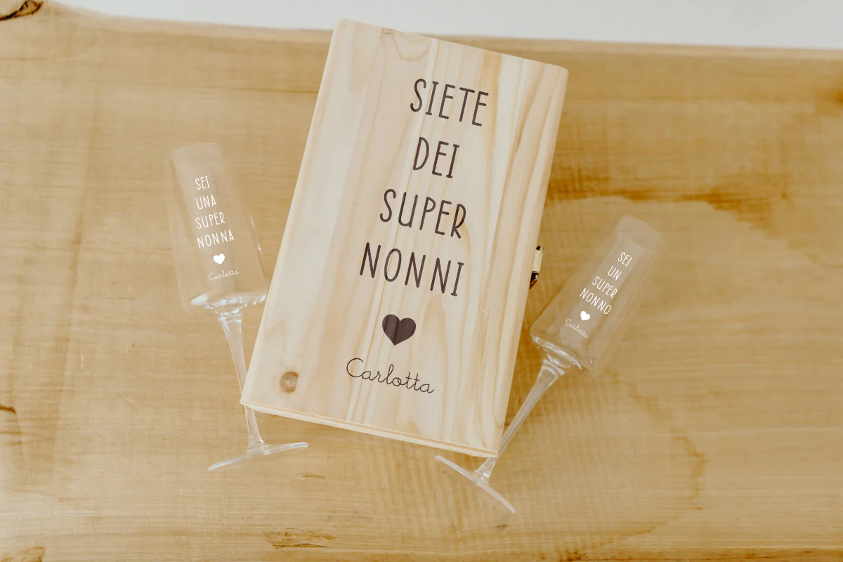 Scatola in legno + Bicchieri Festa dei Nonni
