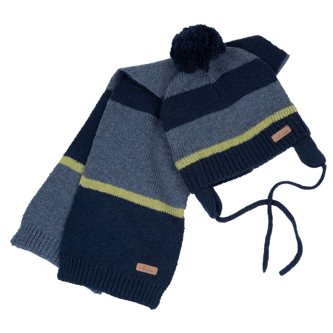 Set di cappello e sciarpa in maglia di lana mélange blu, con fodera per cappello in cotone.