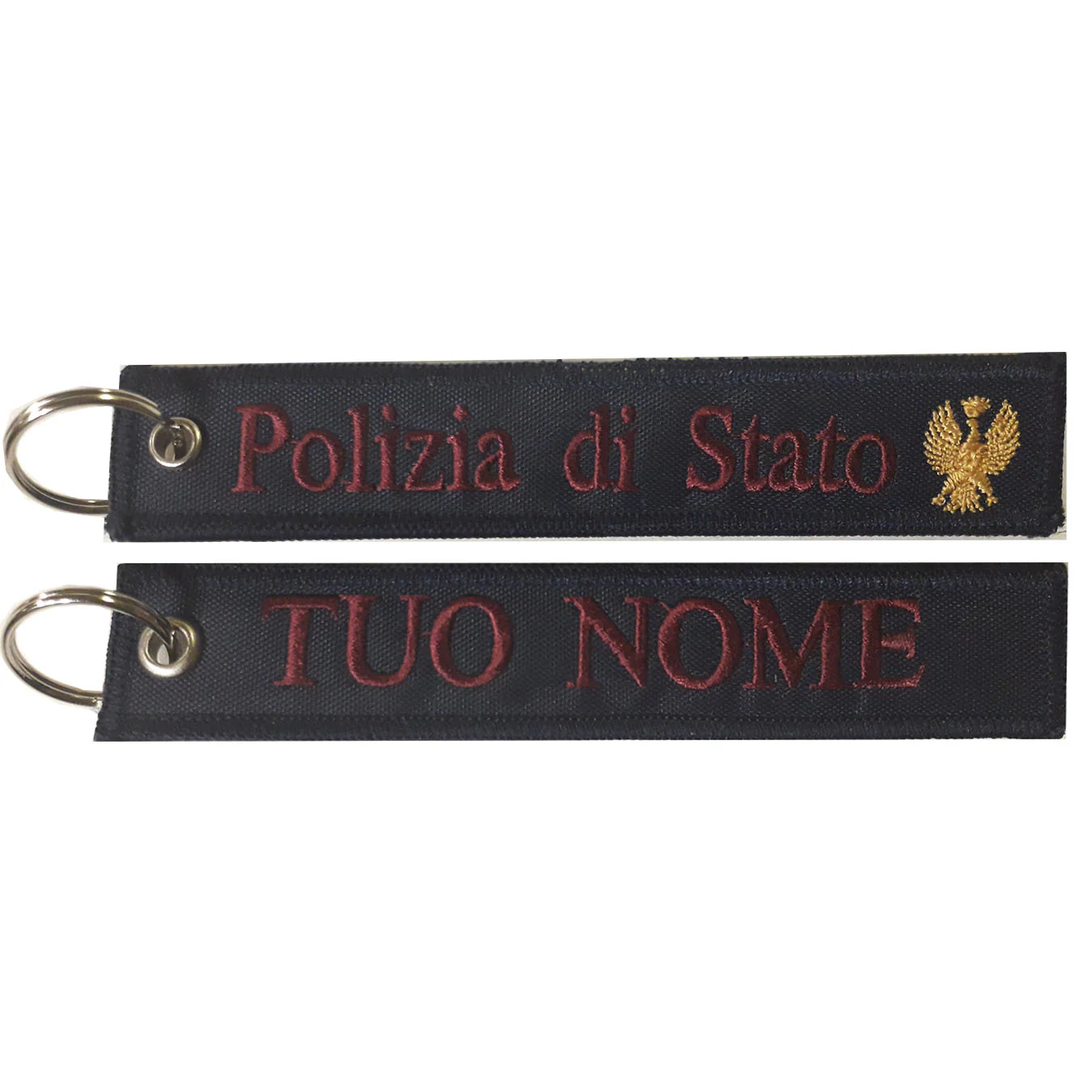 Portachiavi Polizia di Stato con Aquila e scritta personalizzato ricamato su ambo i lati e rifinito con macchina bordatrice.