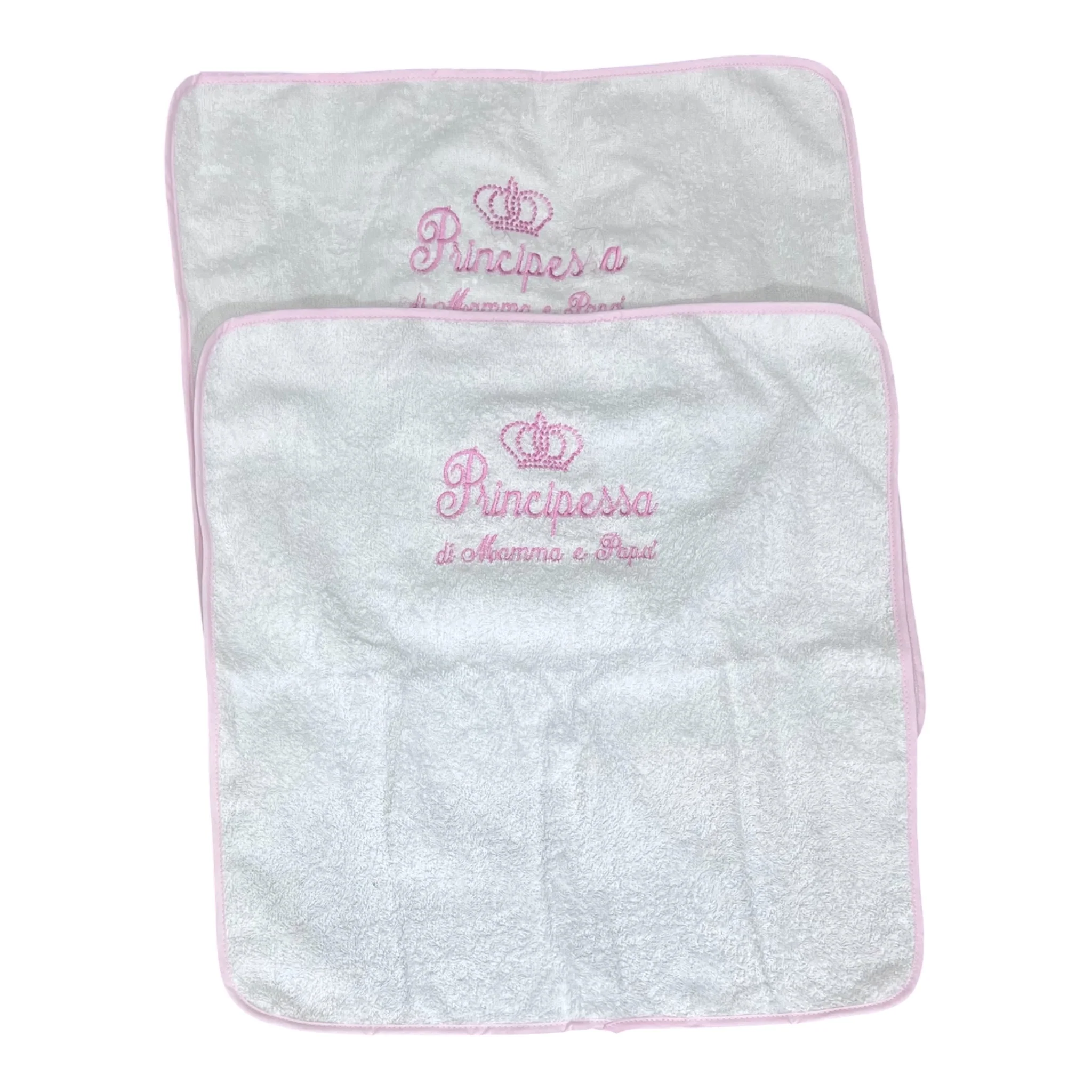 Set 2 Quadrati in Spugna Ricamati Principino/Principessa