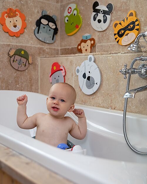 La superficie in schiuma leggera e morbida garantisce un tocco delicato e sicuro al contatto con la pelle. Una volta assemblati, i pezzi possono essere attaccati alle piastrelle della vasca o alle pareti del bagno, trasformando lo spazio in un ambiente di gioco interattivo. Il kit include tre soggetti differenti, offrendo varietà e stimolo creativo durante le sessioni in acqua.