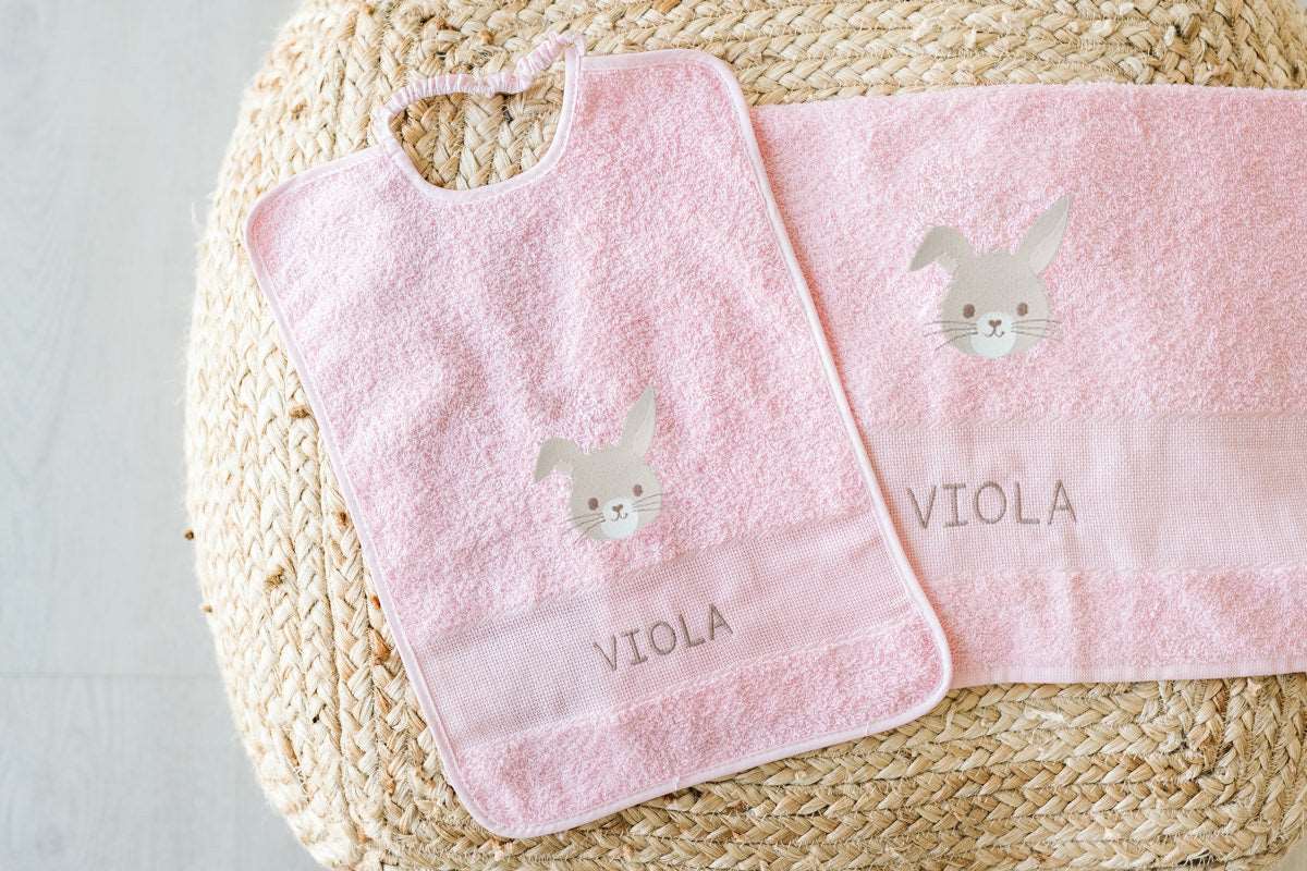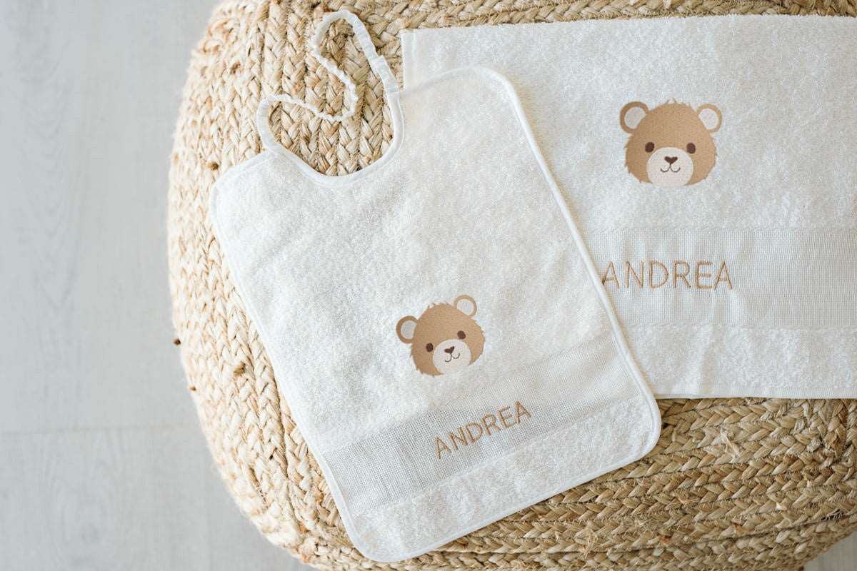 Set ricamato bavaglino + asciugamano