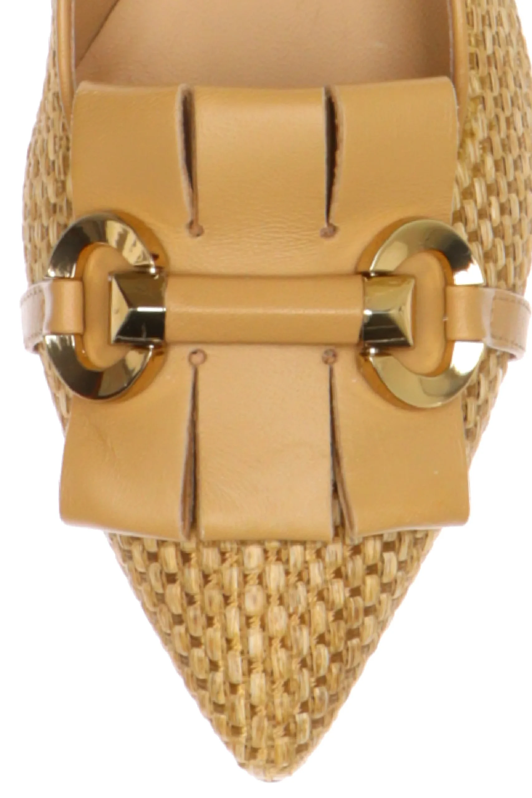 Design Accattivante: Motivo intrecciato in elegante tonalitร beige e decorazione punta con fiocco e dettaglio metallico dorato.