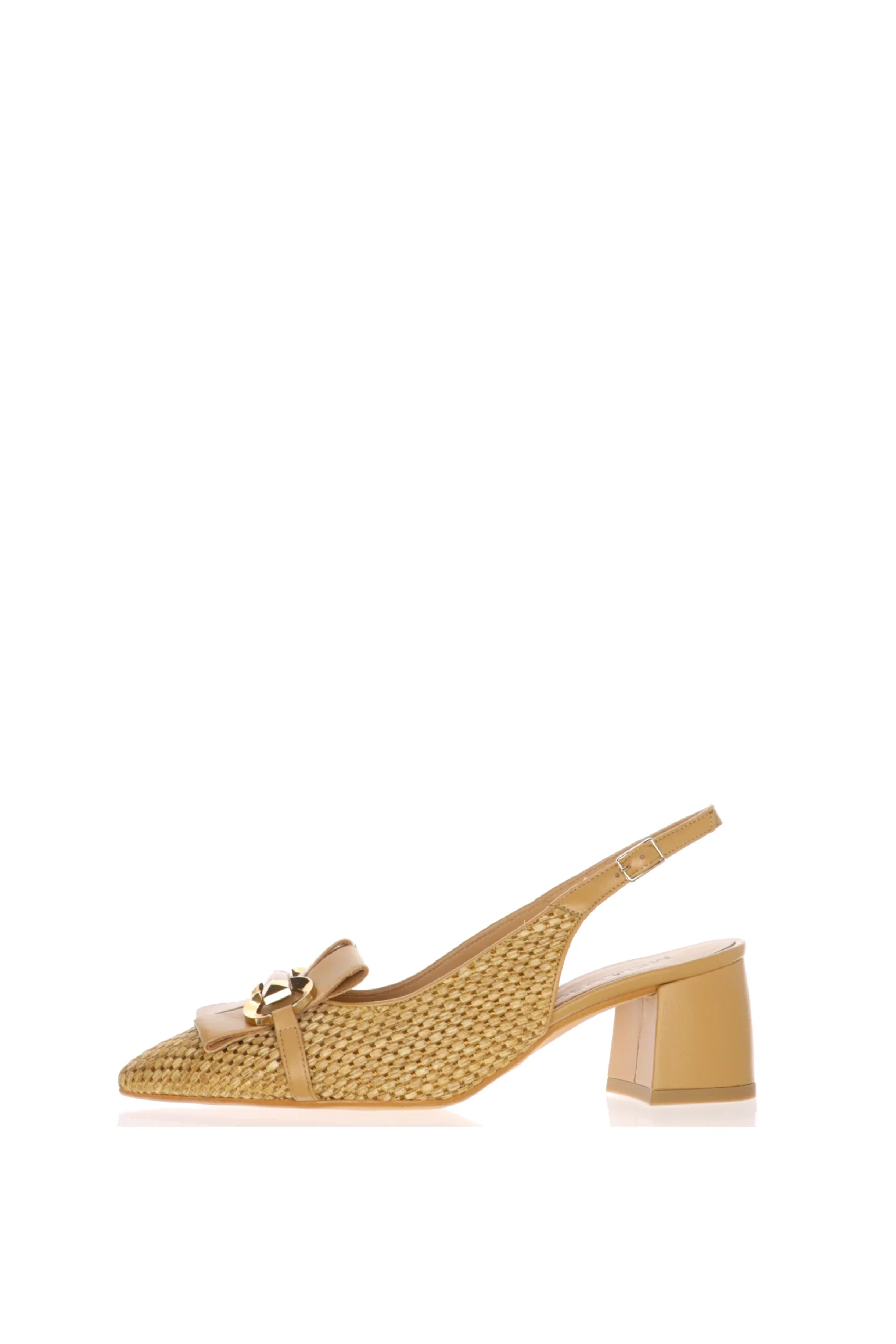 Il dettaglio distintivo di questo modello รจ sicuramente la decorazione sulla punta: un delicato fiocco, impreziosito da un raffinato elemento metallico dorato, che aggiunge un tocco di glamour senza risultare eccessivo. La chiusura a cinturino regolabile garantisce una vestibilitร perfetta per ogni forma del piede, mentre il tacco medio offre la giusta elevazione per un look moderno e dinamico, senza rinunciare a stabilitร e comfort. La suola interna imbottita, oltre a offrire un sostegno extra, permette di indossare la scarpa tutto il giorno, perfetta per ogni occasione โ dal meeting in ufficio allโaperitivo serale.