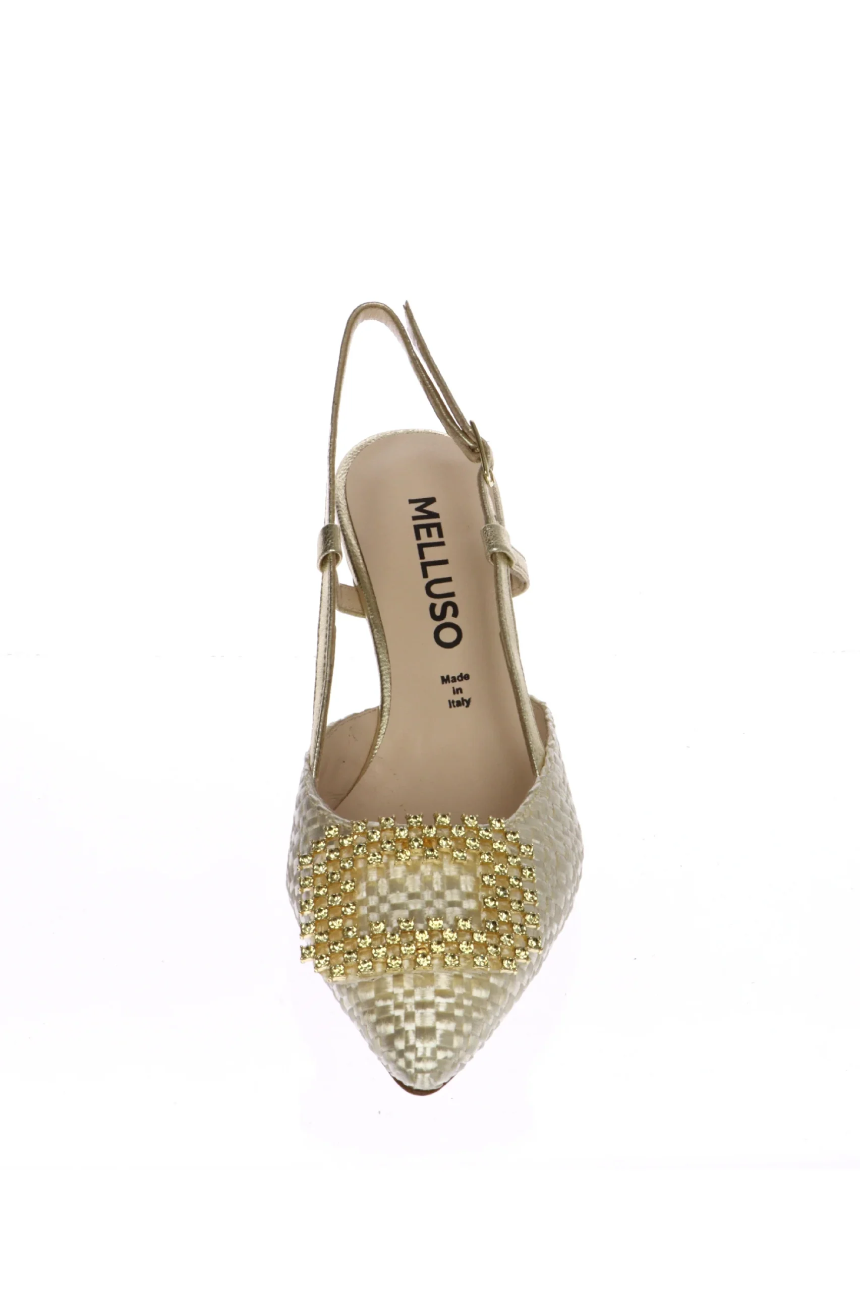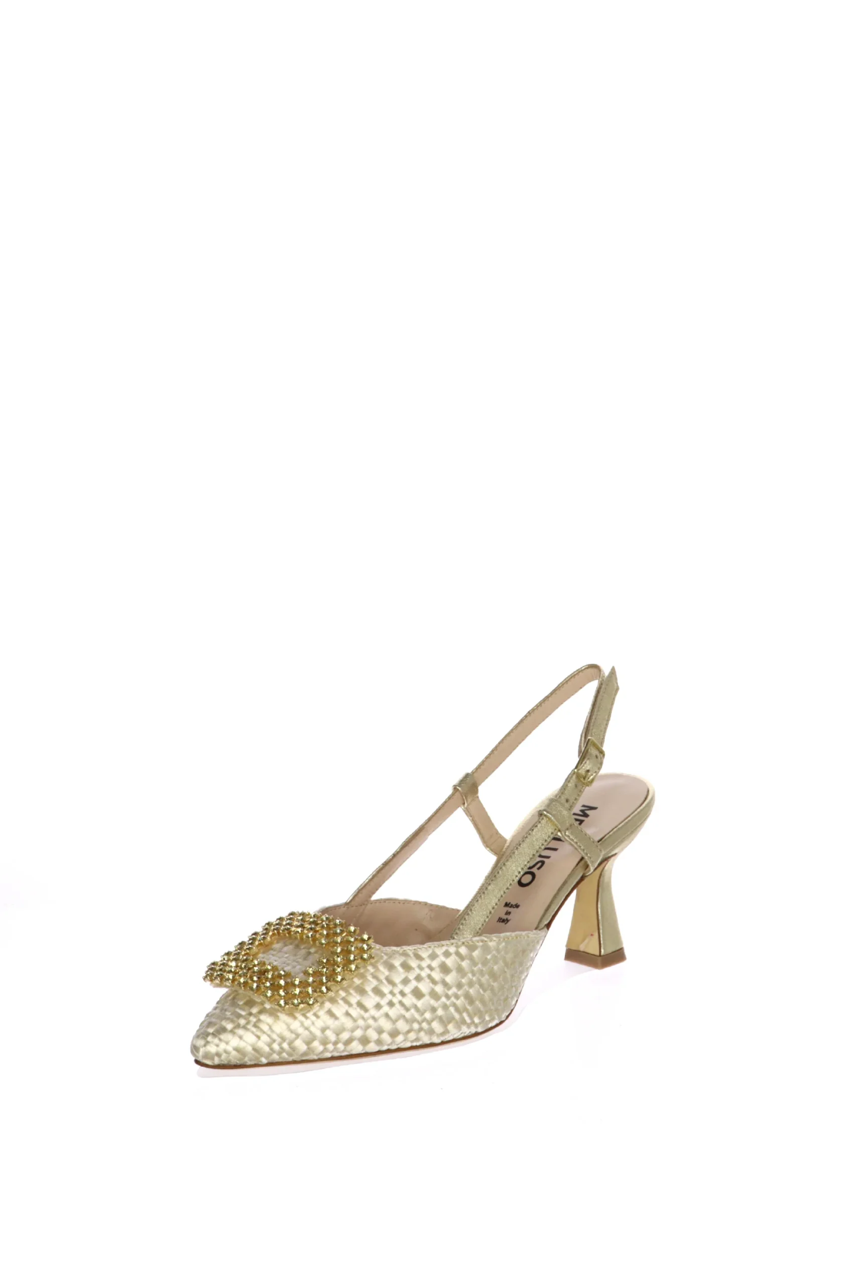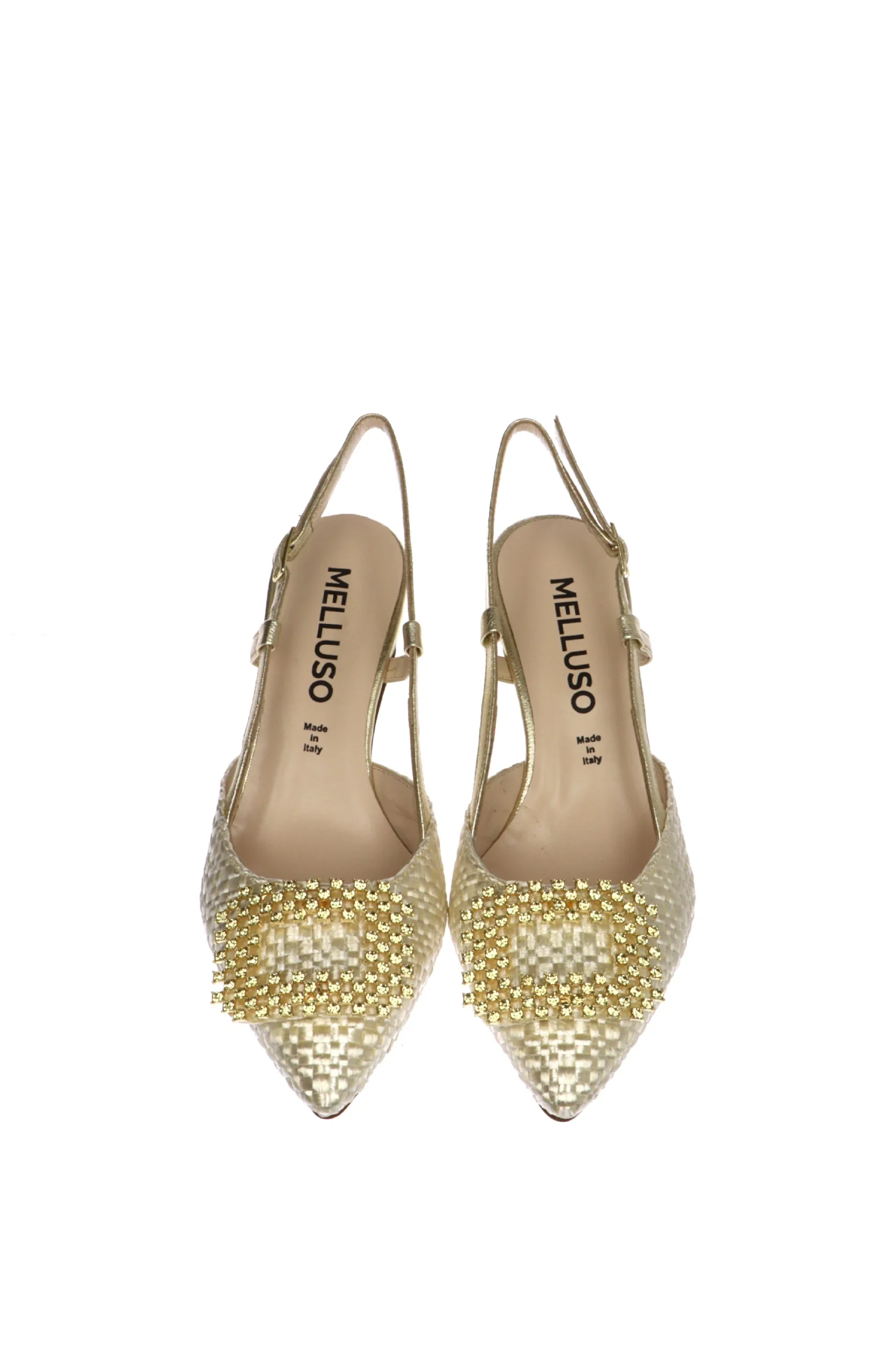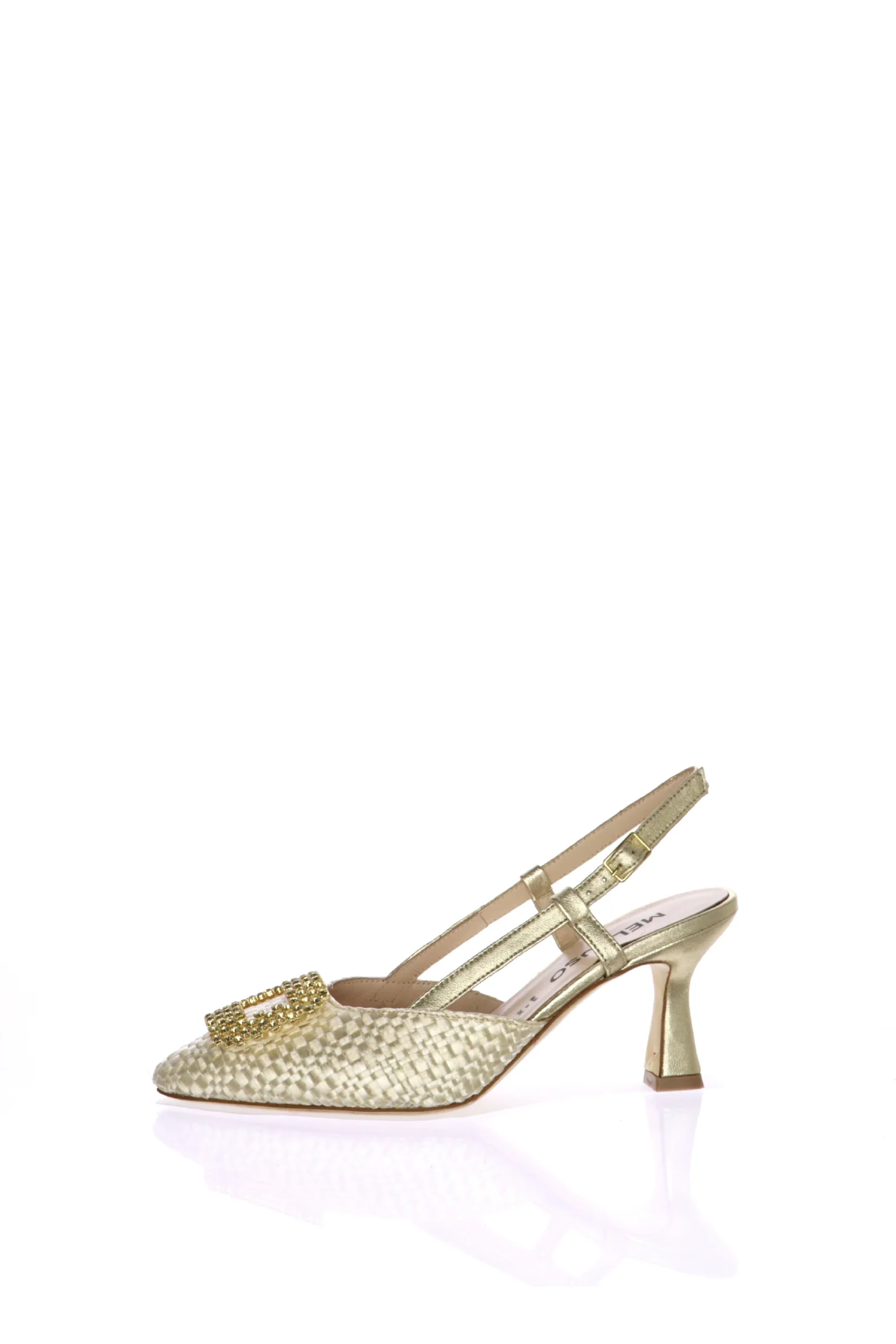Slingback in tessuto intrecciato con gioiello Melluso