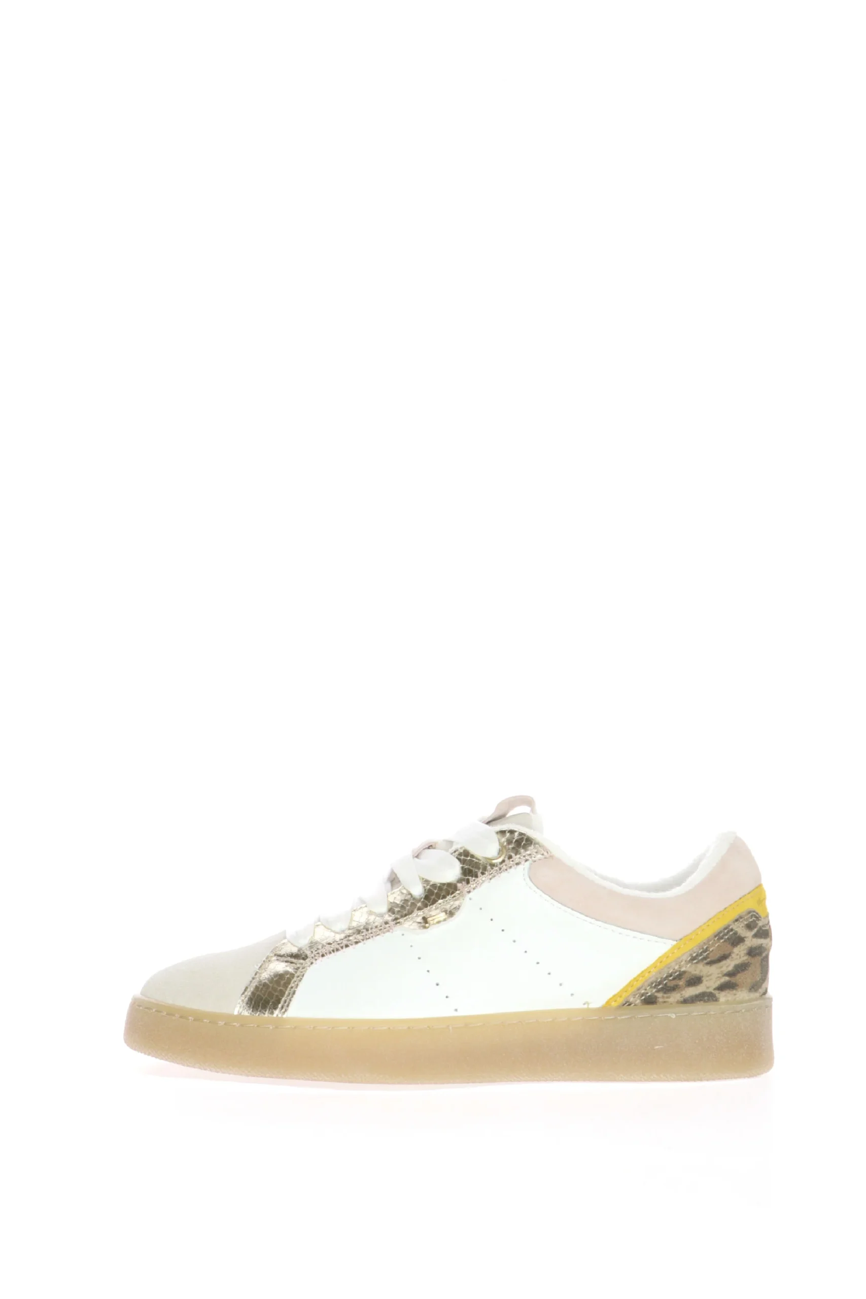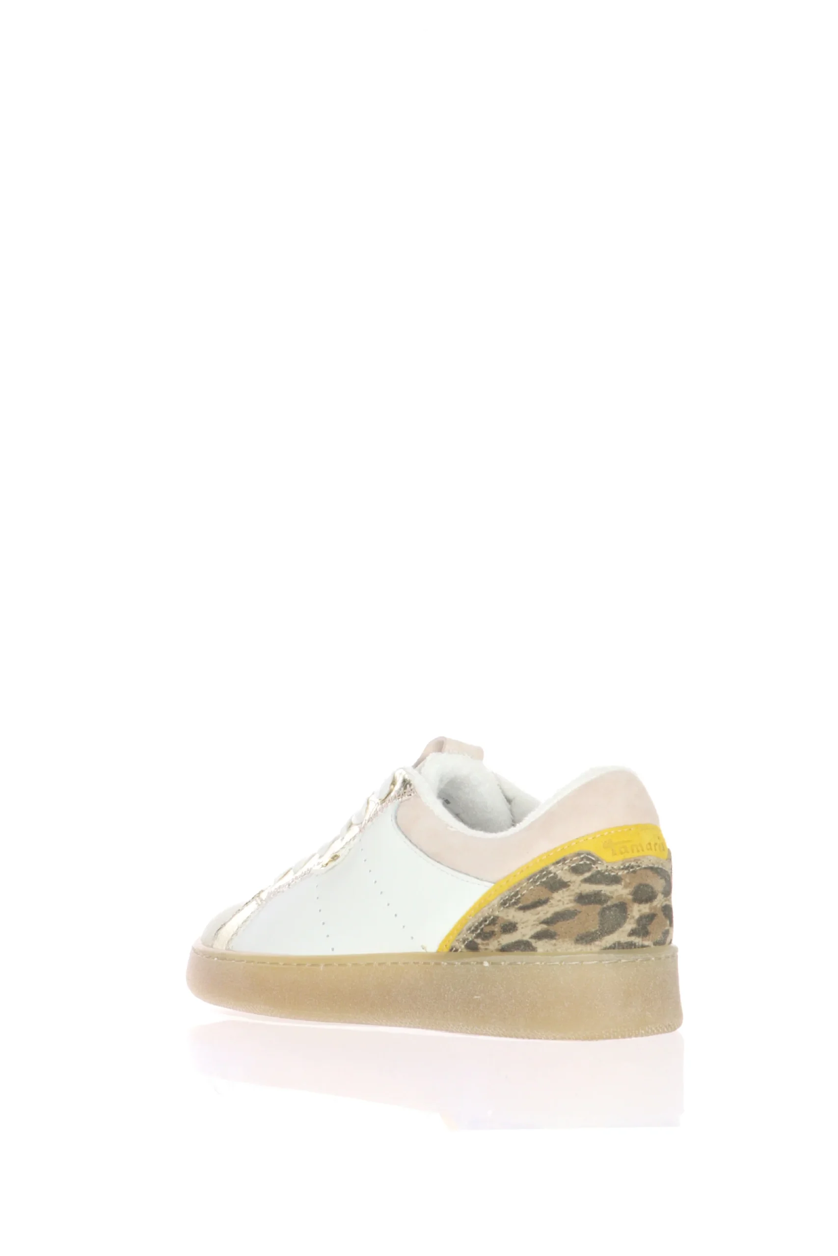 Scopri le sneakers Tamaris, il perfetto mix di comfort e moda. Queste sneakers sono realizzate con pelle bianca di alta qualitร , arricchite da dettagli in pelle scamosciata beige e inserti in pelle metallizzata dorata. Il motivo animalier in tonalitร giallo e marrone sulla parte posteriore conferisce un tocco audace e trendy. La suola in gomma trasparente offre un’ottima aderenza e comfort per tutta la giornata. I lacci bianchi completano il design, garantendo una calzata sicura e regolabile. Ideali per chi cerca uno stile unico e alla moda senza rinunciare al comfort.