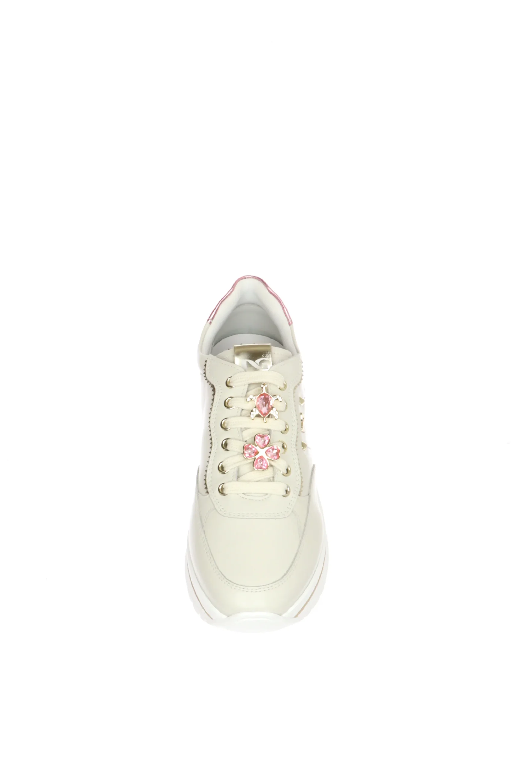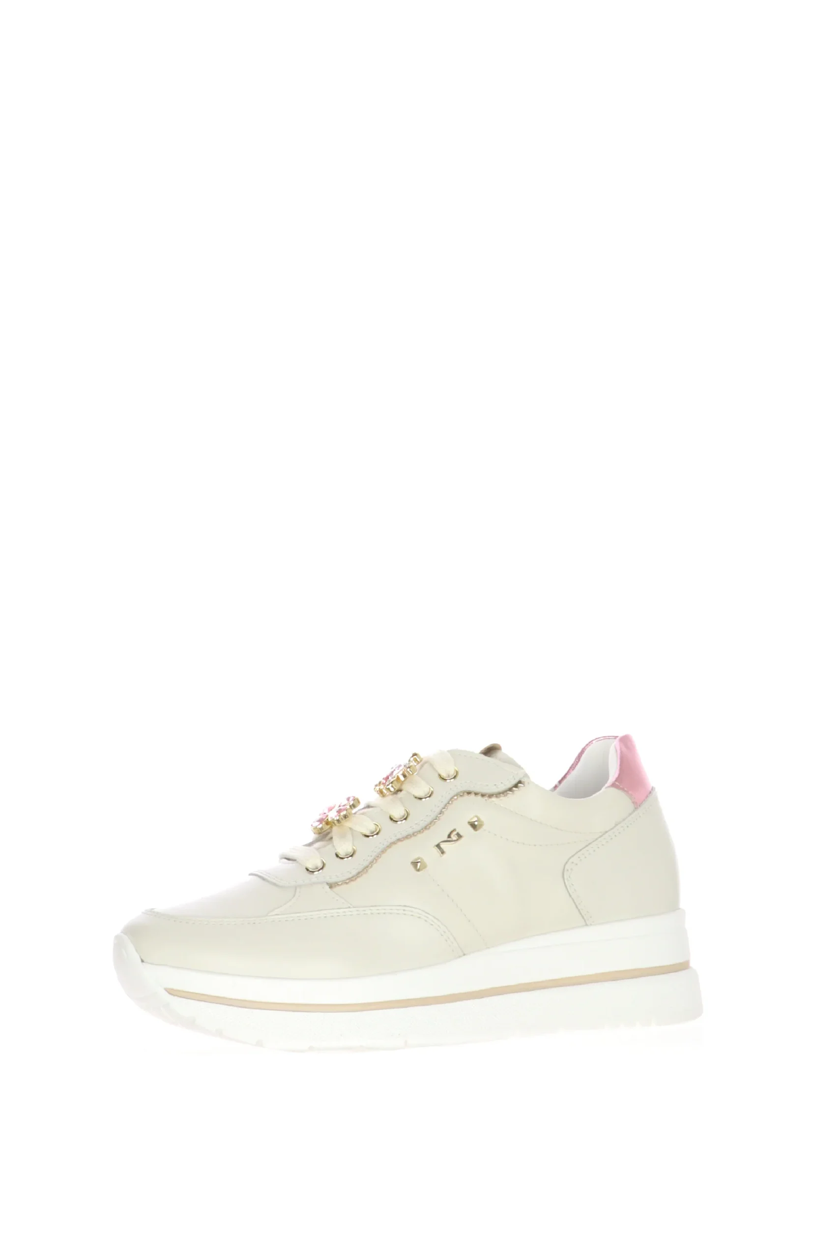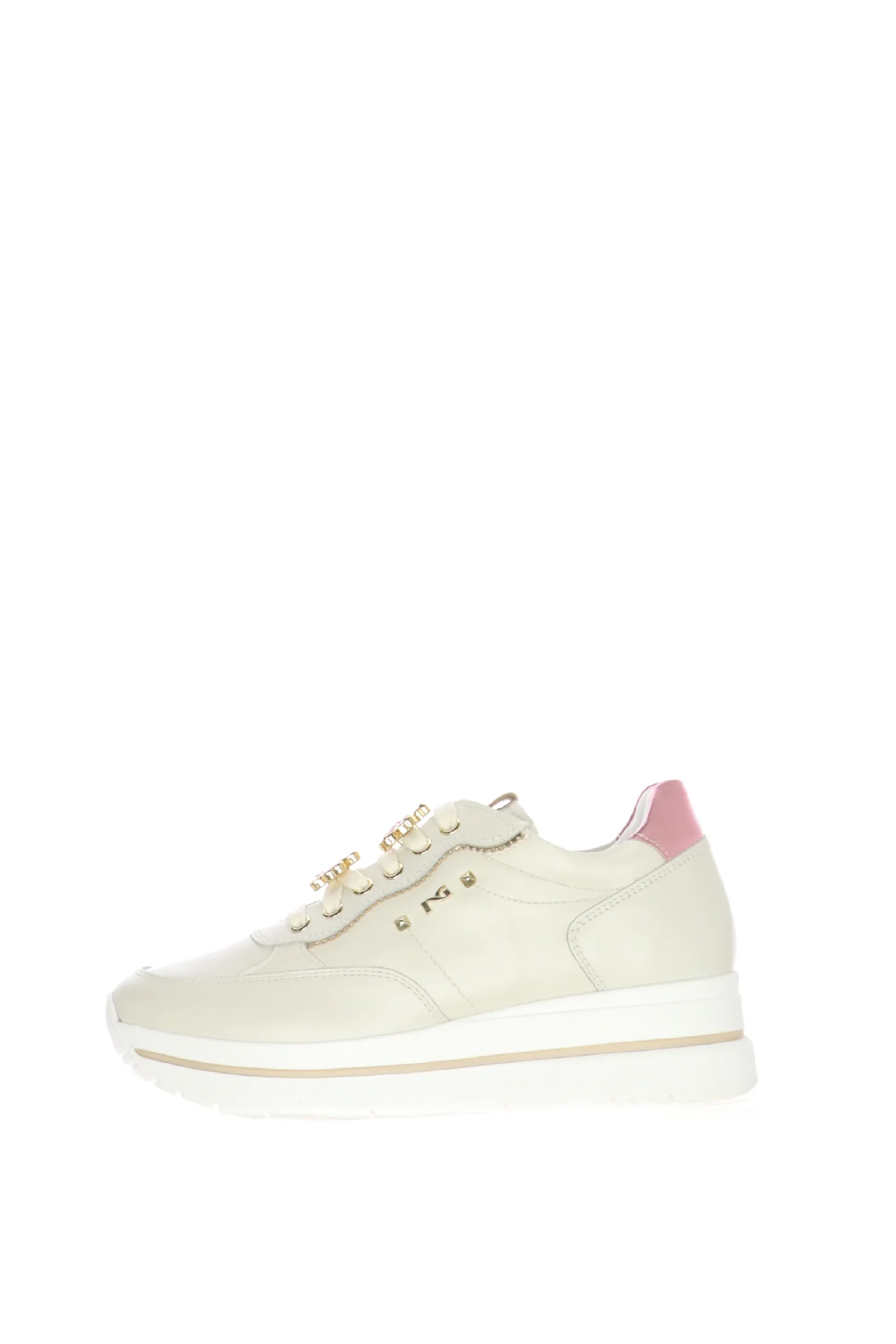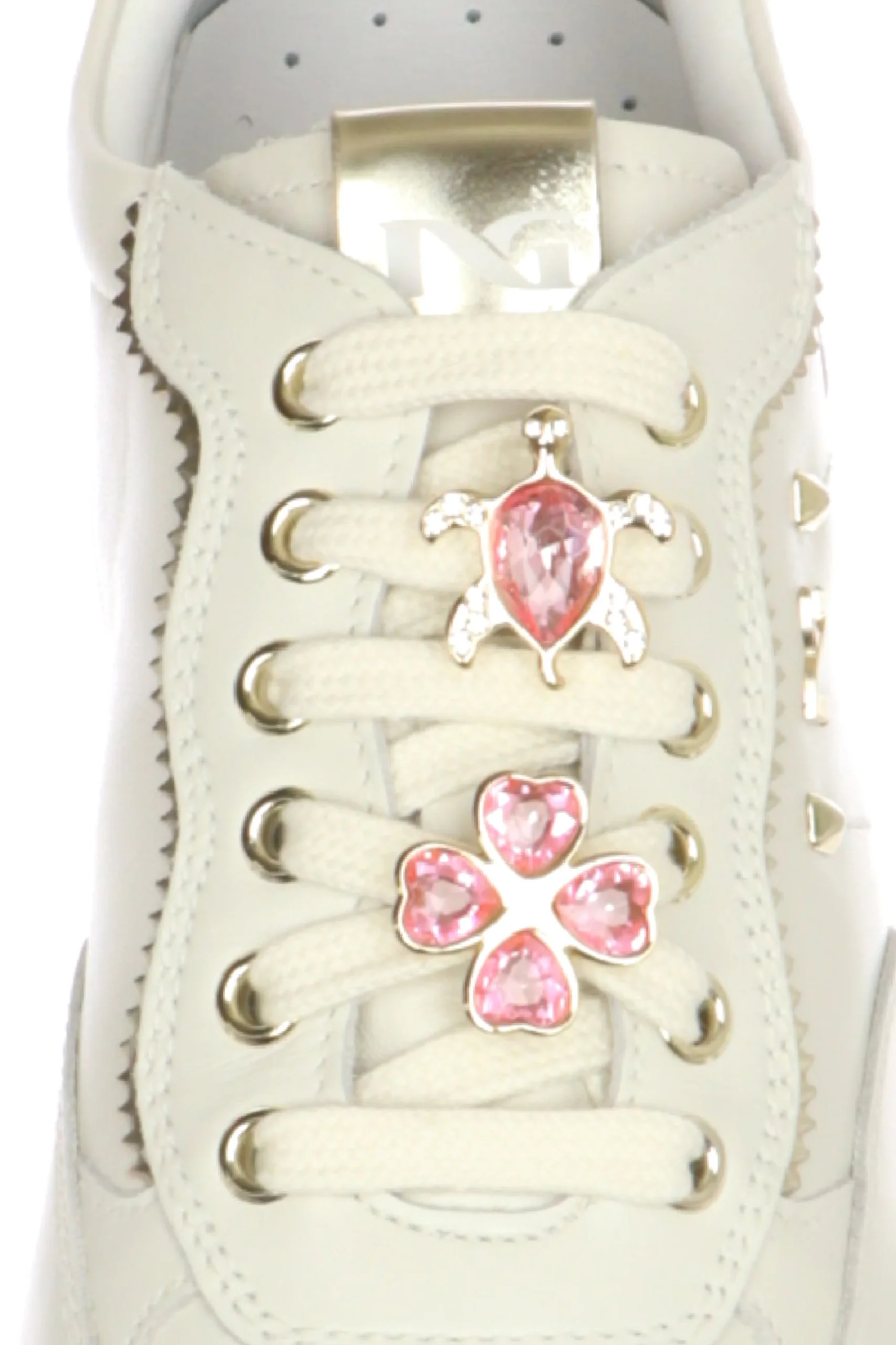 Sneakers in pelle panna con gioielli