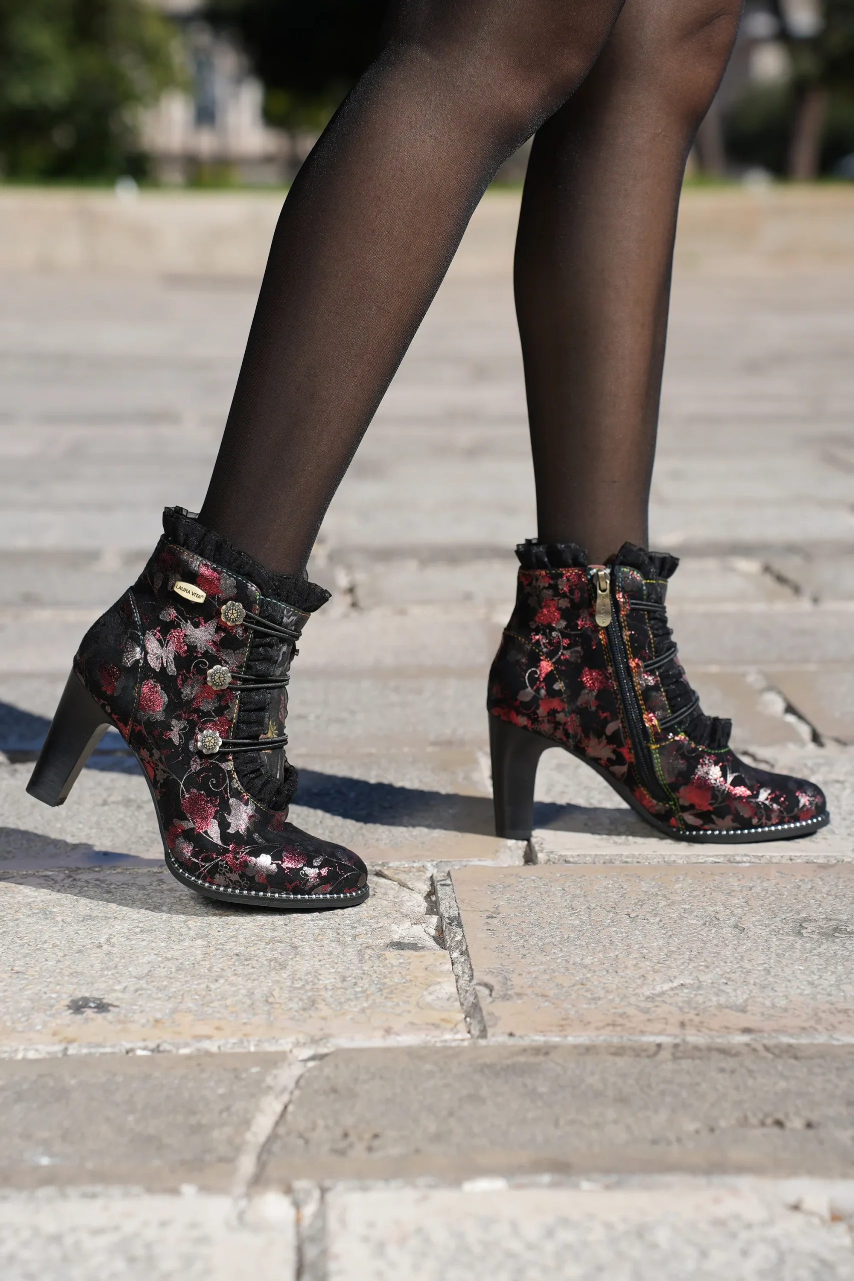Stivaletto con motivo floreale nero con tacco Laura Vita