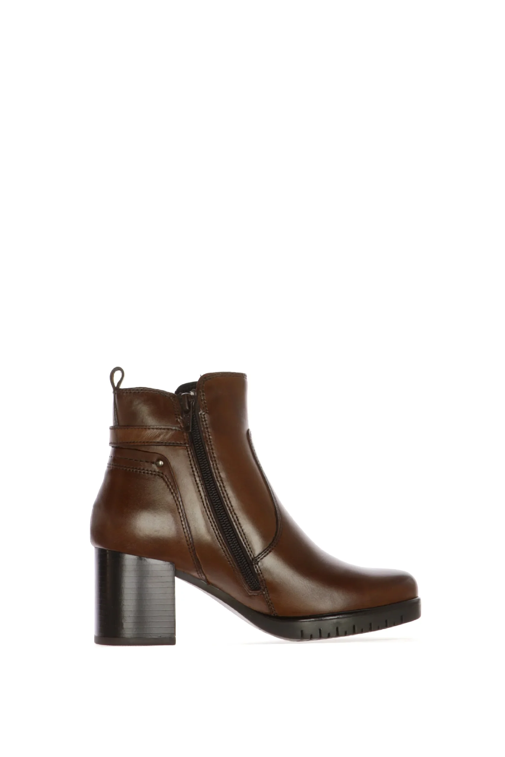 Stivaletto in pelle marrone e nero con tacco chiusura cerniera Cinzia Soft