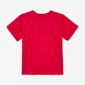 Maglietta a manica corta per bambino di colore rosso. Scollo rotondo e bottoni automatici sulla spalla (fino alla taglia 18mesi), con stampa logo Carrera a contrasto in bianco.